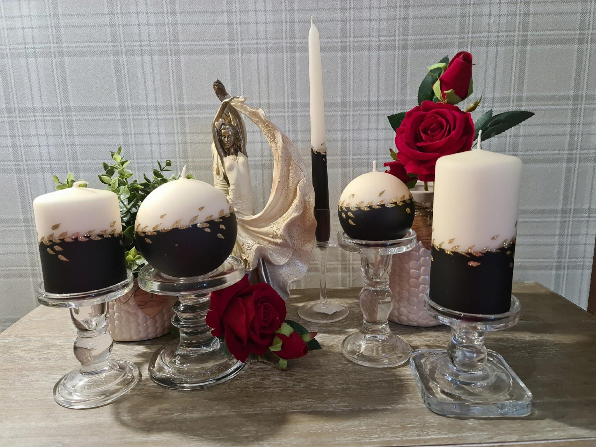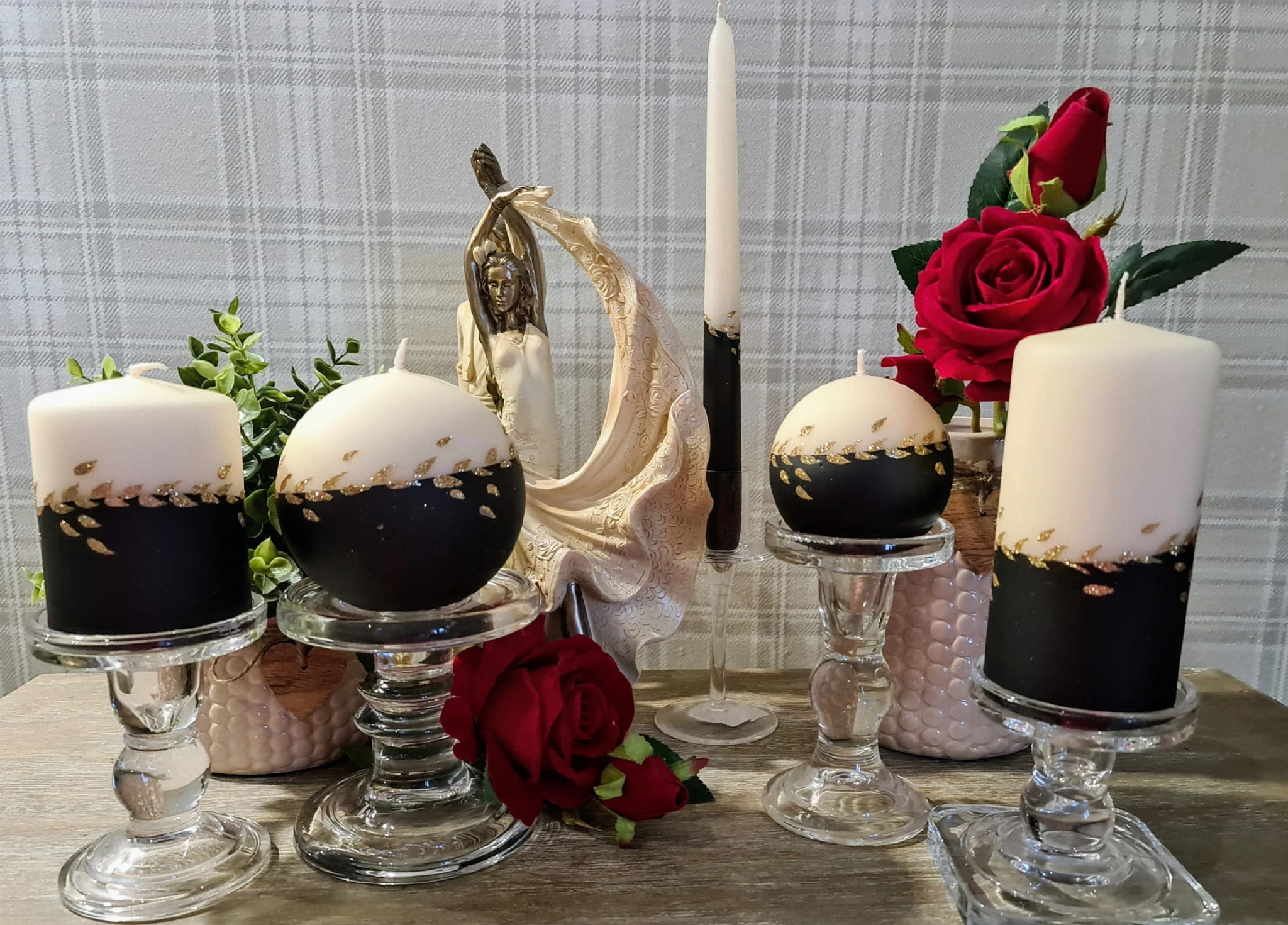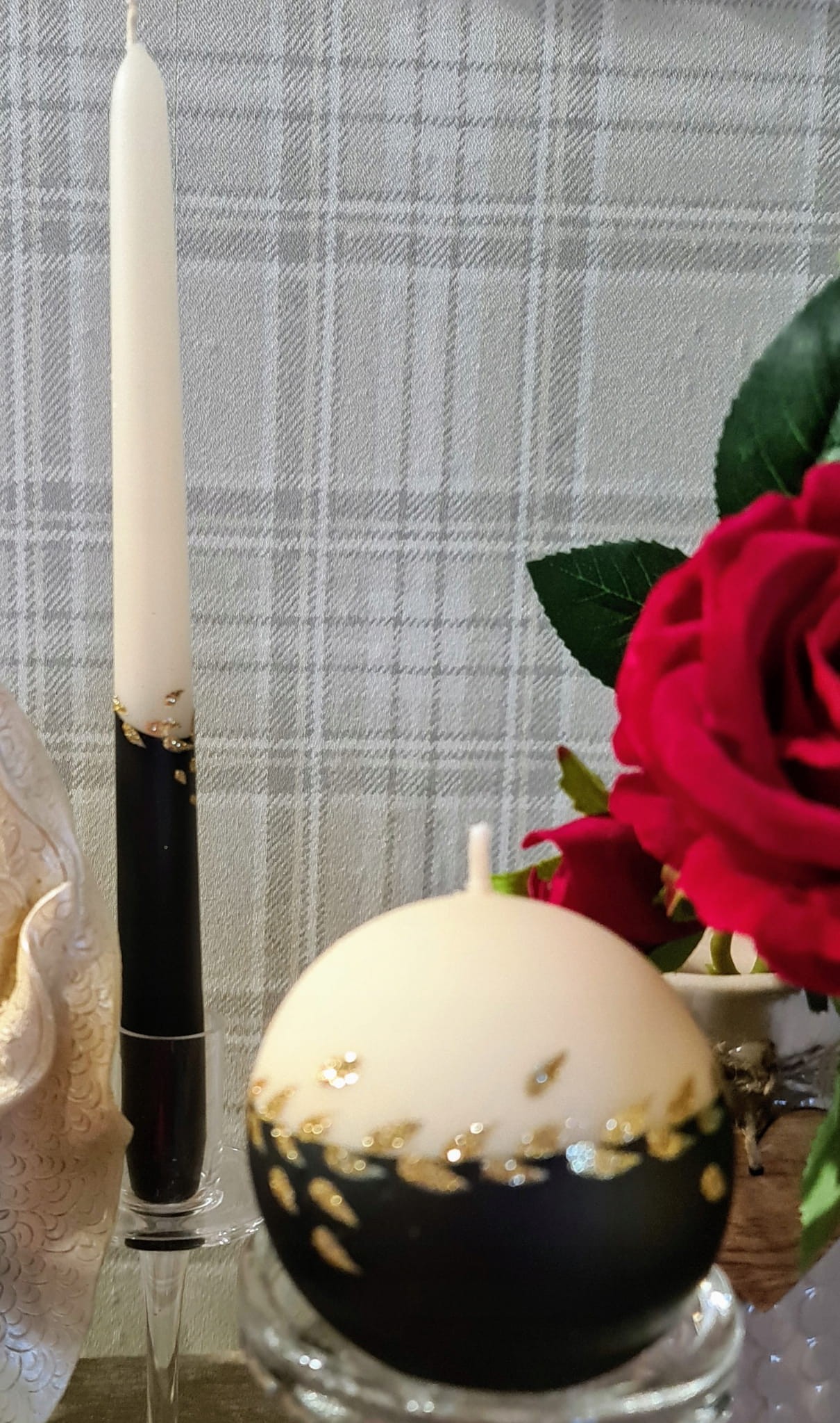 Świece z serii GOLD LEAF to unikatowa ozdoba do Twojego domu, klasyczne kolory i złote zdobienie świetnie sprawdzą się w każdym wnętrzu jak i również na prezent.