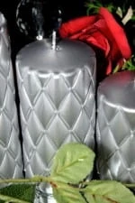 ŚWIECA FLORENCJA SREBRNA WALEC ŚREDNI 14cm