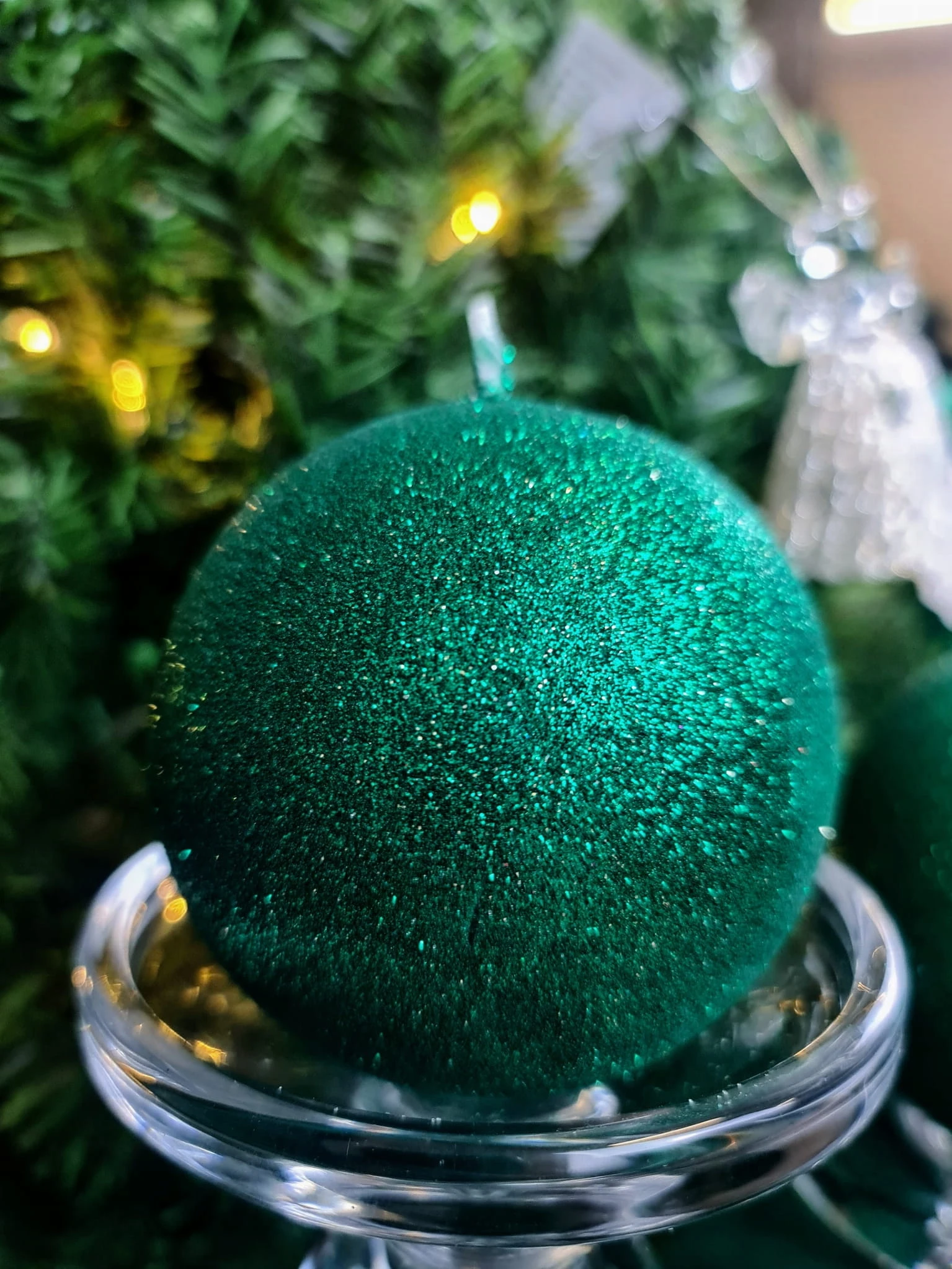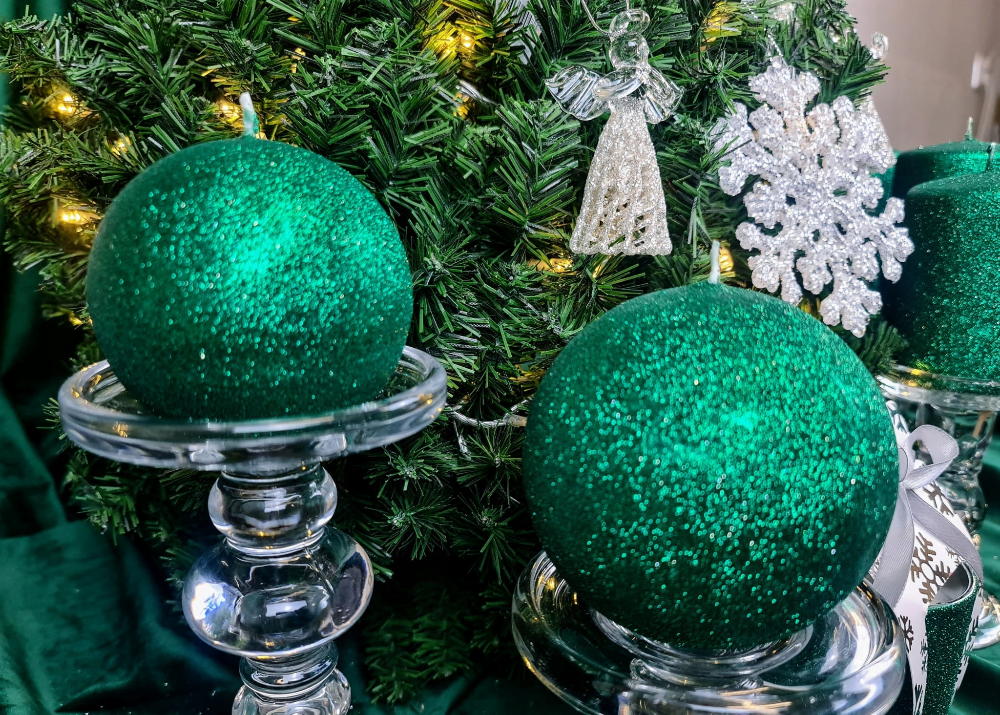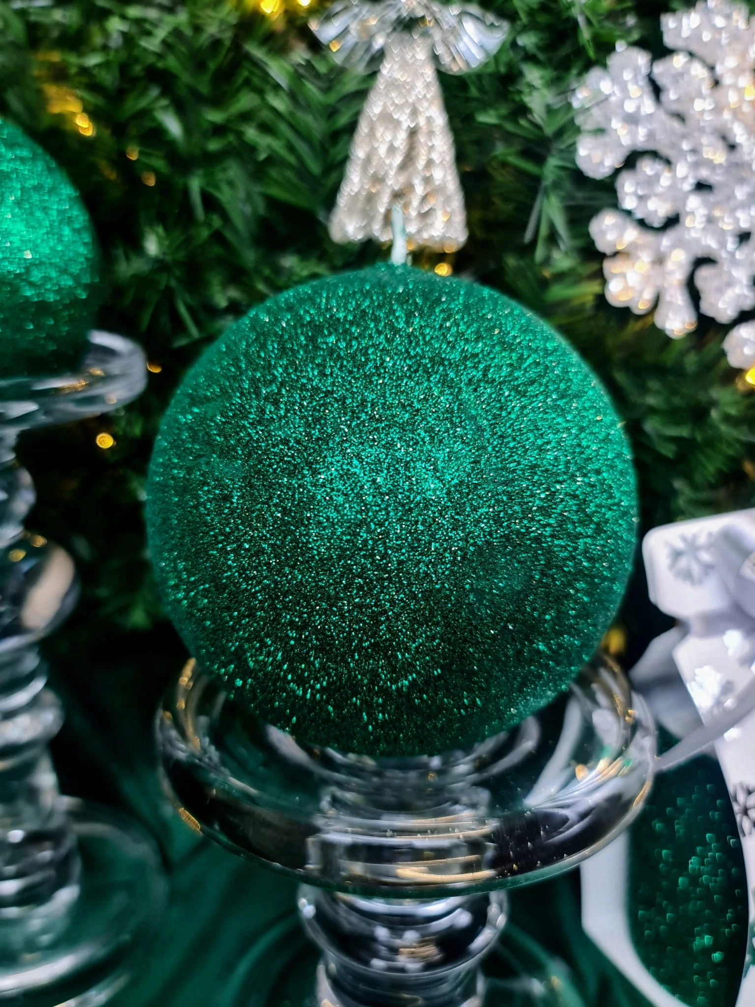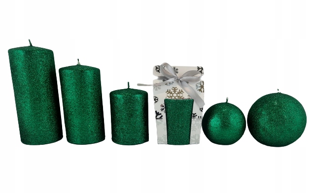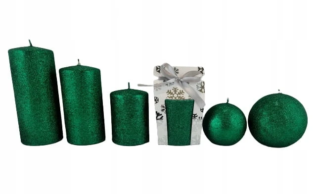 ŚWIECA GLAMOUR KULA ZIELEŃ FI10 BROKAT