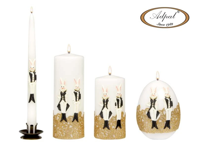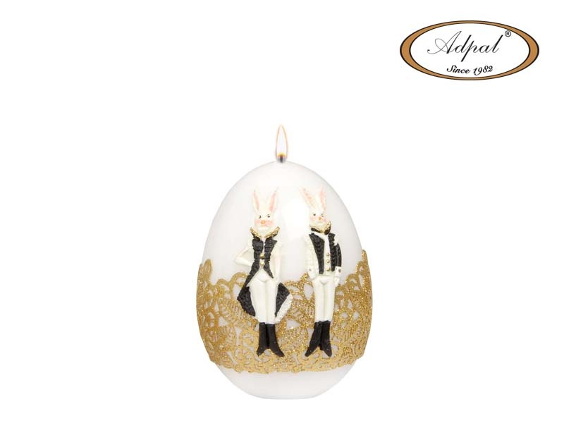 ŚWIECA JAJKO 140/100mm ZAJĄC KORONKA LAKIER biała