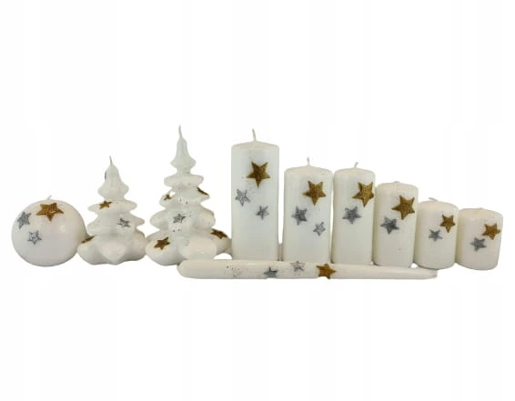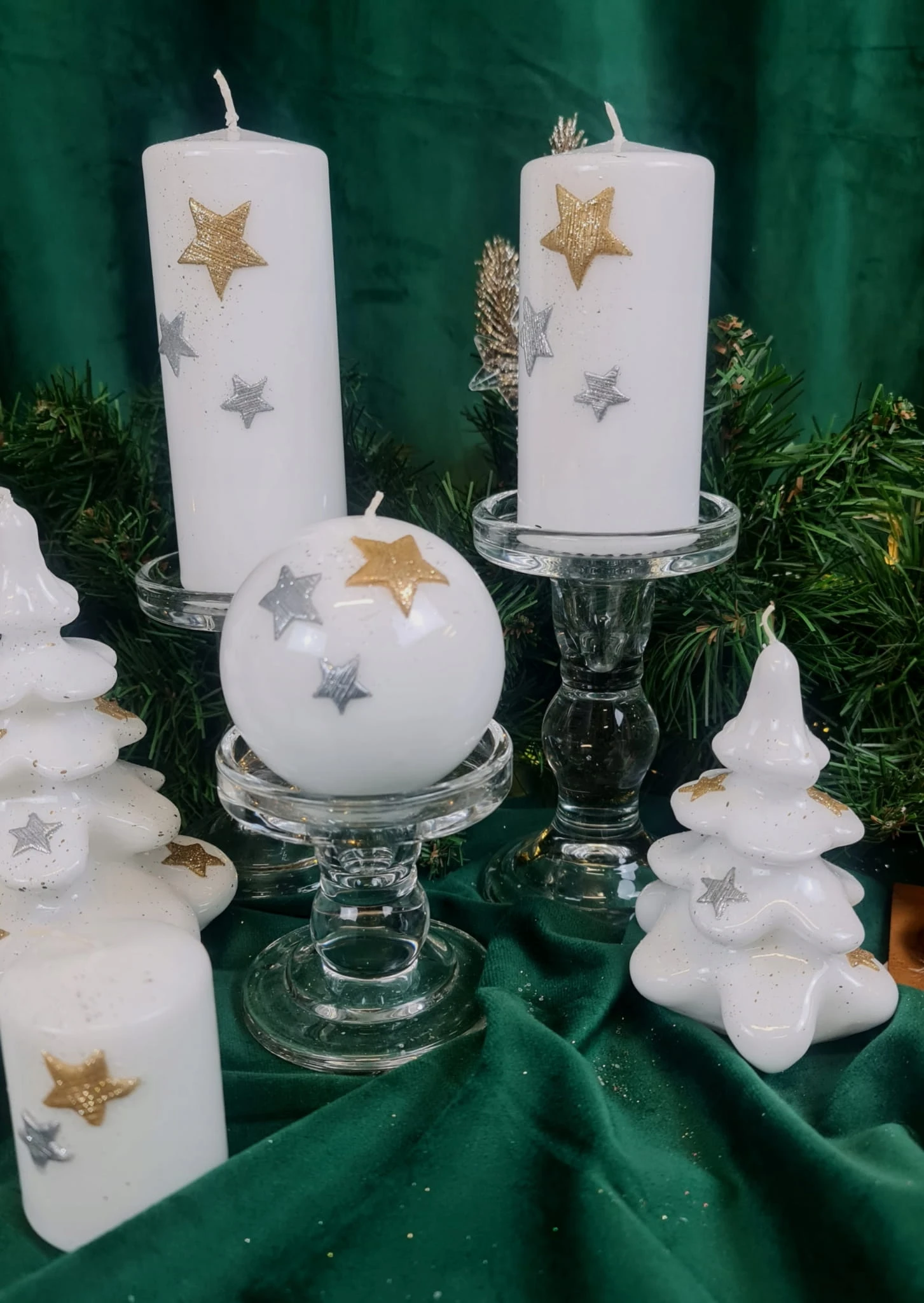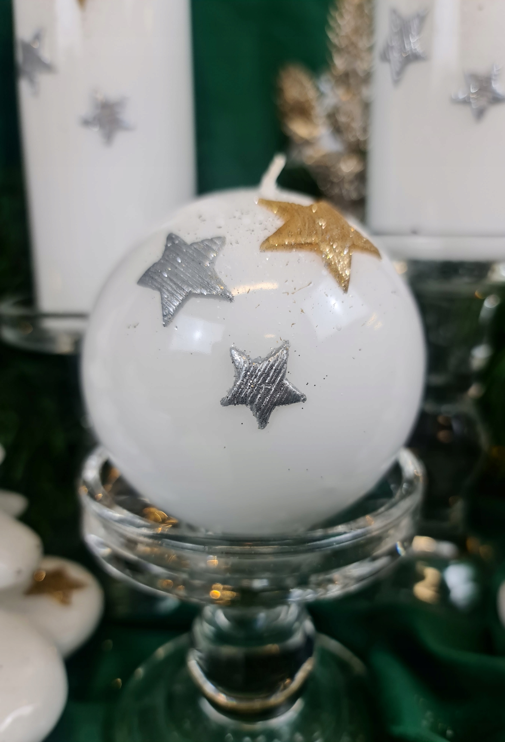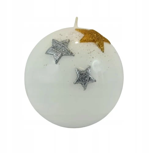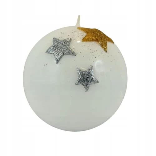 ŚWIECA KULA BIAŁA FI 8 CM GWIAZDKI ŚWIĘTA PREZENT