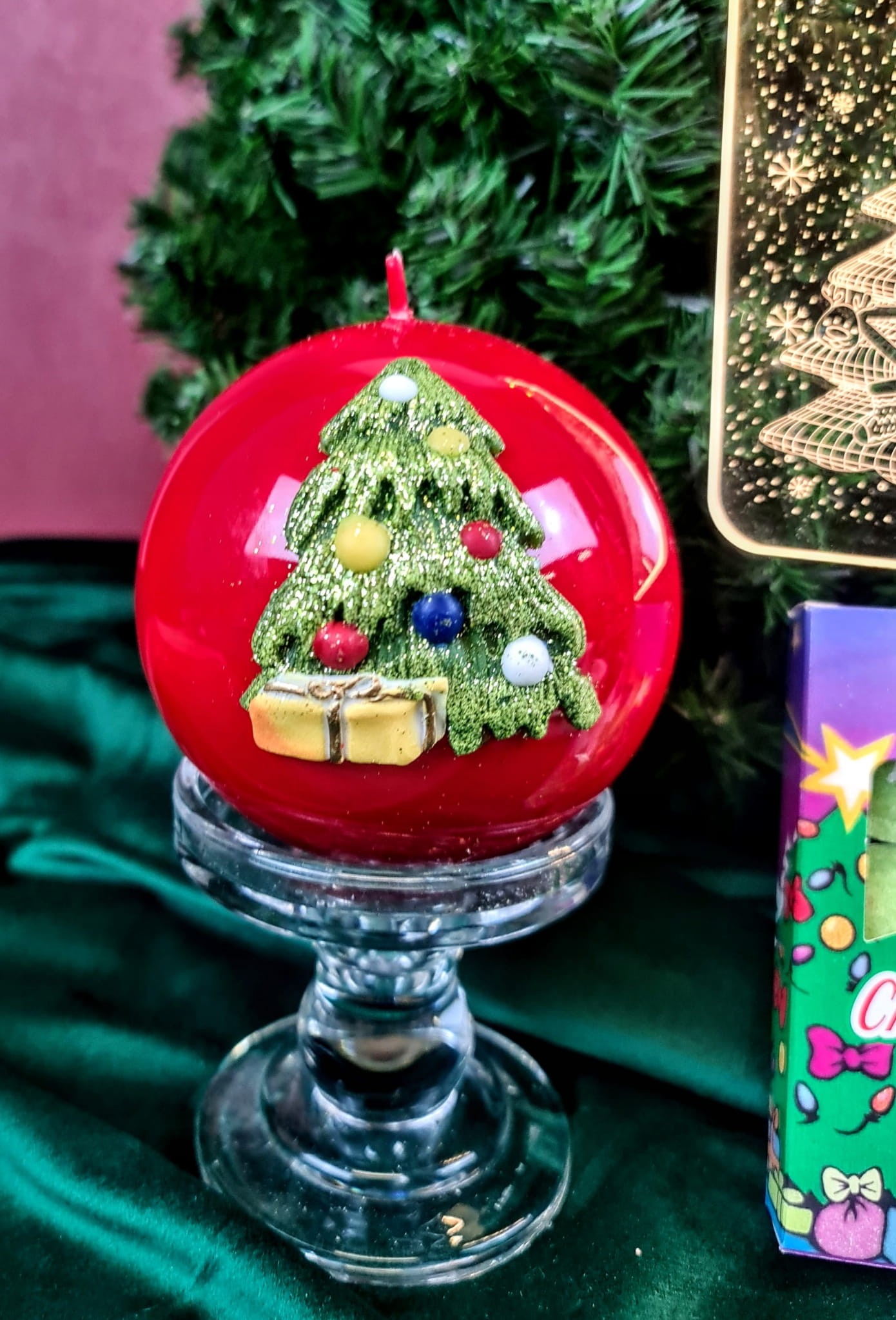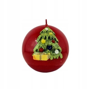 ŚWIECA KULA CZERWONA 10CM HOLLY CHRISTMAS CHOINKA