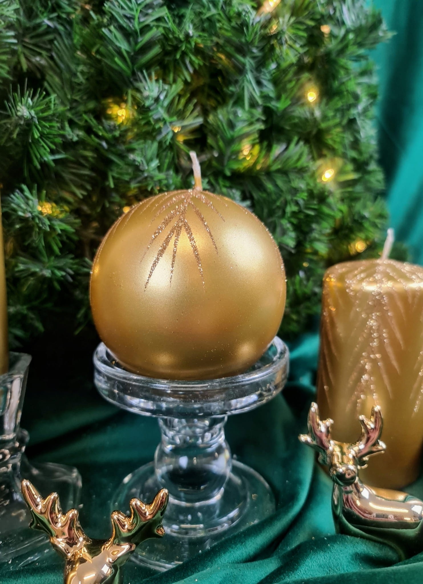 ŚWIECA KULA FI80 ZŁOTA BROKATOWE GAŁĄZKI ŚWIĘTA