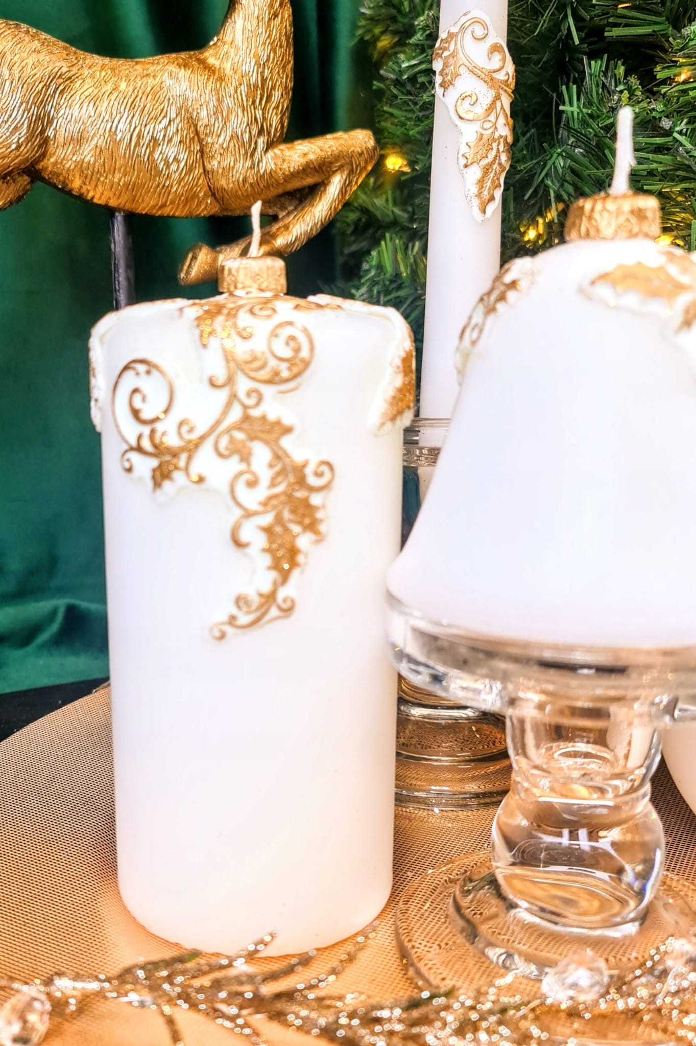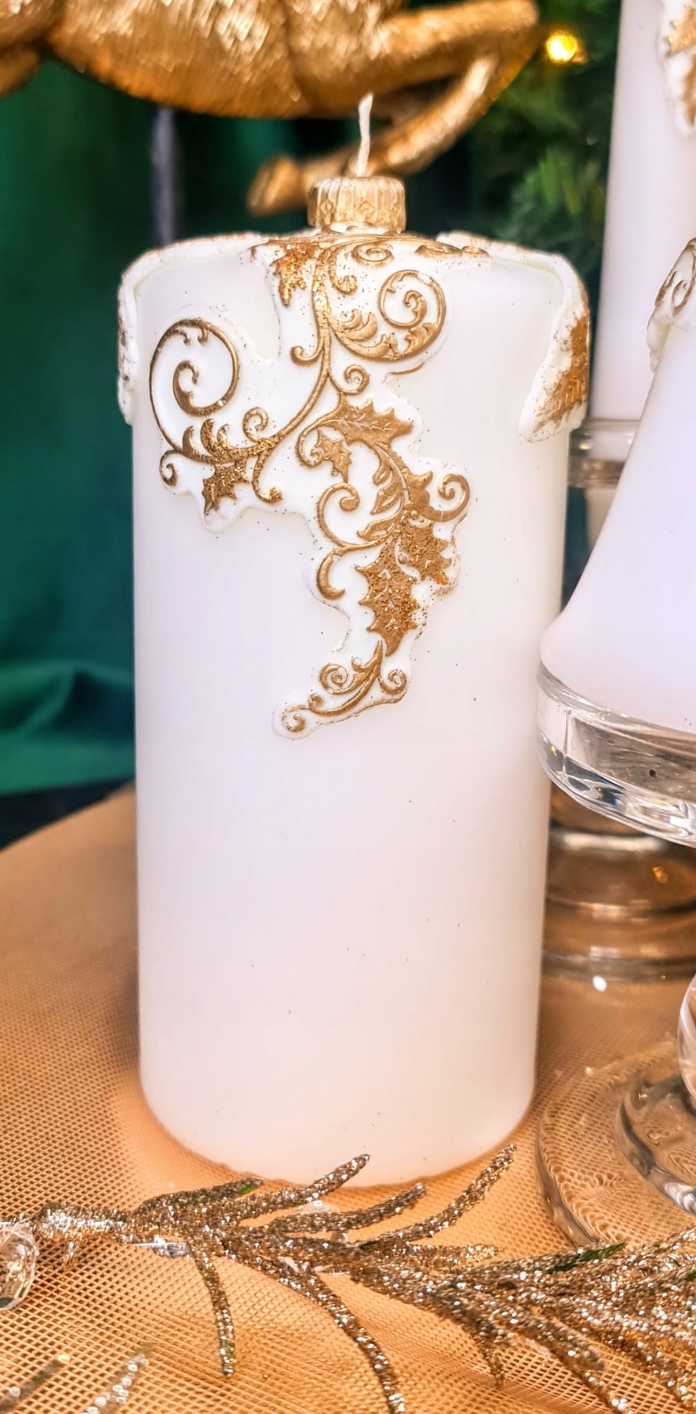 ŚWIECA OZDOBNA 15CM OSTROKRZEW BIAŁO-ZŁOTA