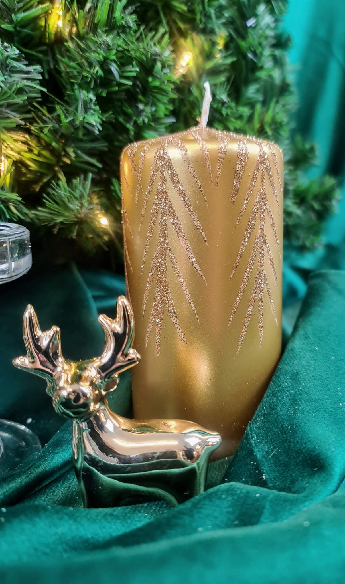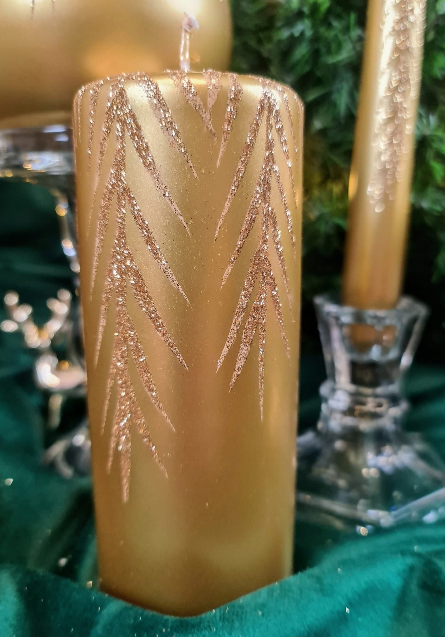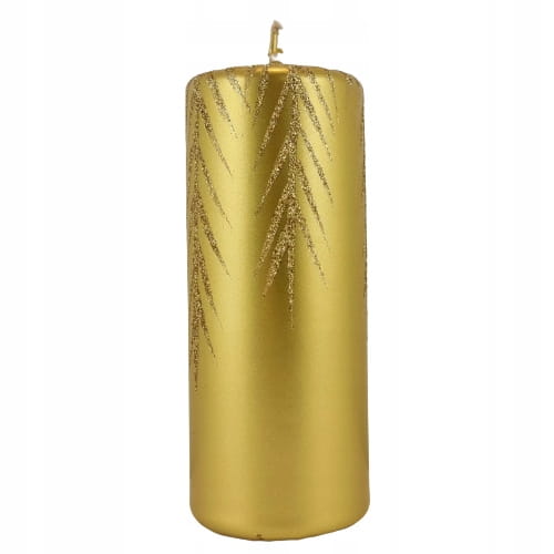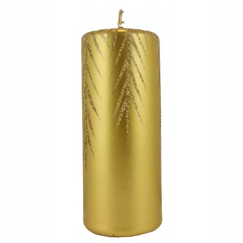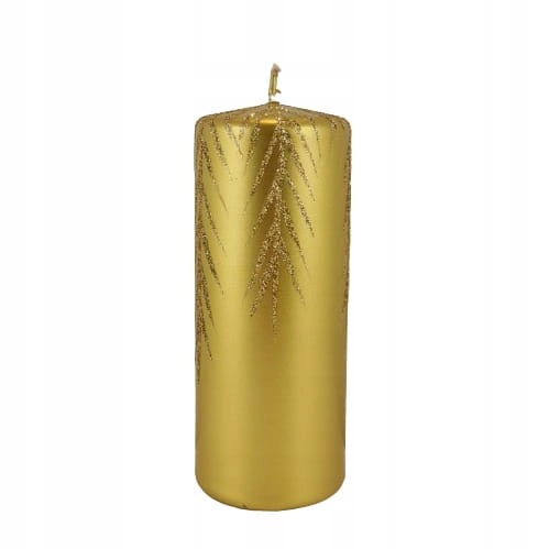 ŚWIECA OZDOBNA 15CM ZŁOTA BROKATOWE GAŁĄZKI ŚWIĘTA