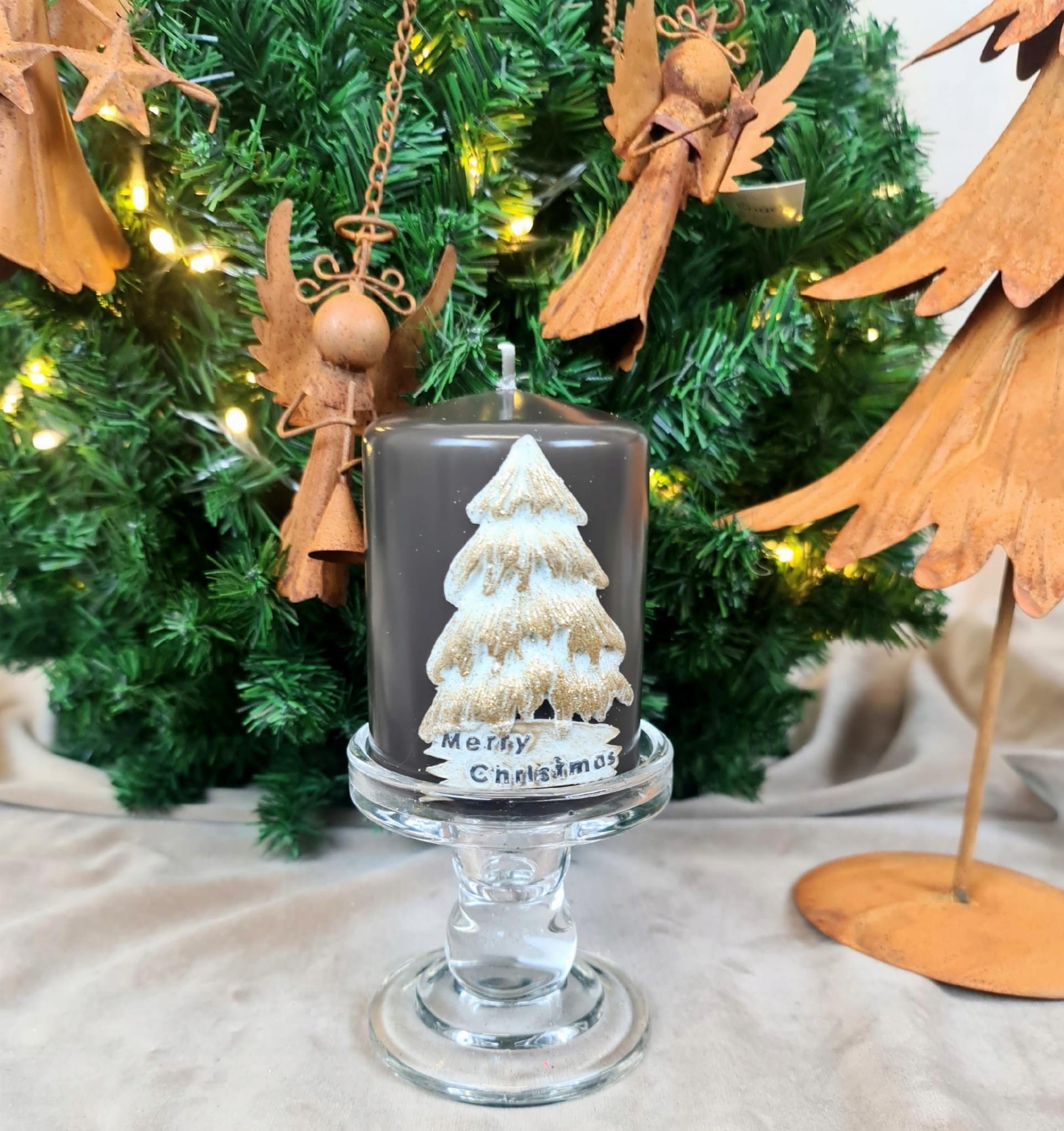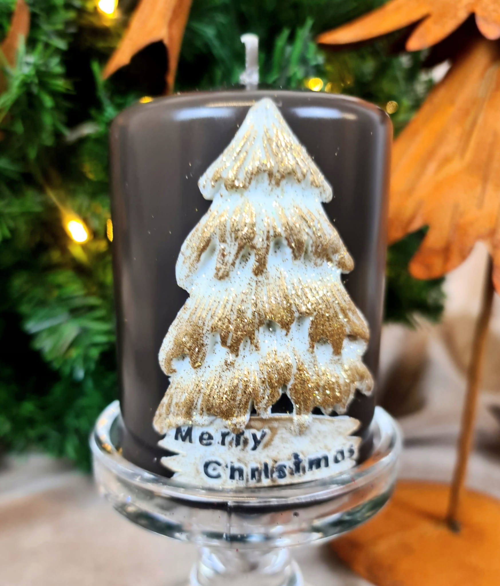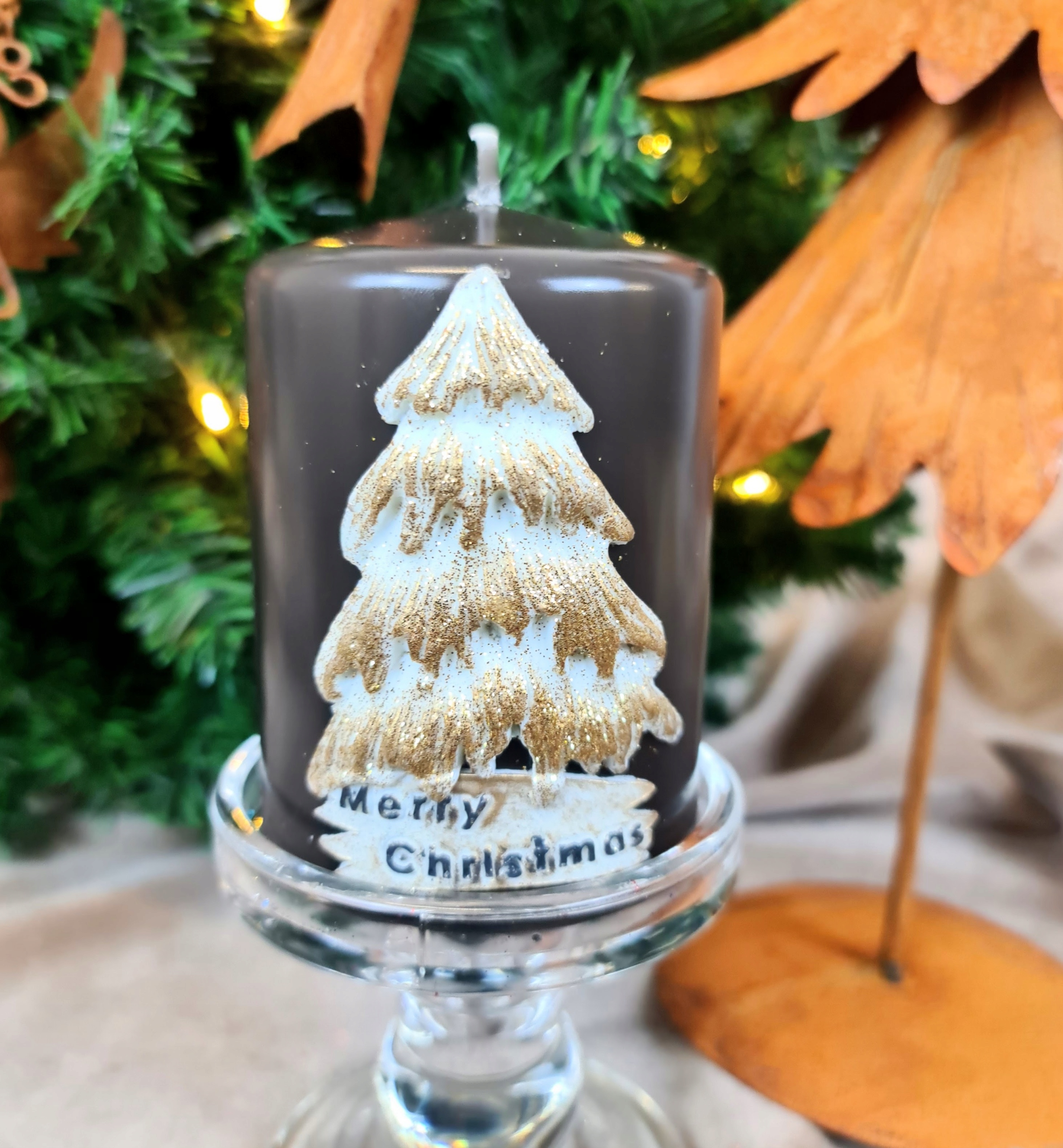 ŚWIECA OZDOBNA CHRISTMAS DAY 10CM ziemisty brąz