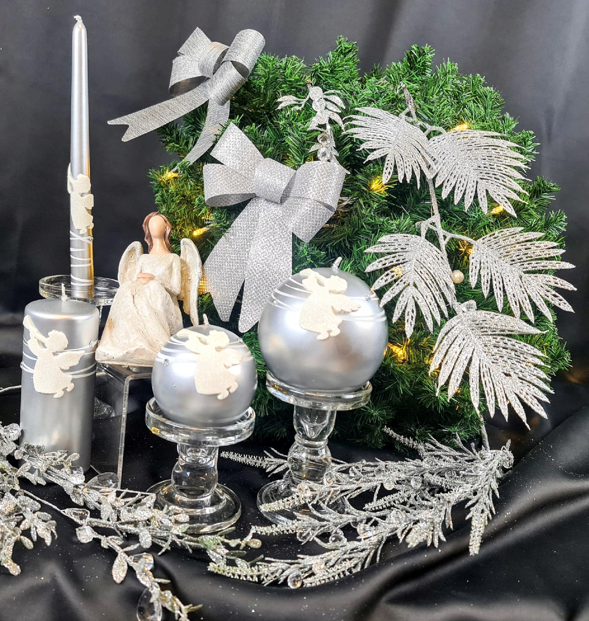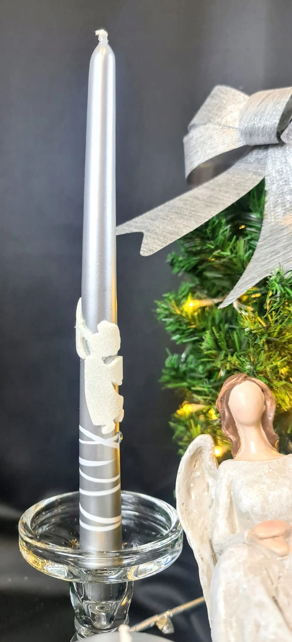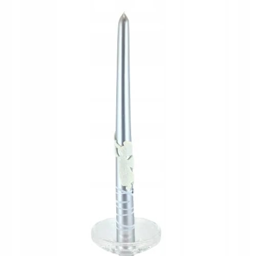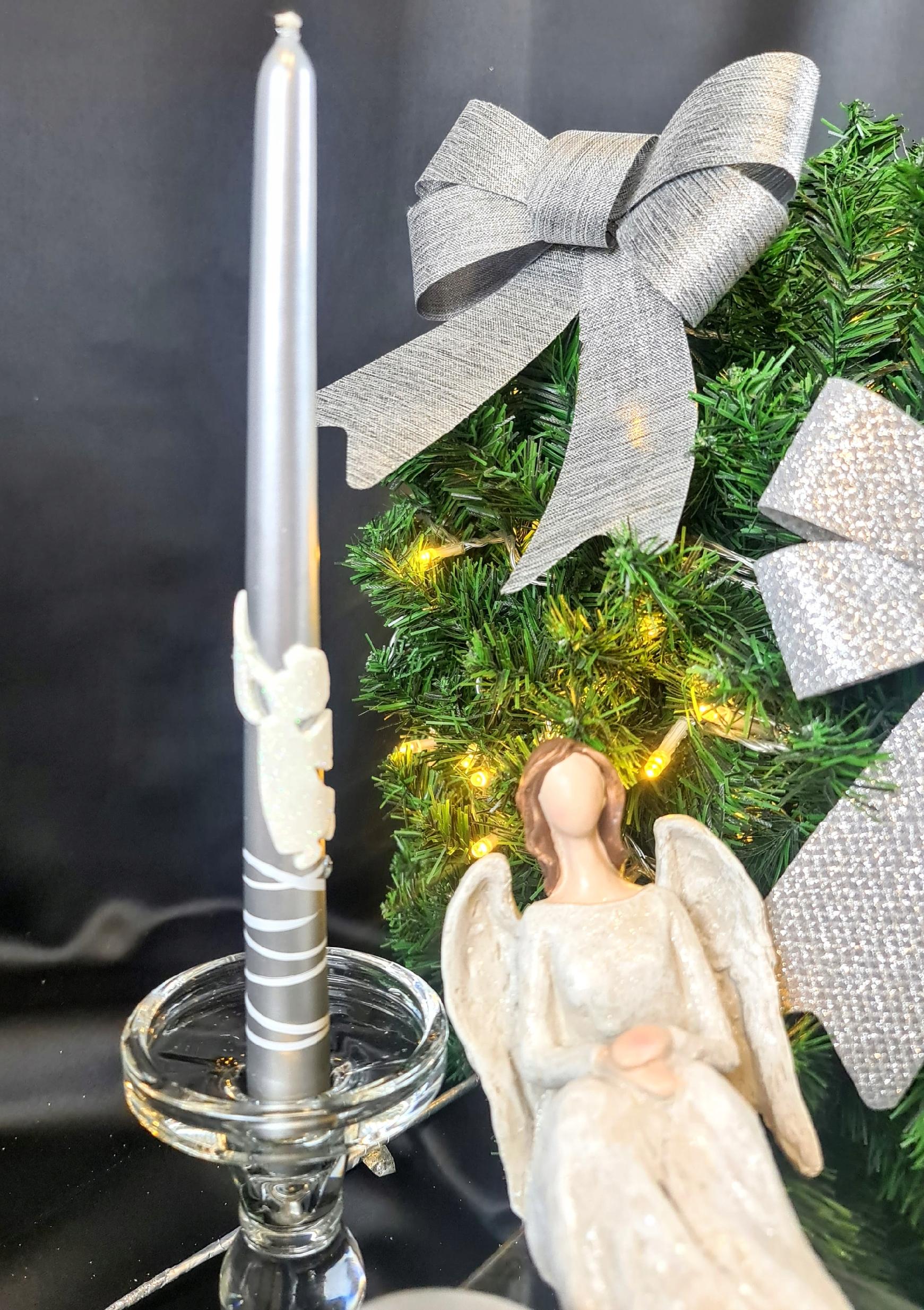 ŚWIECA OZDOBNA DŁUGA 29CM Z ANIOŁEM metalik srebro