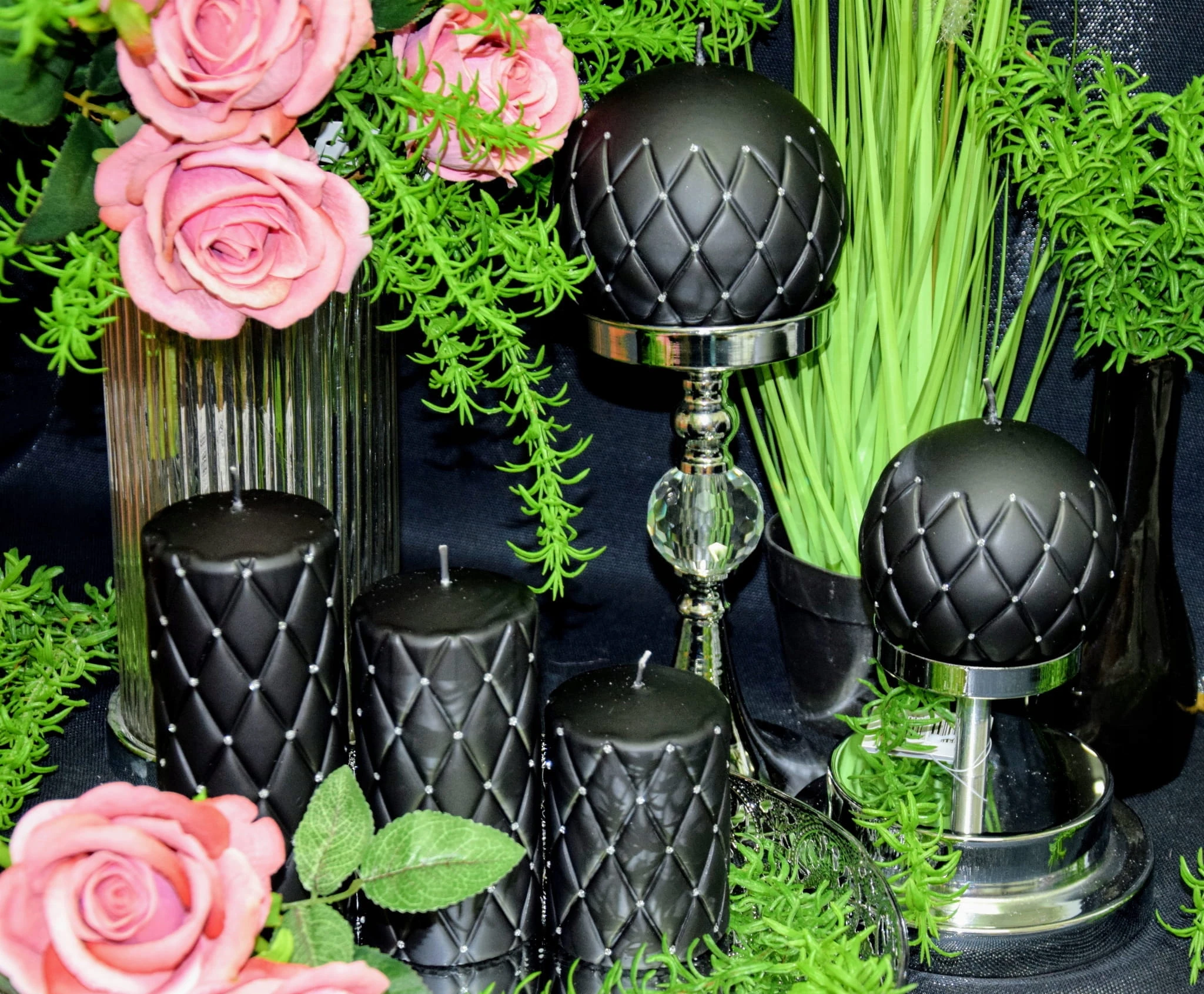 ŚWIECA OZDOBNA FLORENCJA CZARNA MATOWA KULA 10CM