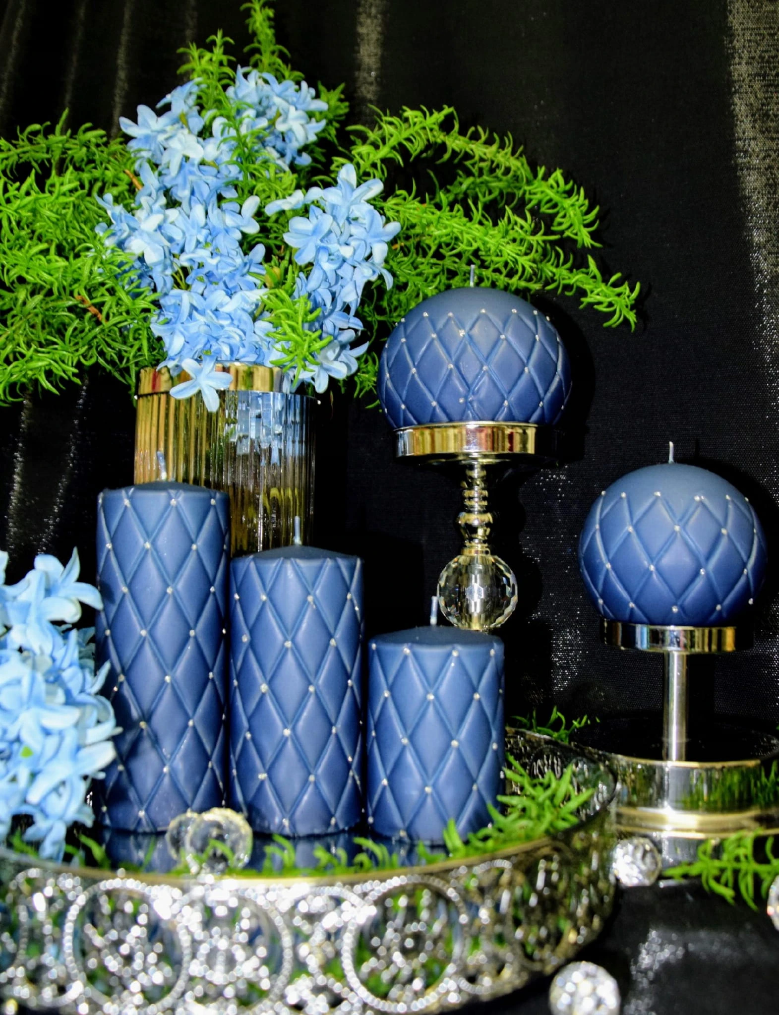 ŚWIECA OZDOBNA FLORENCJA GRANATOWA MATOWA H14cm