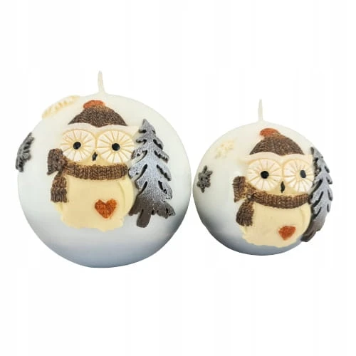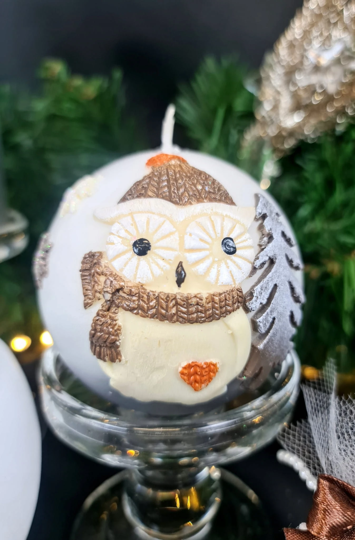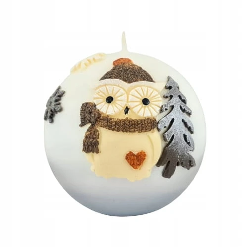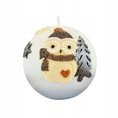 ŚWIECA OZDOBNA KULA FI100 SOWA ŚNIEŻNA ŚWIĘTA