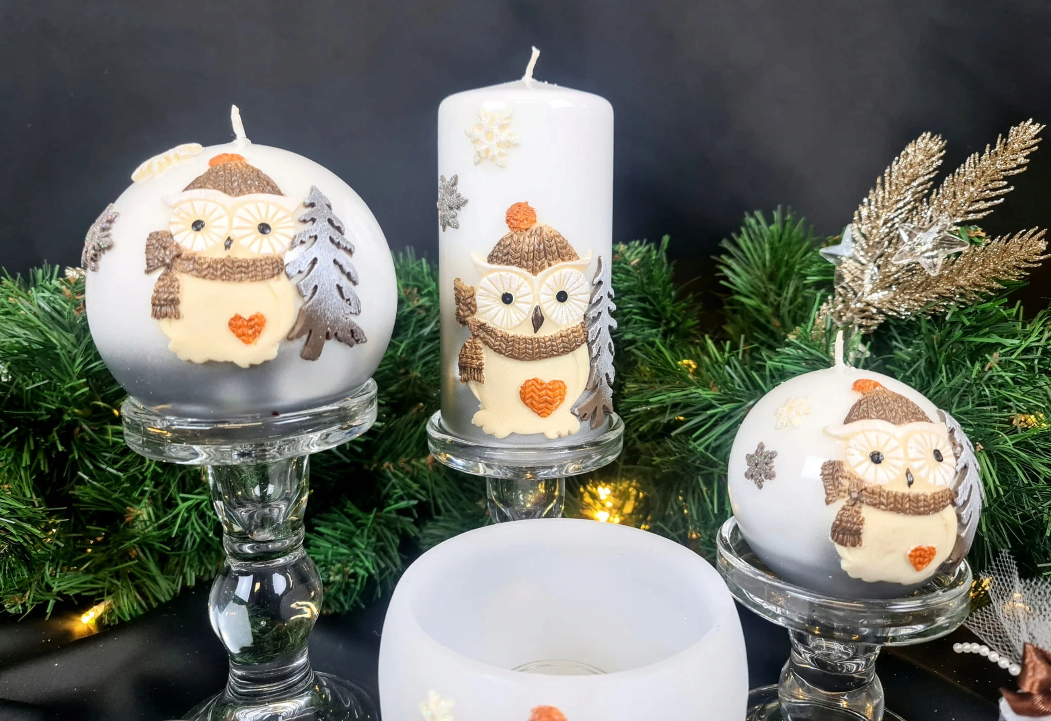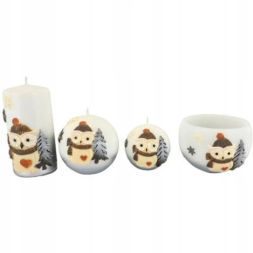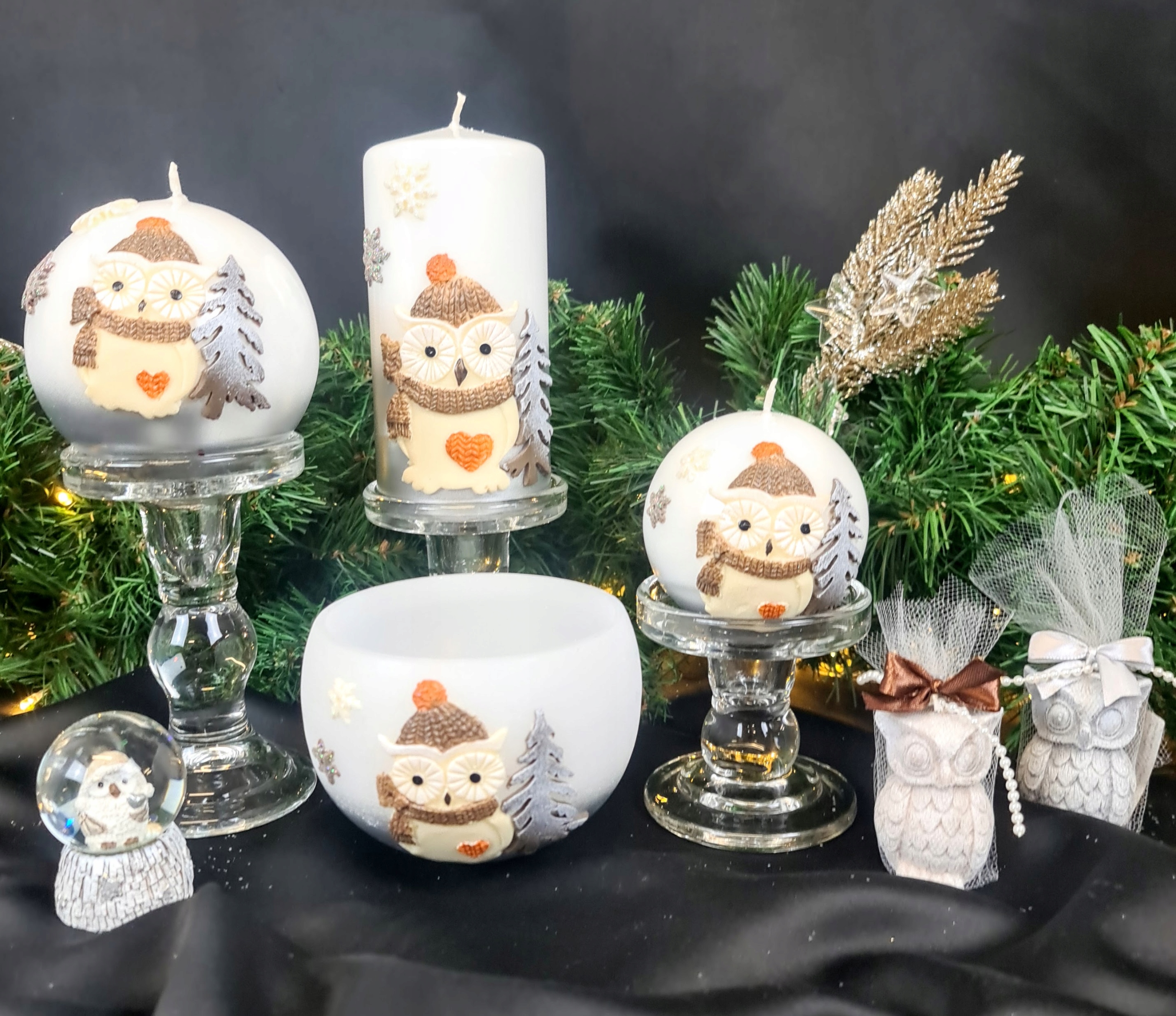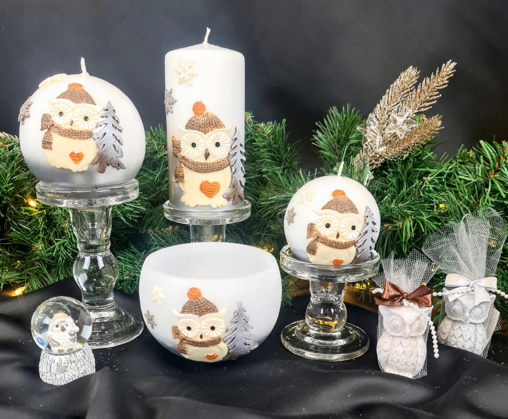 Świece z serii SOWA ŚNIEŻNA doskonale uprzyjemnią chwile spędzone wieczorem w domowym zaciszu lub dopełnią świąteczne aranżacje.
