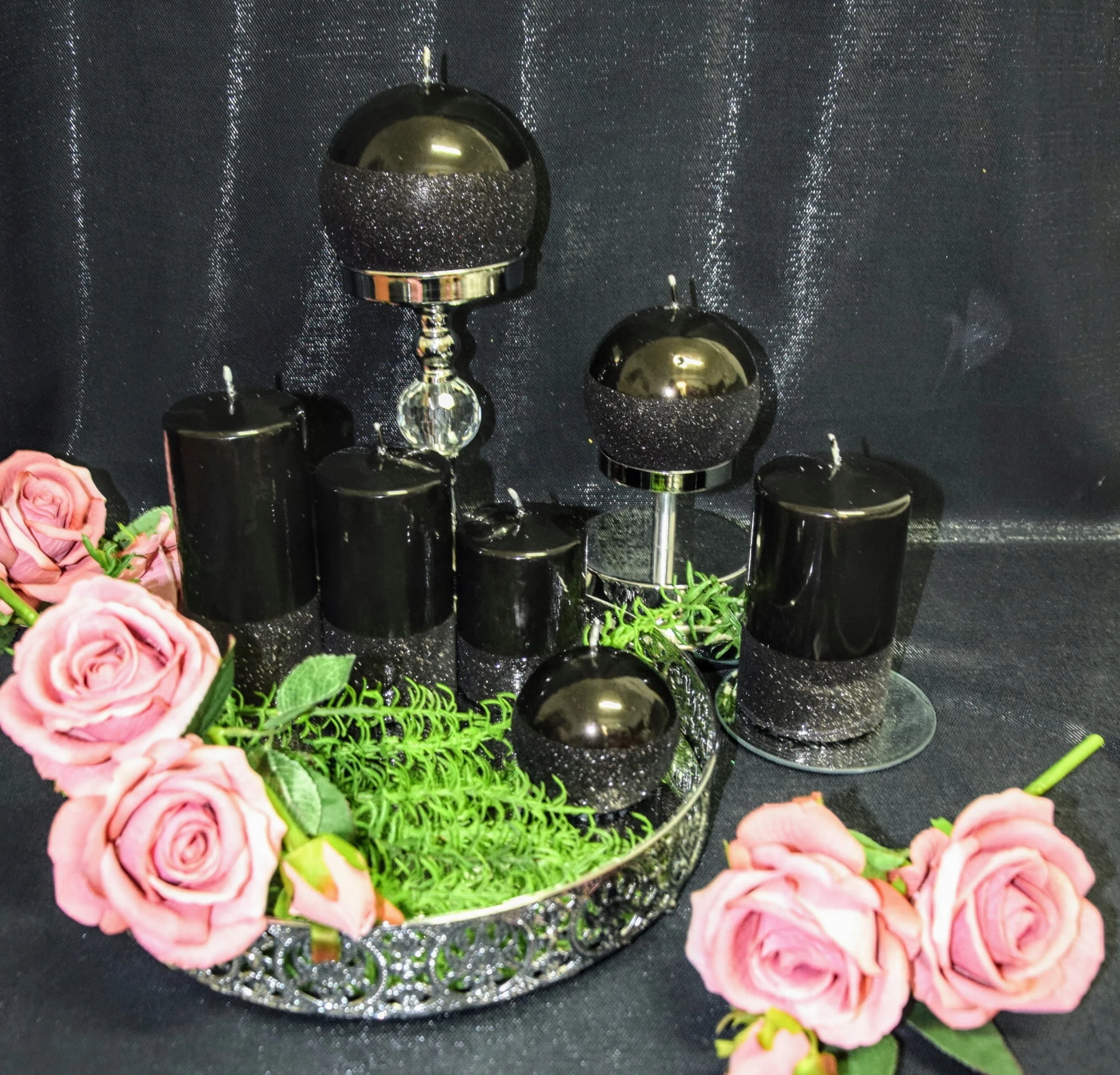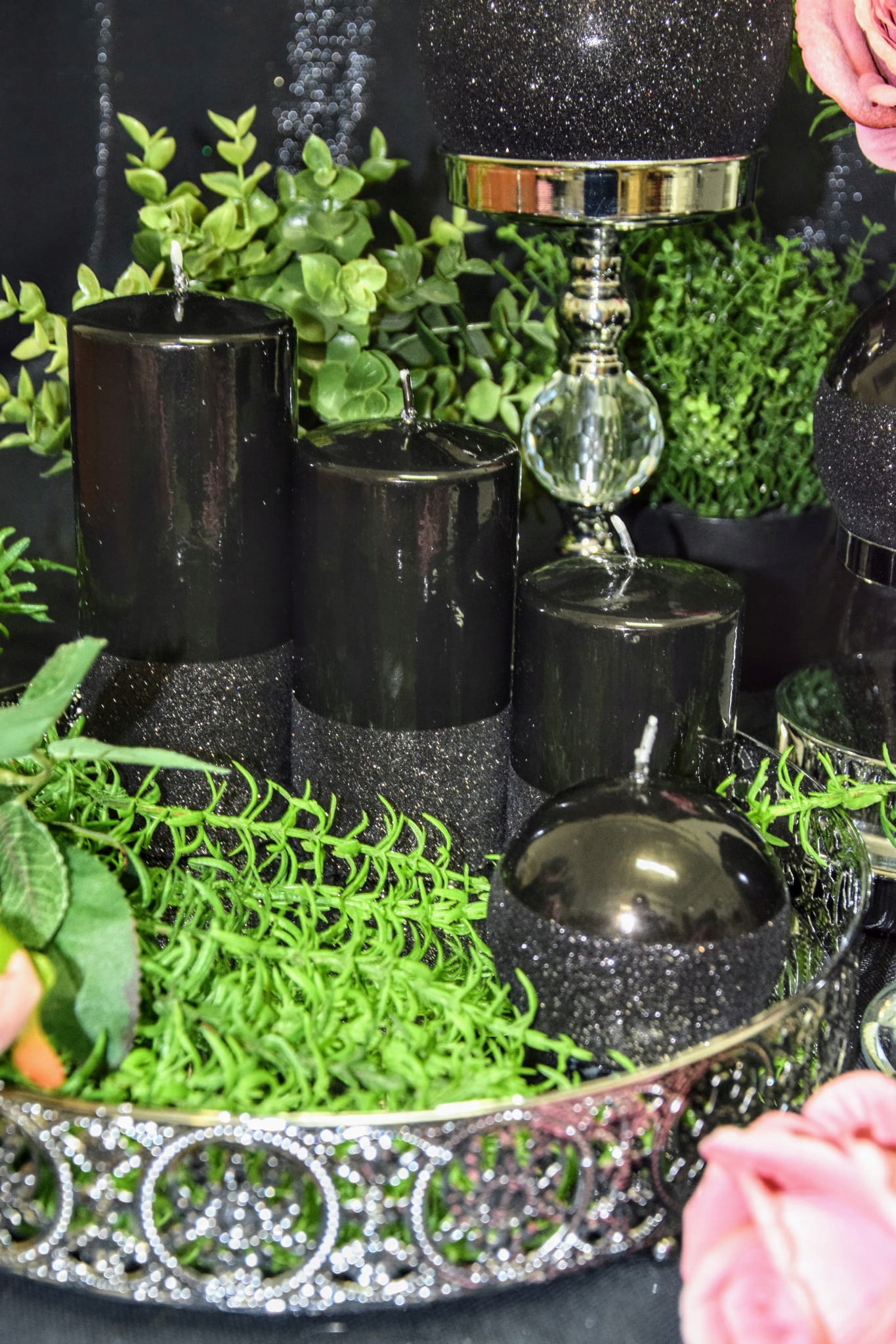 ŚWIECA OZDOBNA PRINCE WALEC ŚREDNI CZARNA H14CM