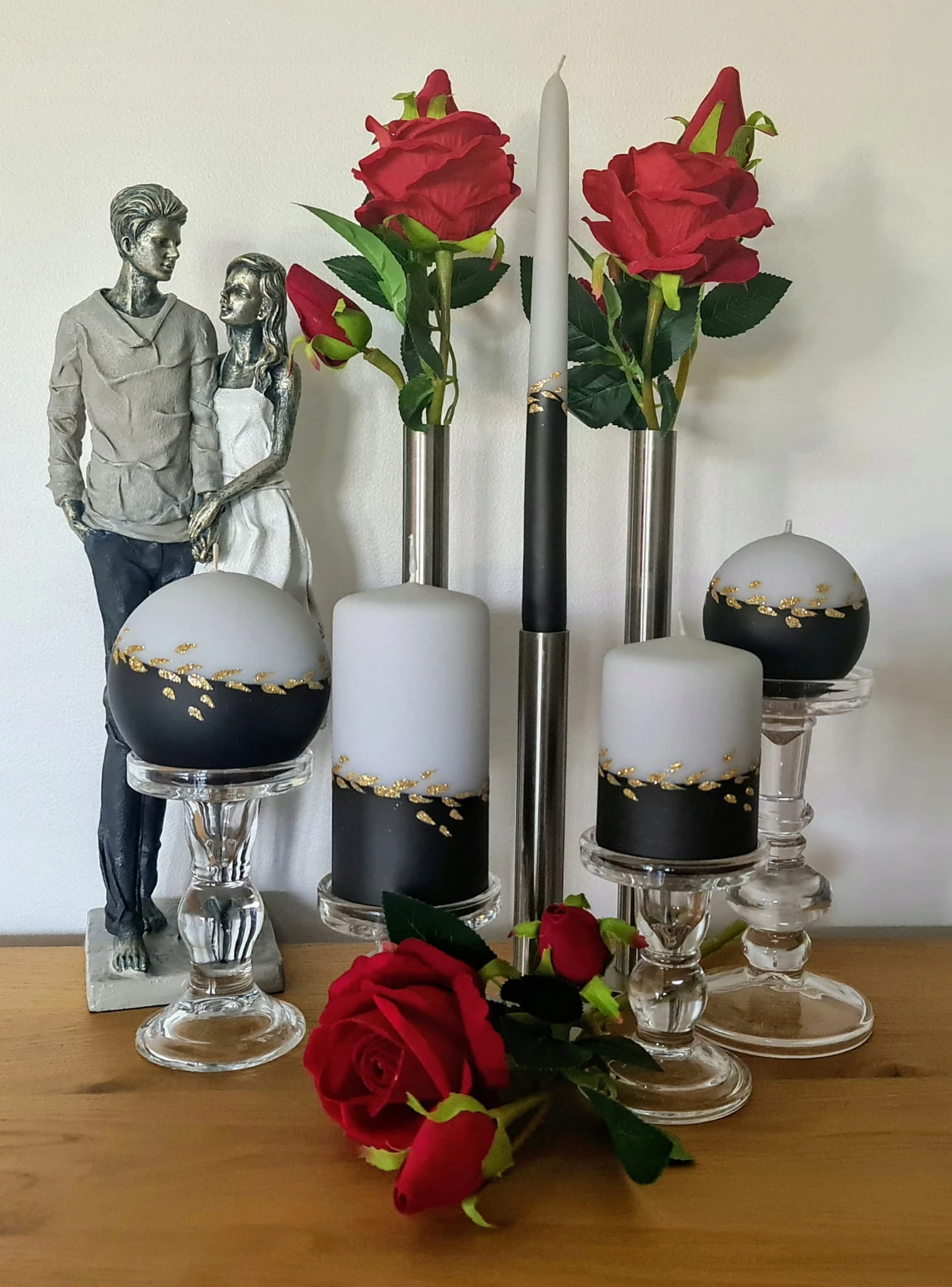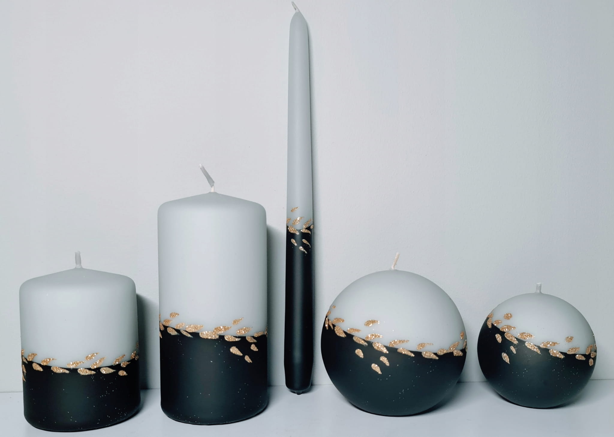 Świece z serii GOLD LEAF to unikatowa ozdoba do Twojego domu, klasyczne kolory i złote zdobienie świetnie sprawdzą się w każdym wnętrzu jak i również na prezent.
