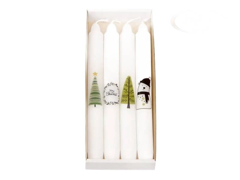 ŚWIECA STOŁOWA 200/21 (4 SZT.) CHRISTMAS DECAL MIX MATOWA biała/ zielona