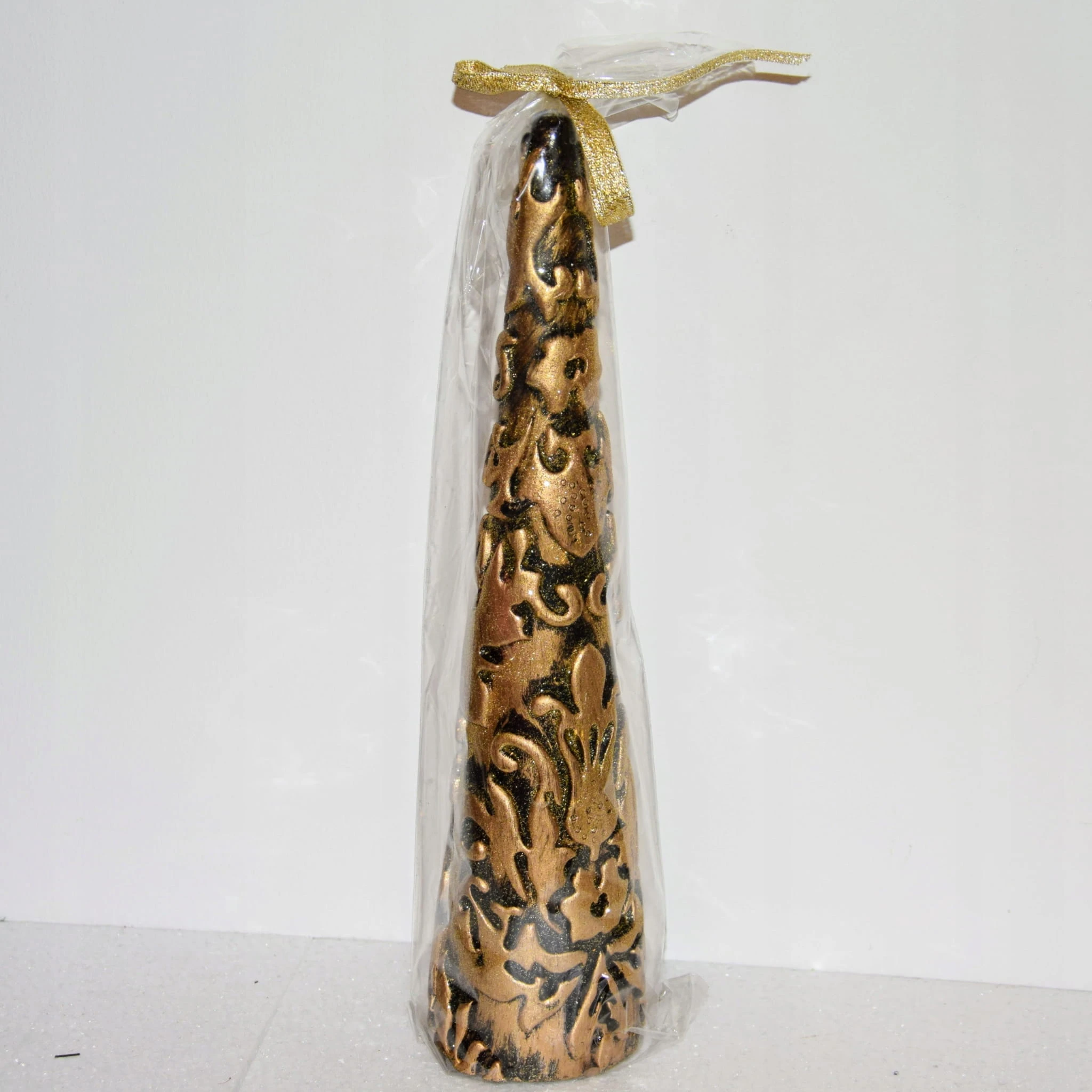 ŚWIECA STOŻKOWA ORNAMENT ZŁOTA 29CM