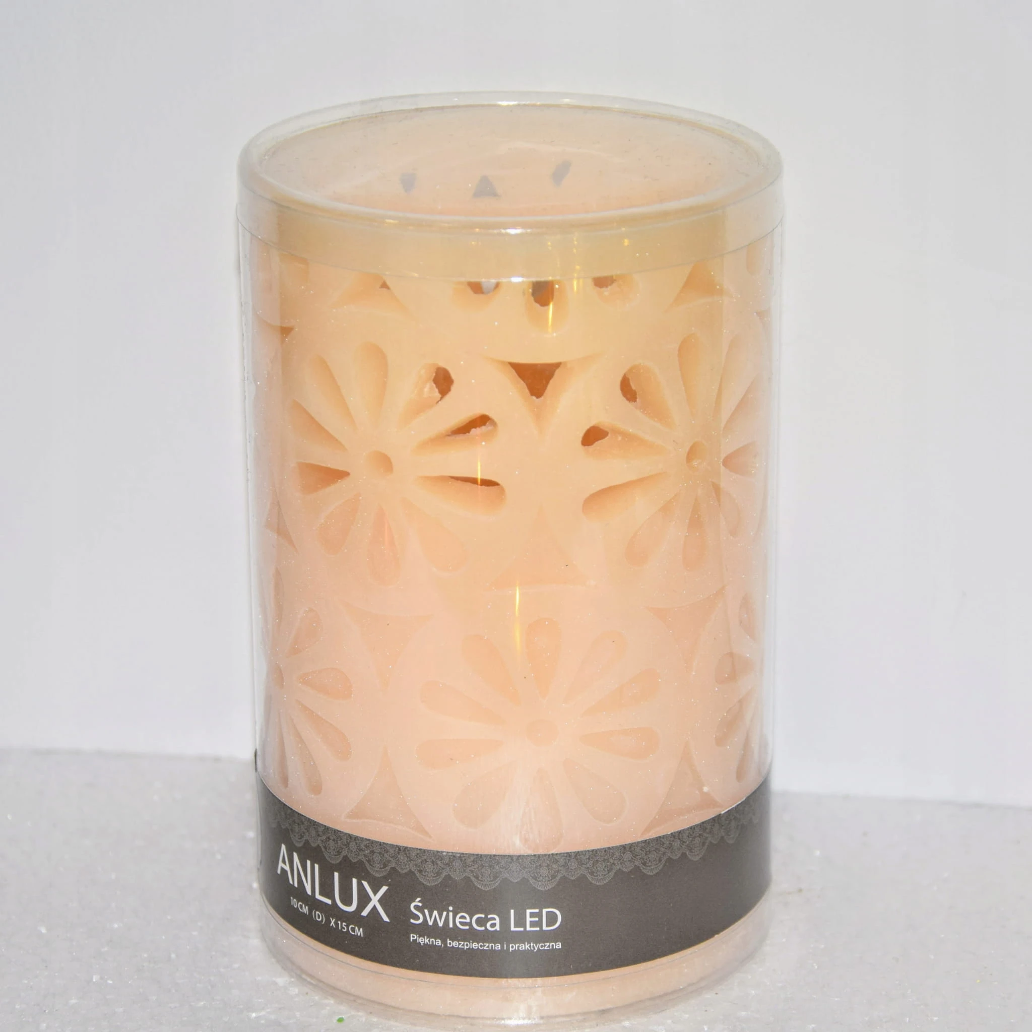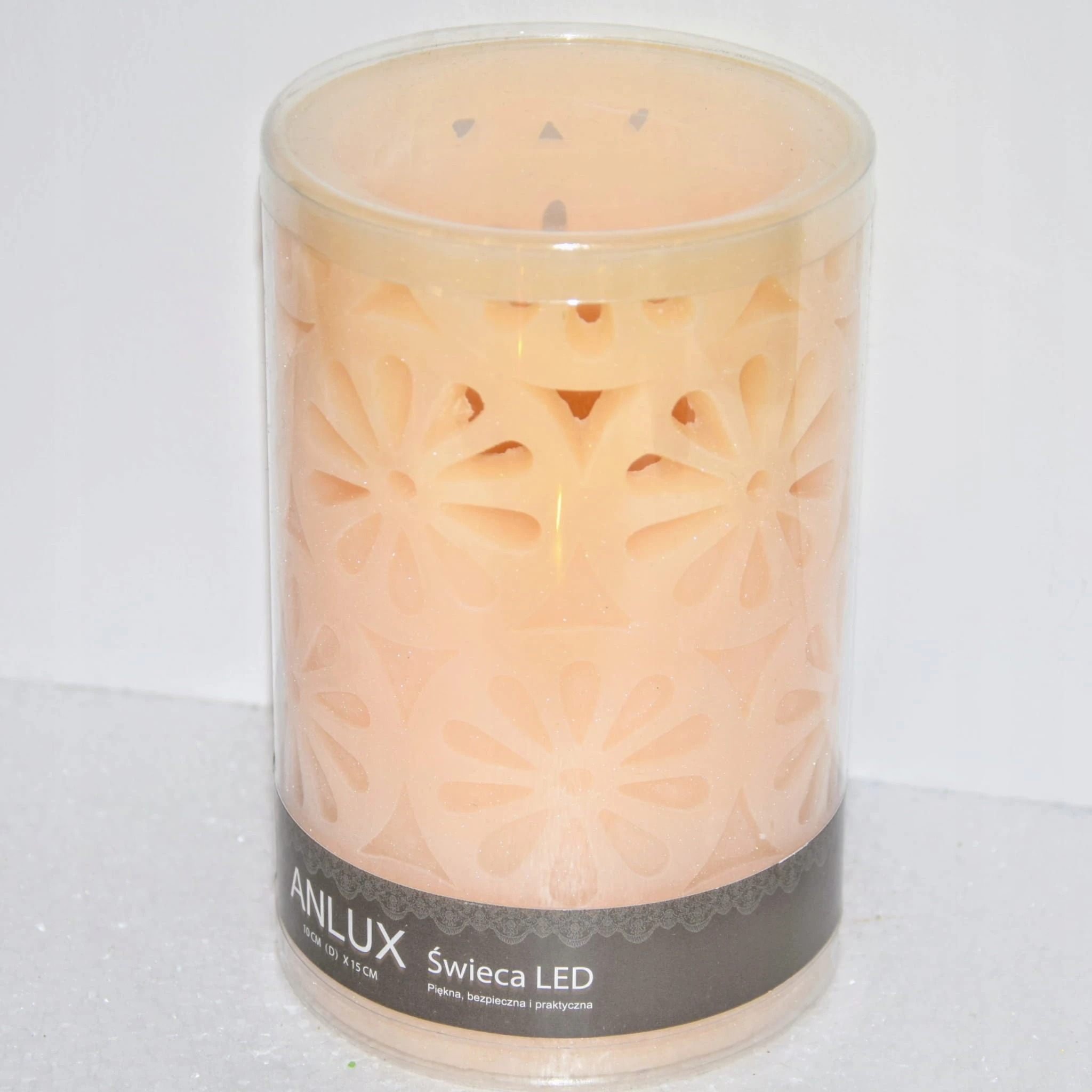 Świeca led woskowa, ażurowe koła ecru średnia.