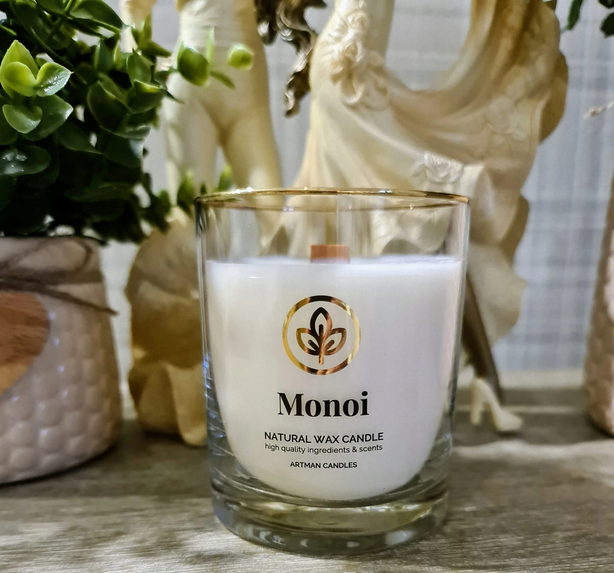 Świeca zapachowa MANOI z drewnianym knotem ARTMAN CANDLES