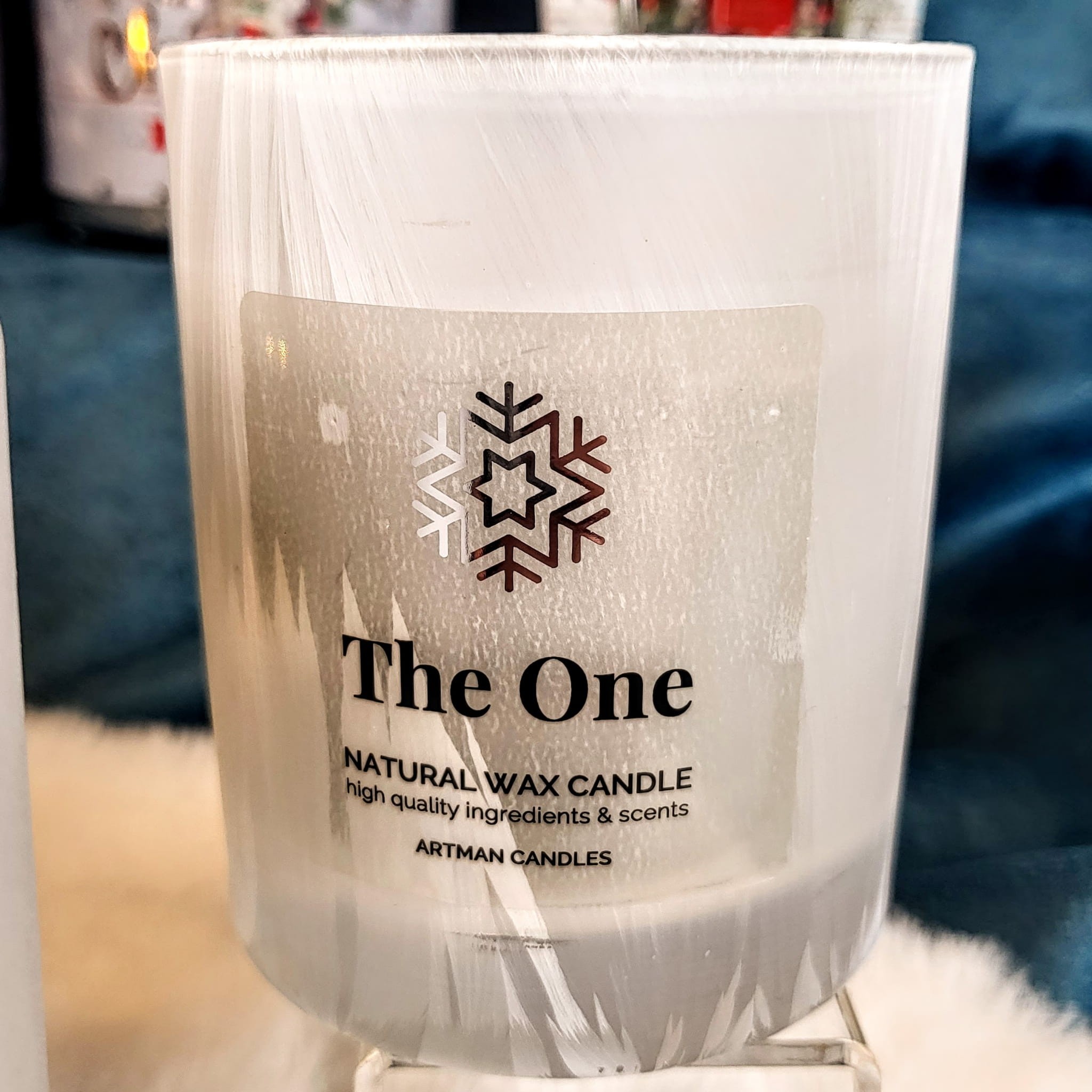 Przepiękna świeca z kolekcji Organic o zapachu The One. Świeca ozdobiona w zimowe motywy. Elegancki wygląd w połączeniu z drewnianym knotem zadowoli miłośników wieczorów przy świecach.