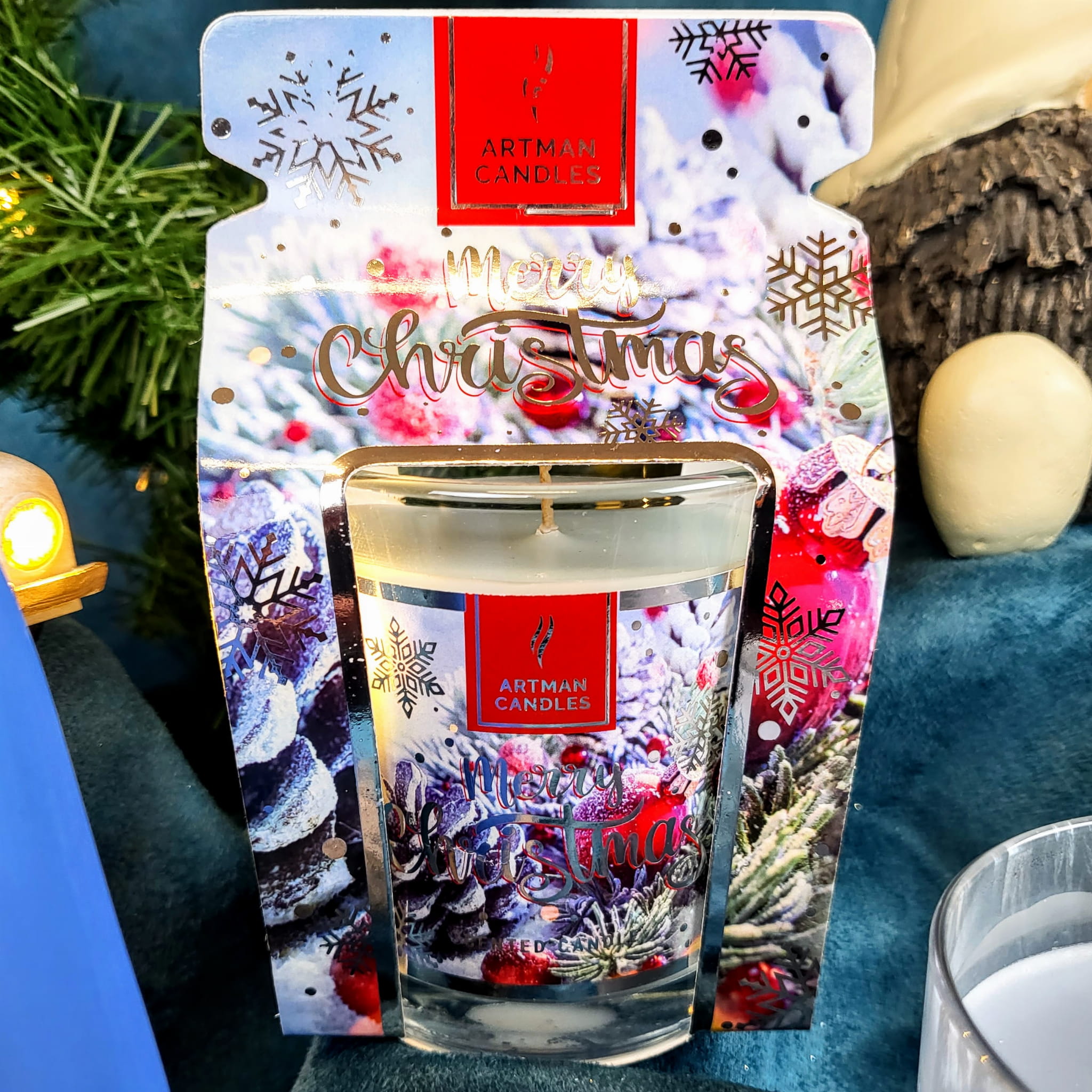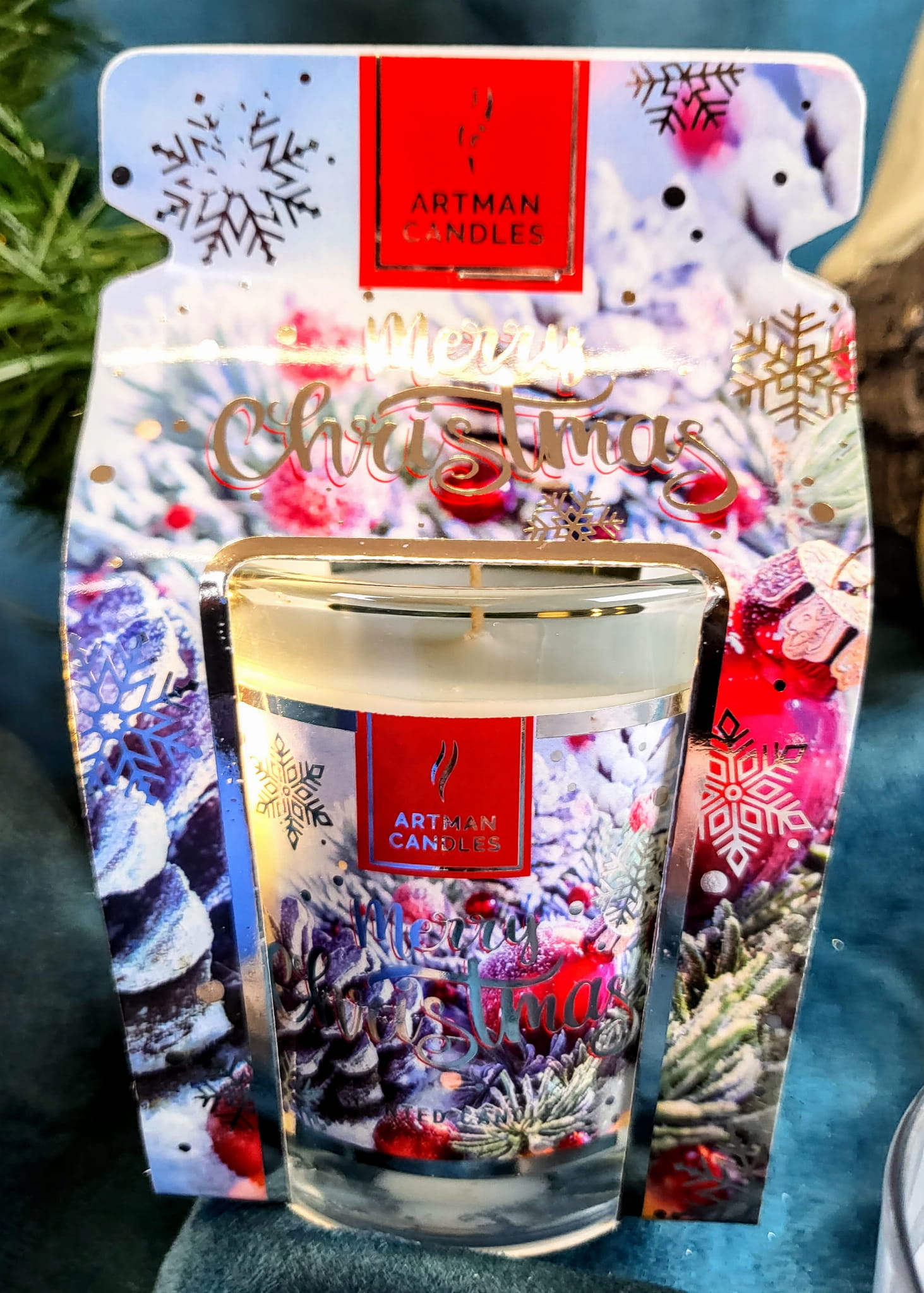 Świeca zapakowana w kartonik.