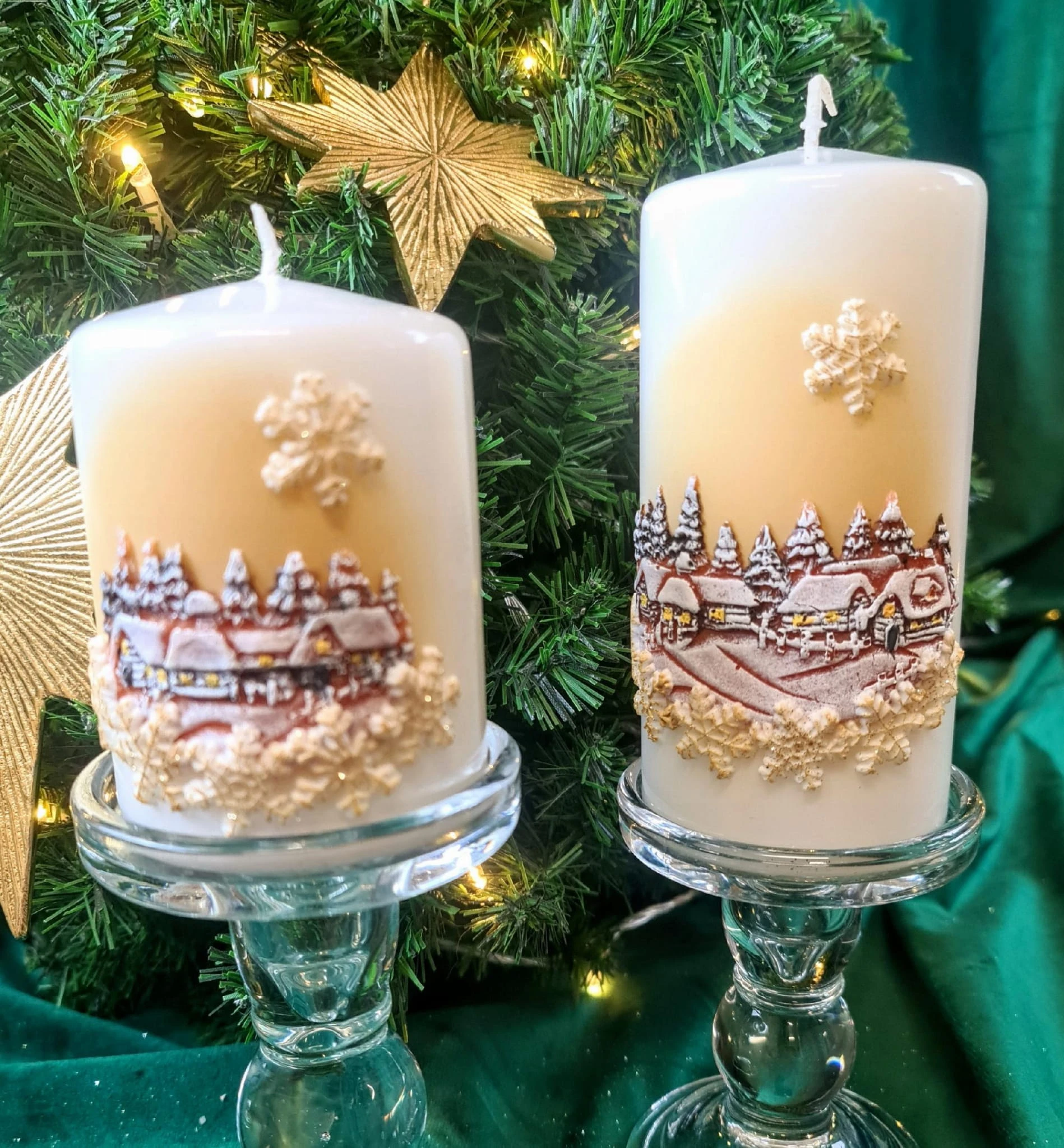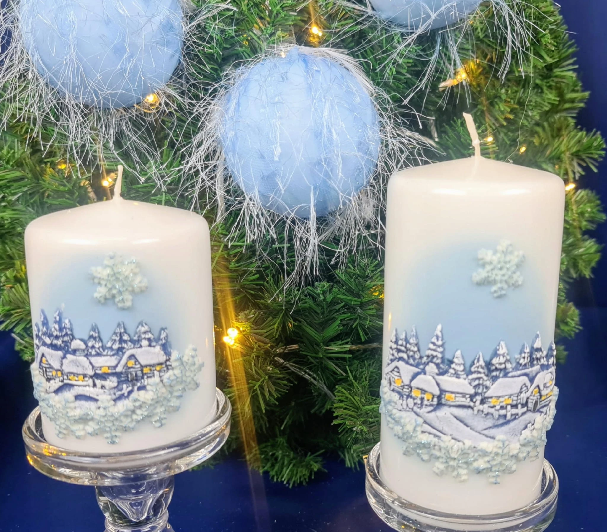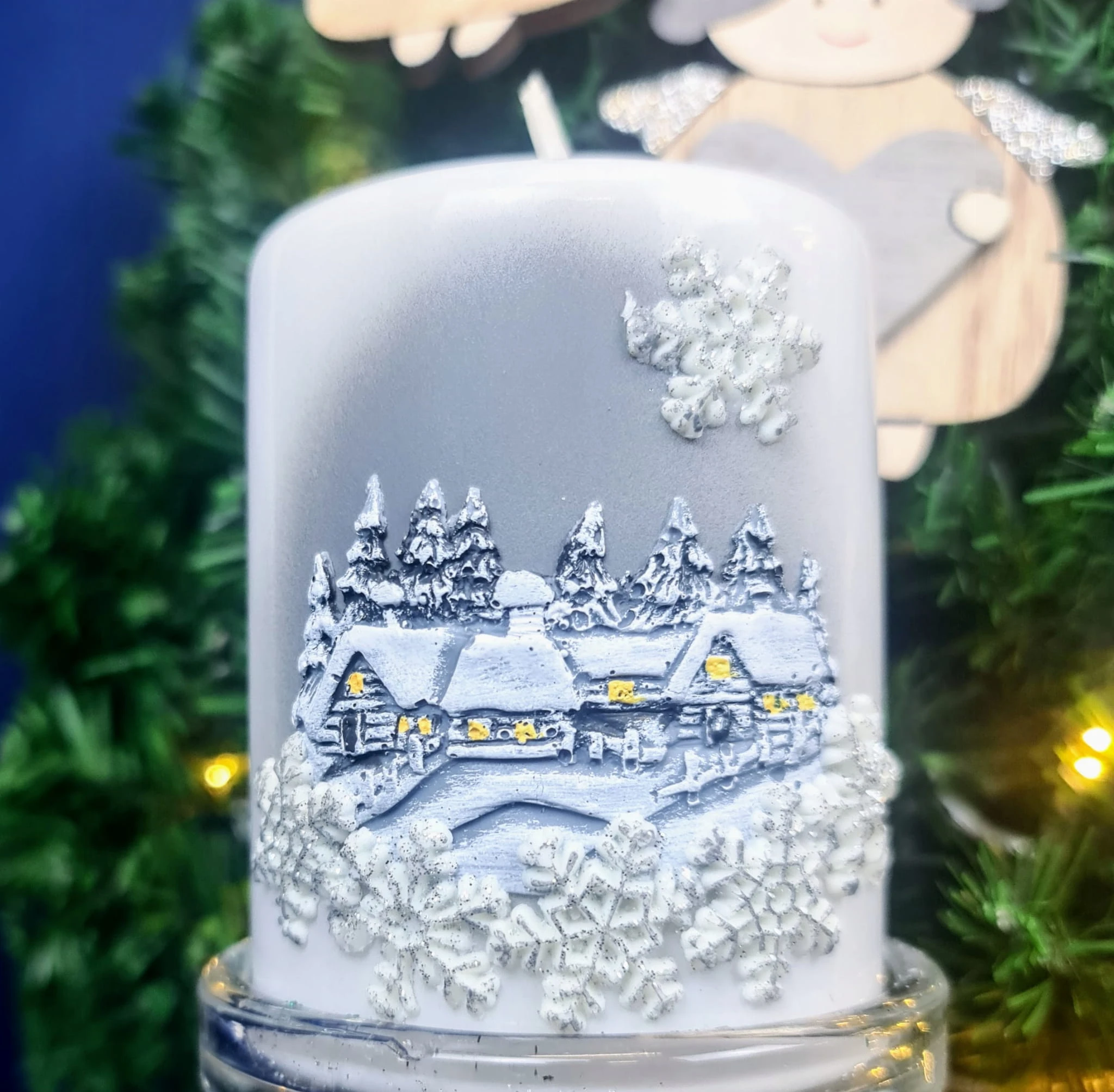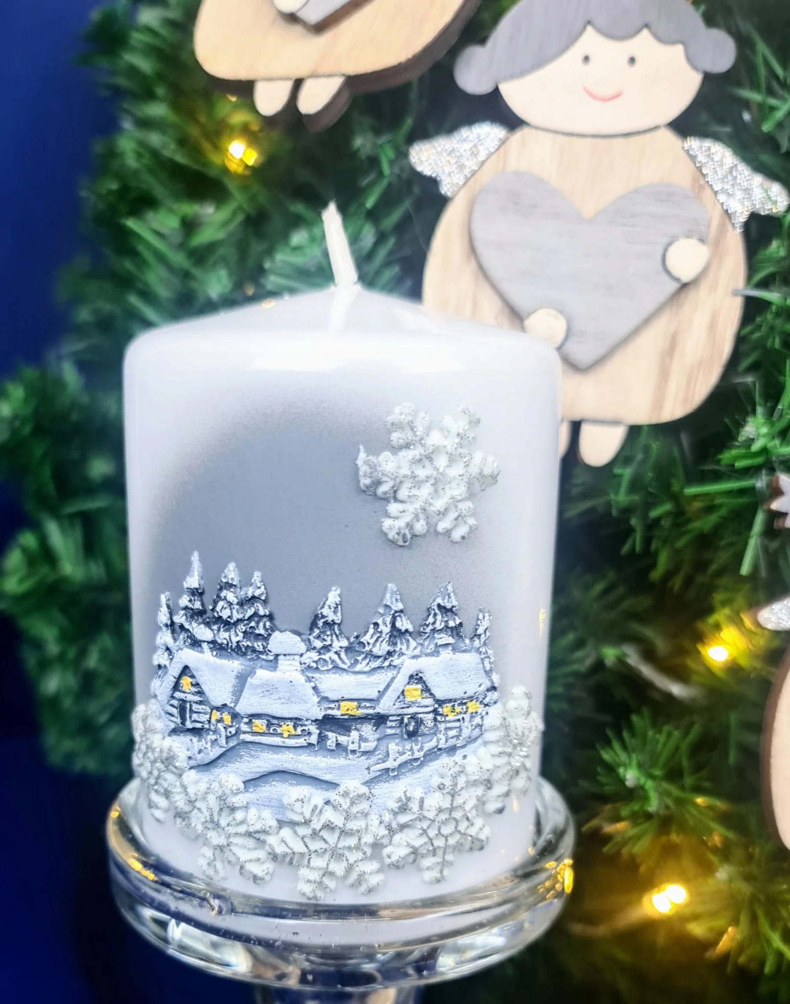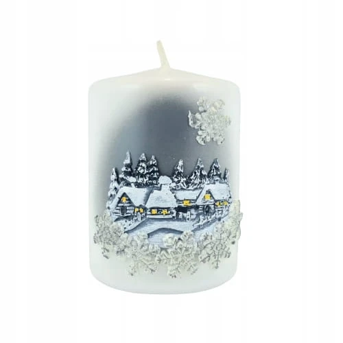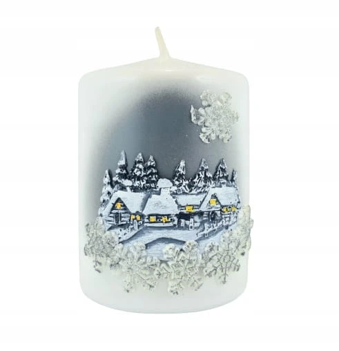 ŚWIECA ZIMOWE OKNO LAKIER biała/szara10CM