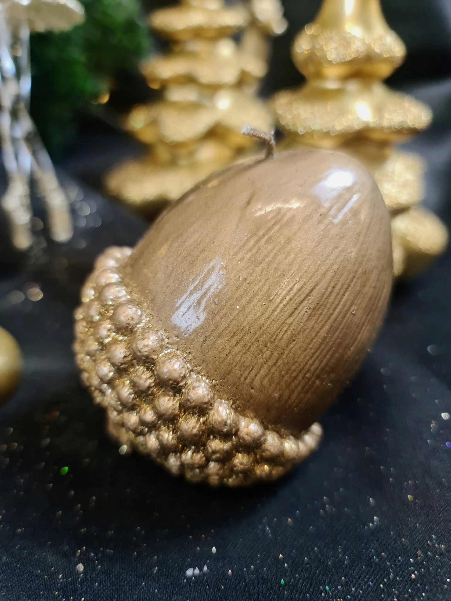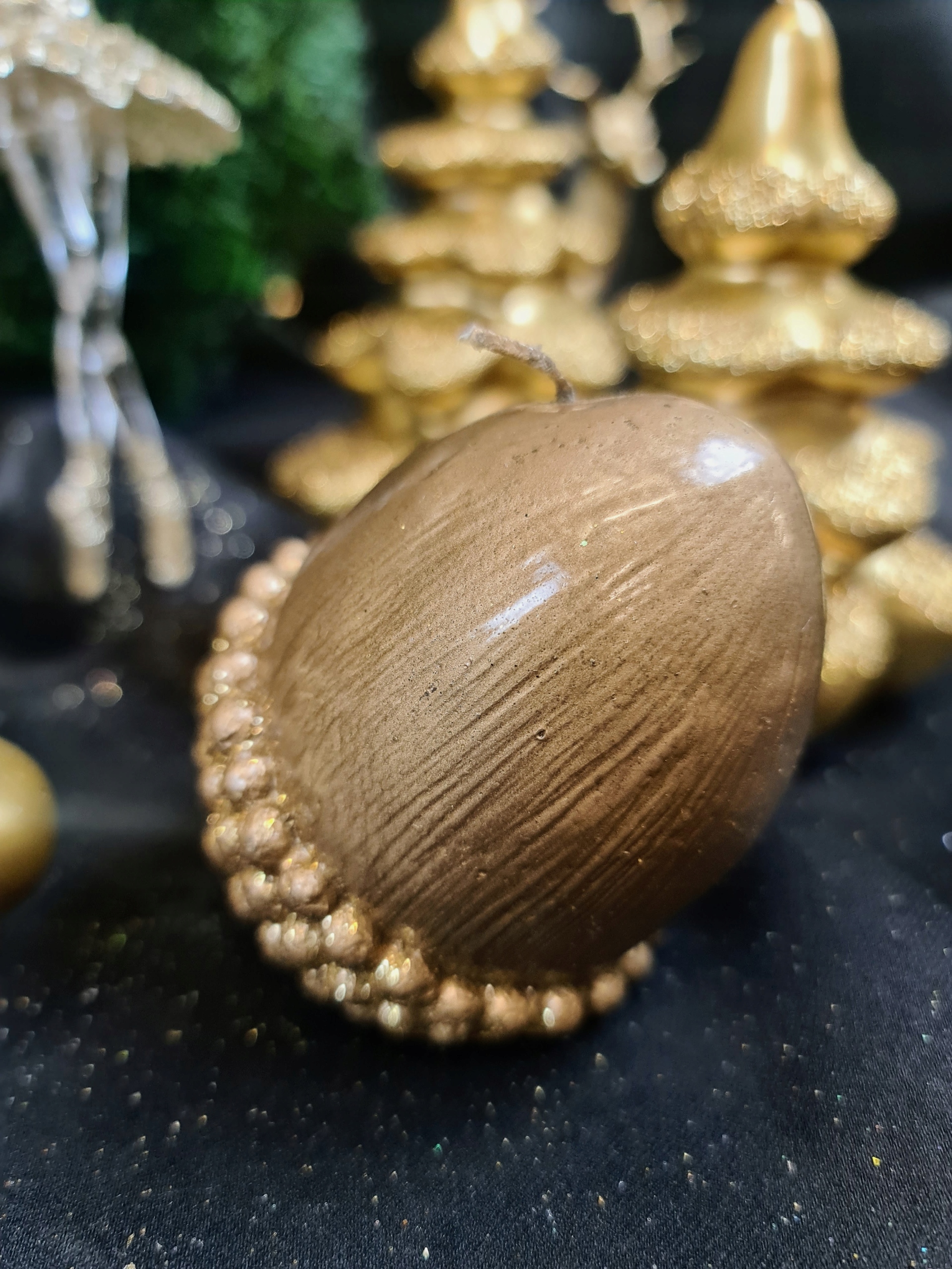 Bożonarodzeniowa dekoracja w kształcie żołędzia, która przyciągnie wzrok każdego przez swój oryginalny kształt i blask.