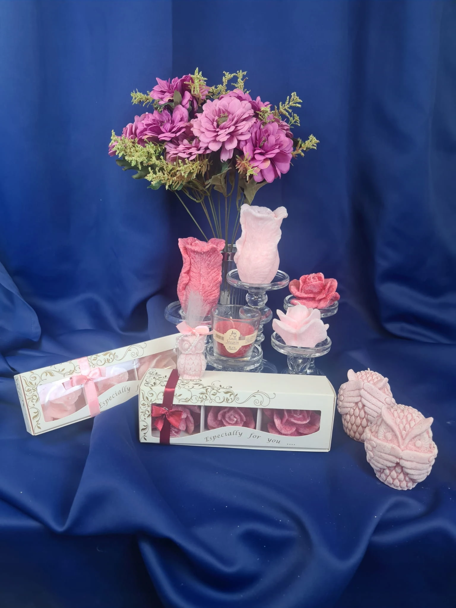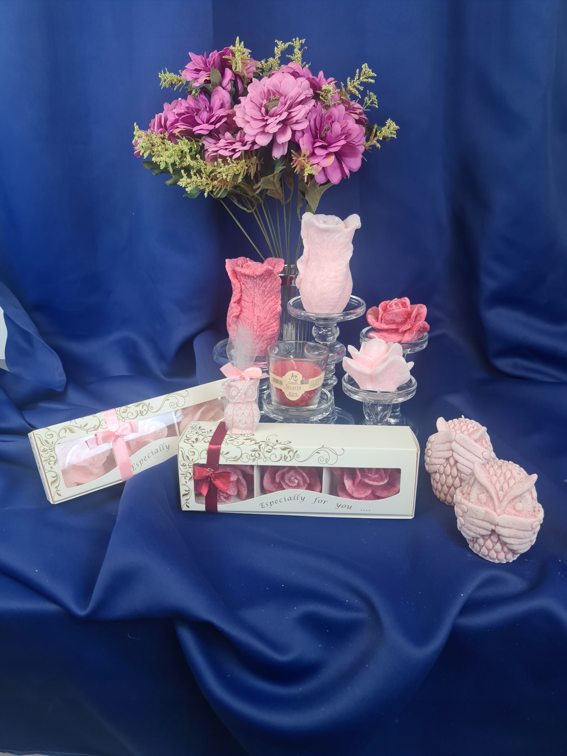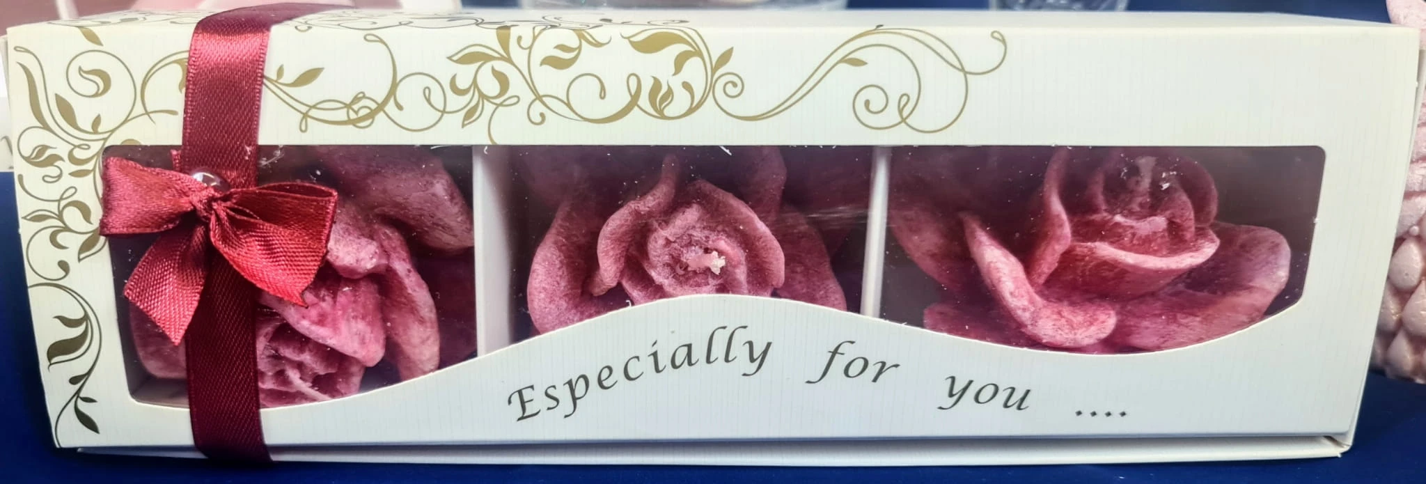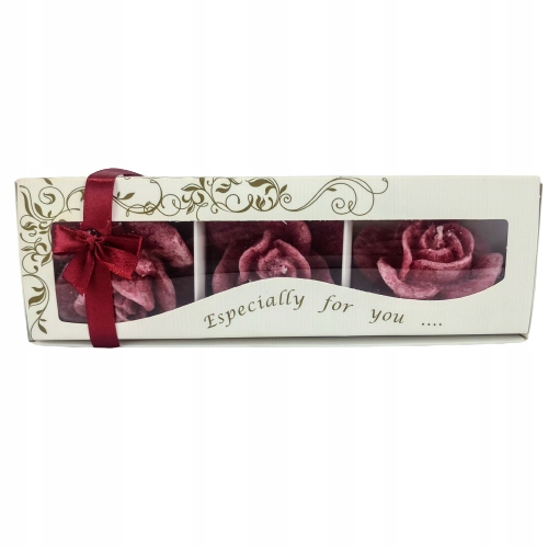 Świeca w kształcie róży, zapachowa, w pudełku 3 sztuki.