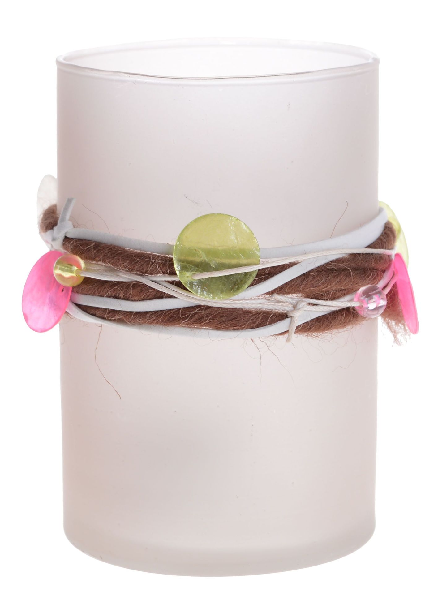 ŚWIECZNIK BEŻOWY Z OZDOBĄ Z MASY PERŁOWEJ 8x8x12 cm