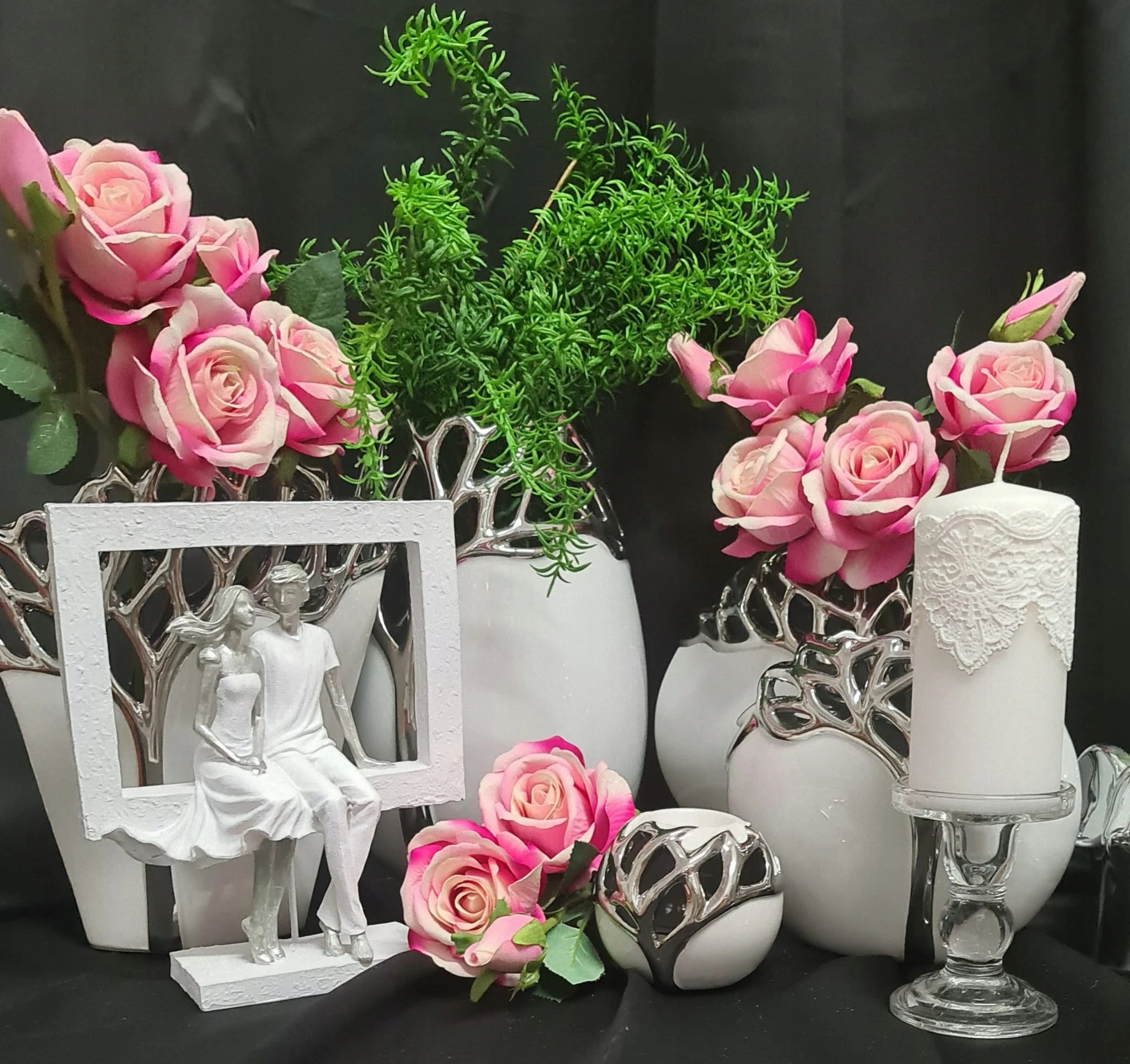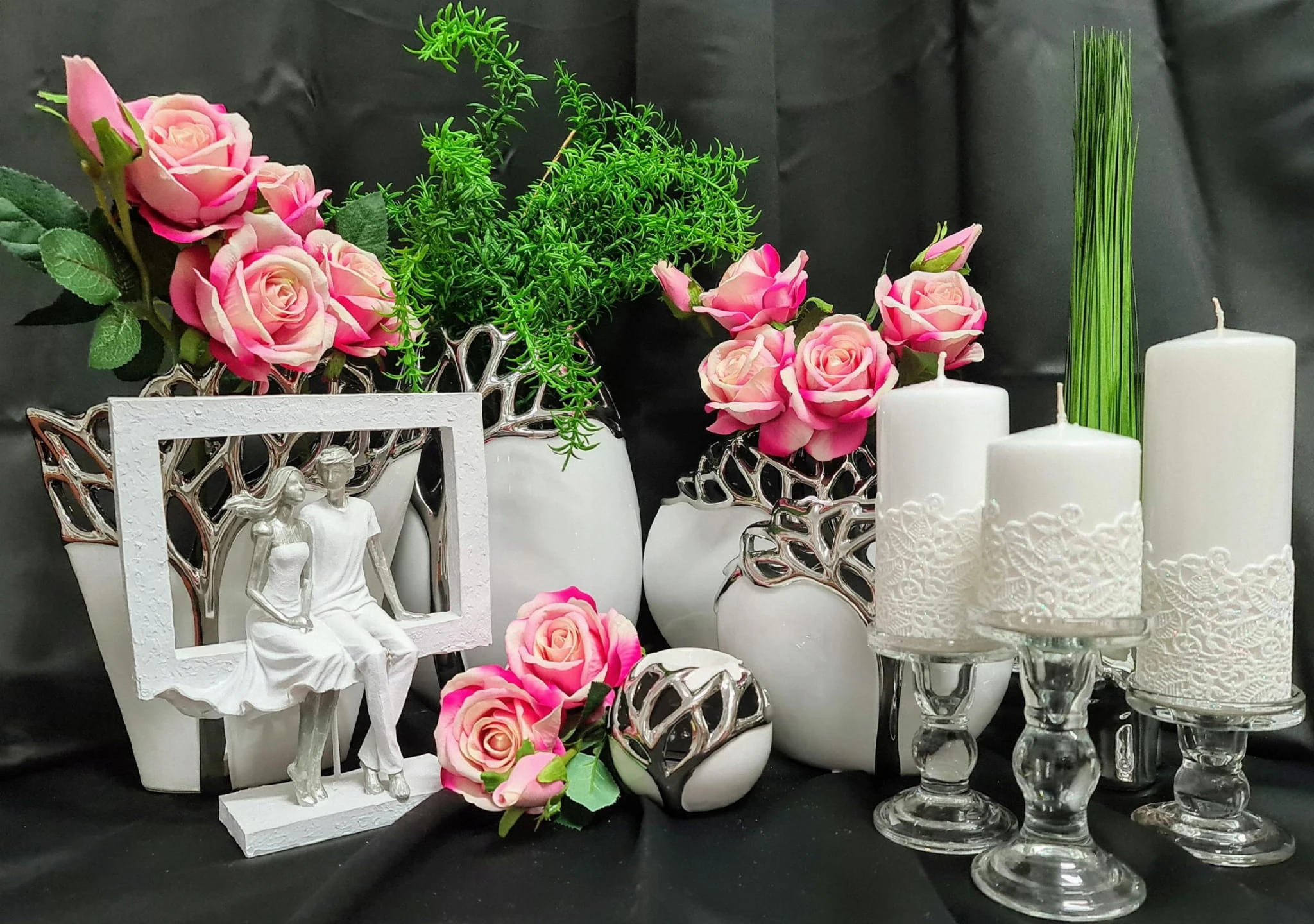 Nietuzinkowy świecznik ze srebrnymi, ażurowymi wstawkami przypominającymi drzewo. Stanowi idealny element dekoracyjny. Idealnie wkomponuje się we wnętrza w stylu glamour i nie tylko. Świetnie sprawdzi się jako ozdoba do domu lub prezent dla osoby lubiącej elegancję.