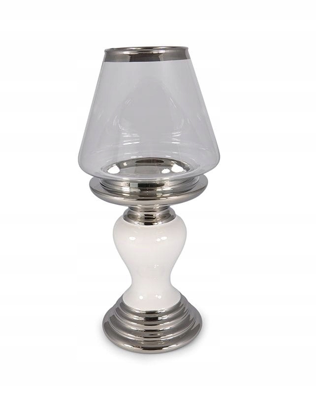 ŚWIECZNIK CERAMICZNY ZE SZKLANYM KLOSZEM BIAŁY 28CM
