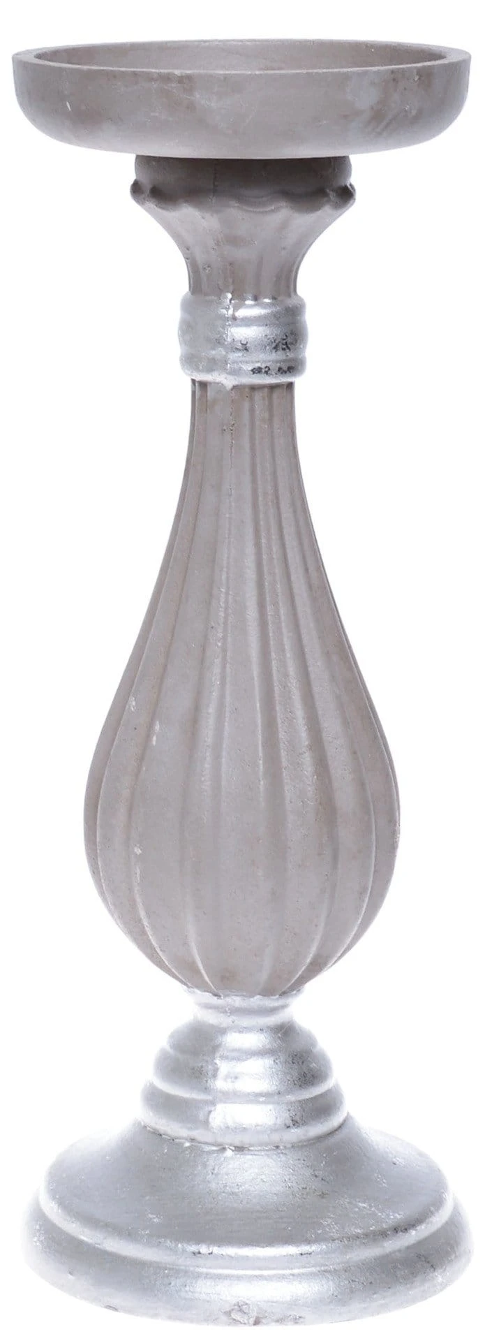 ŚWIECZNIK DREWNIANY SZARO SREBRNY 28CM