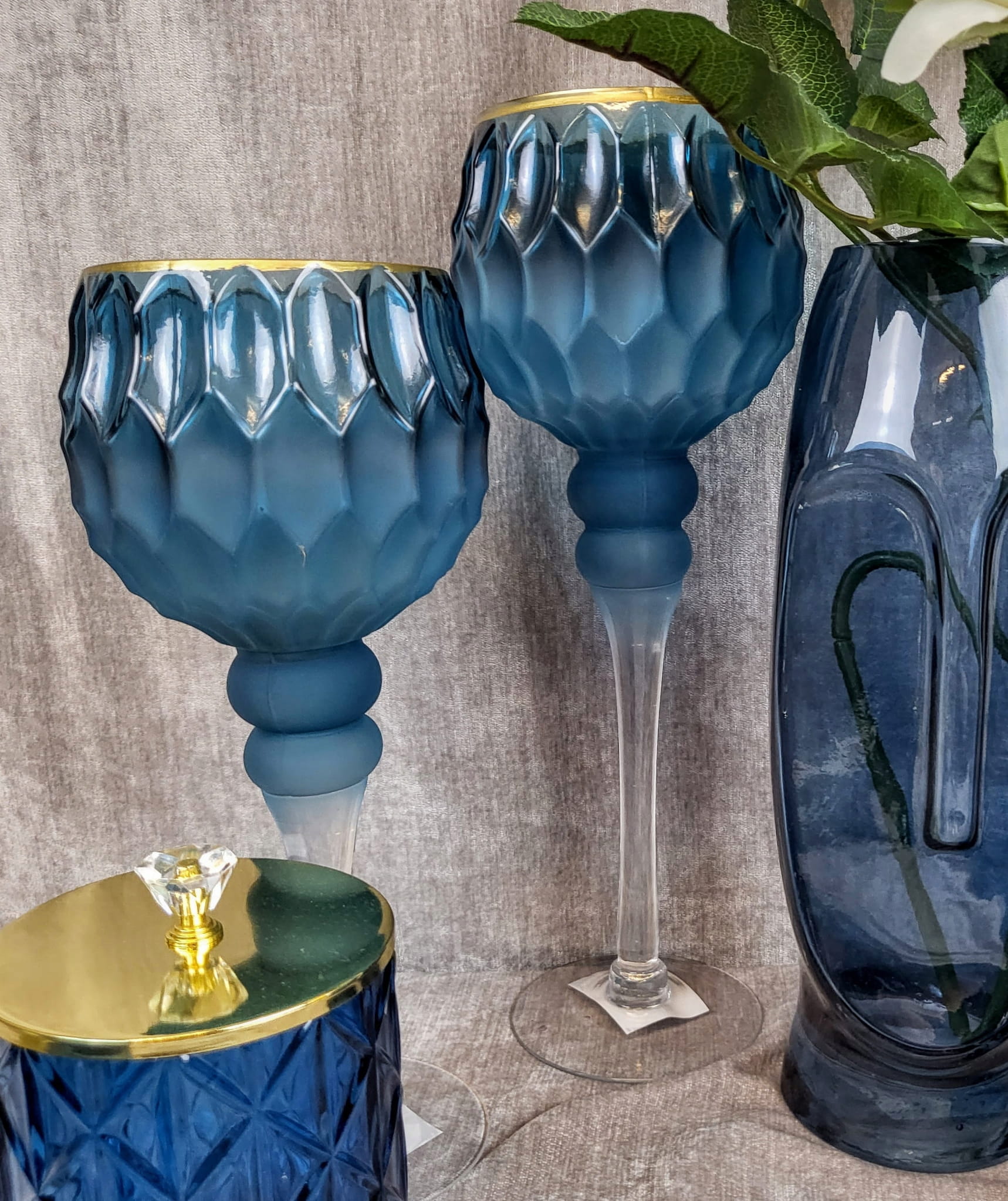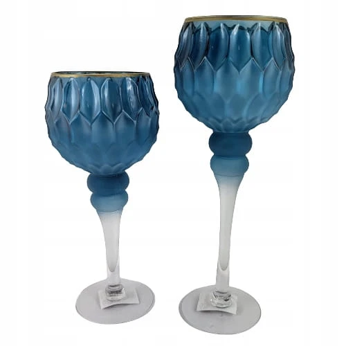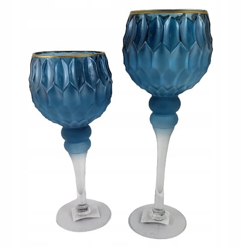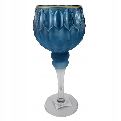 ŚWIECZNIK KIELICH WYSOKI NIEBIESKI OMBRE MAT 30CM