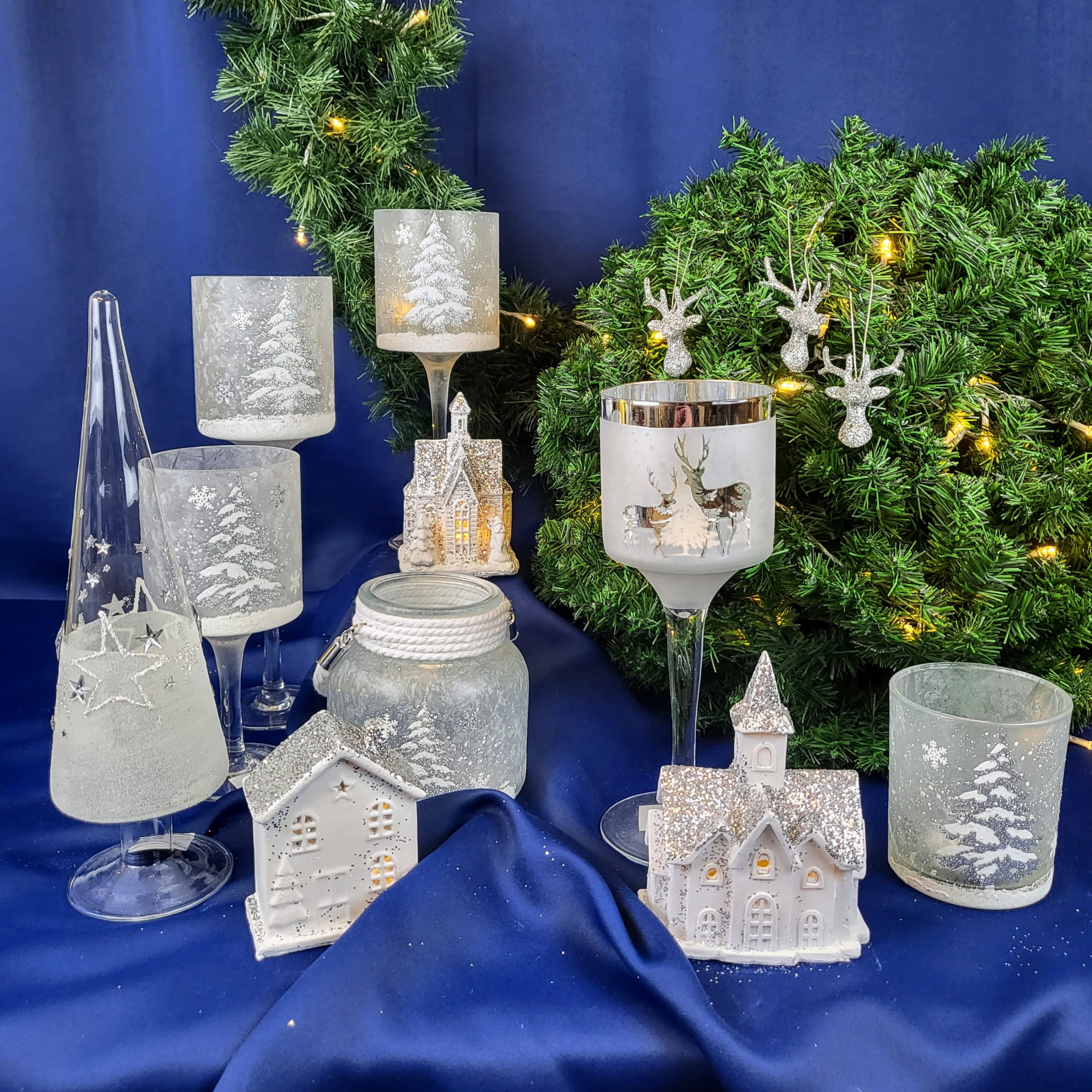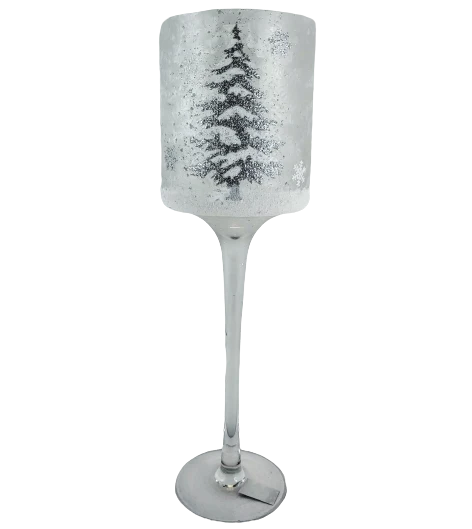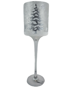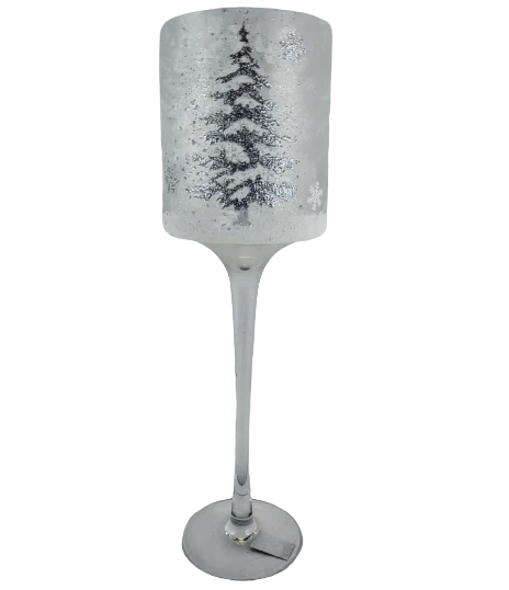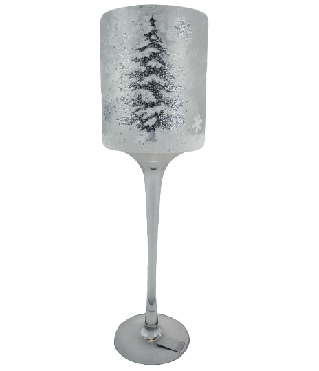 ŚWIECZNIK KIELICH ZE SREBRNĄ CHOINKĄ ŚWIĘTA 30CM