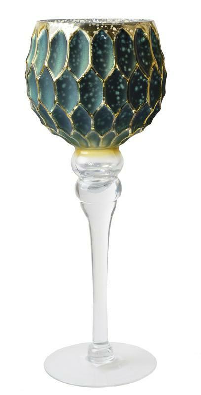ŚWIECZNIK KIELICH ZIELONY NAKRAPIANY WYSOKI 12X35CM