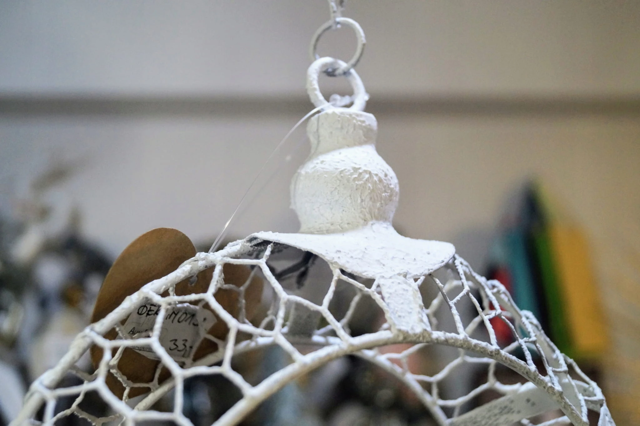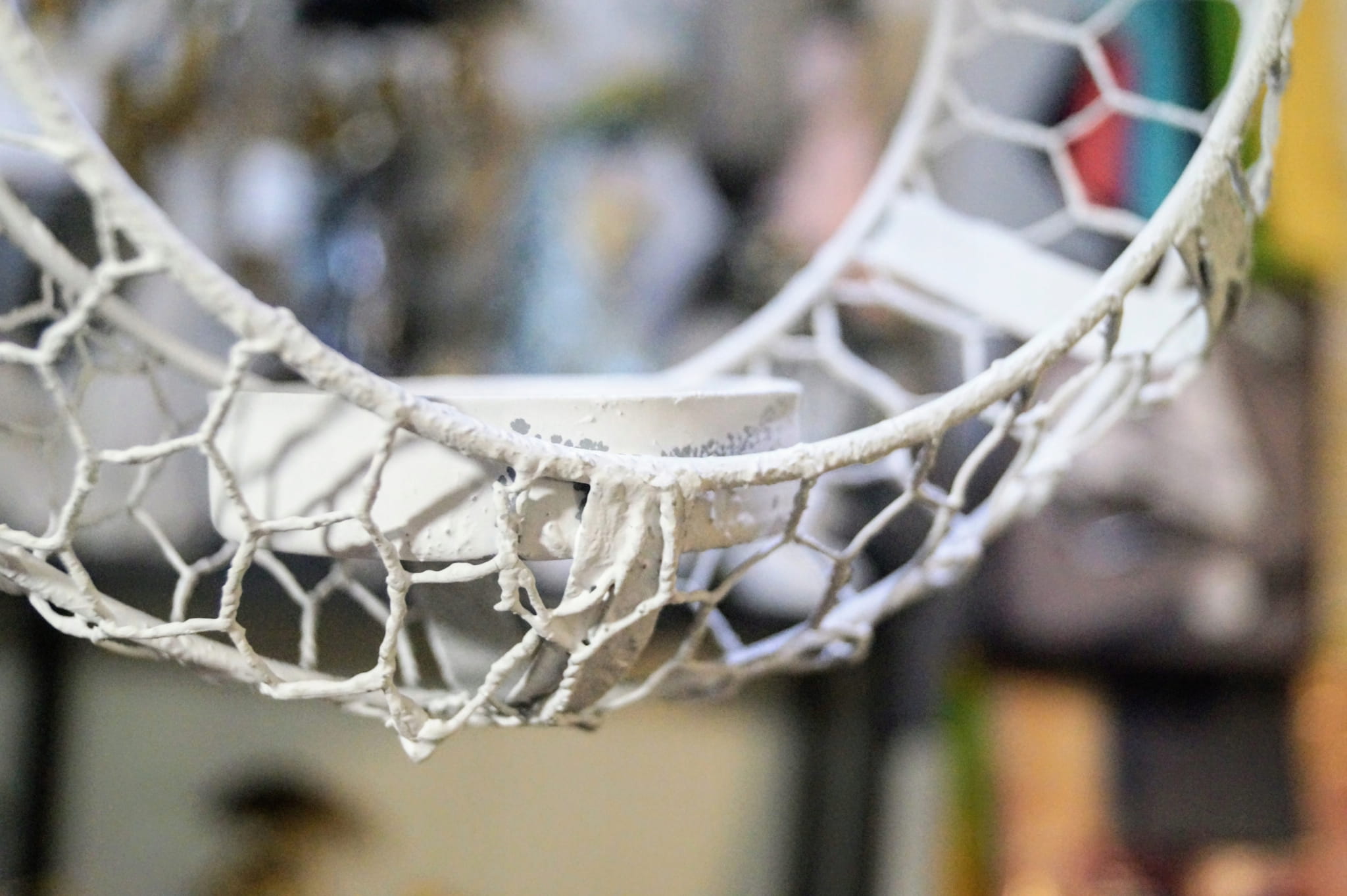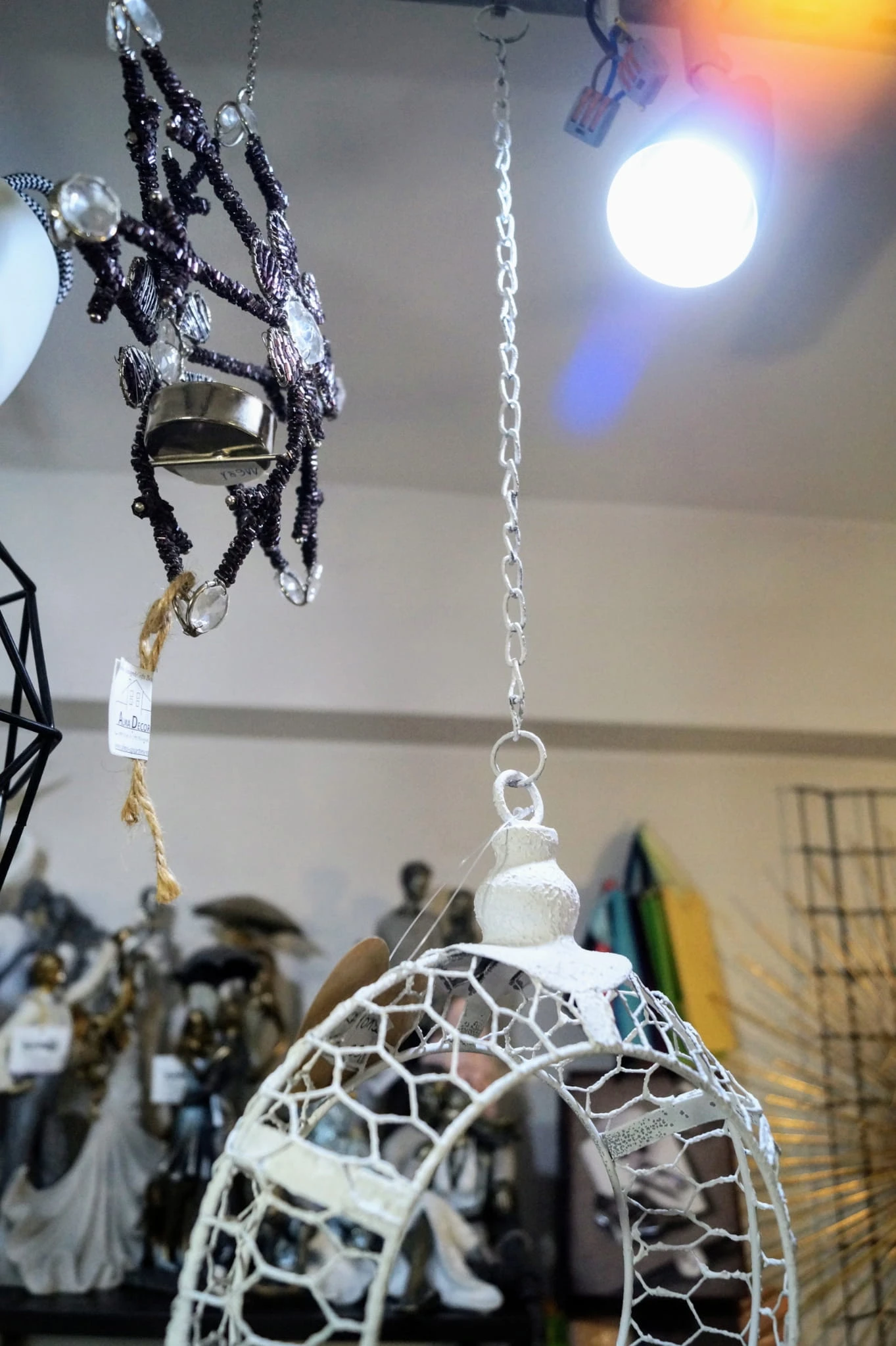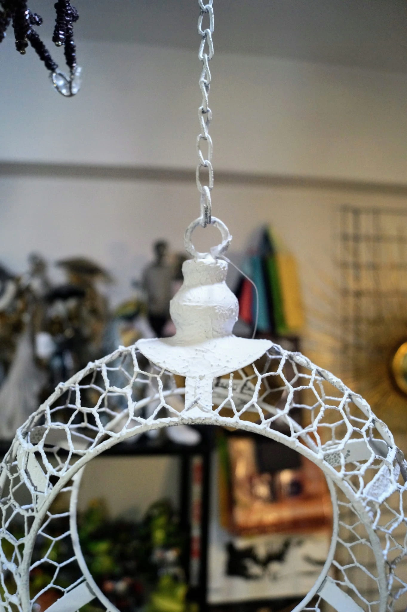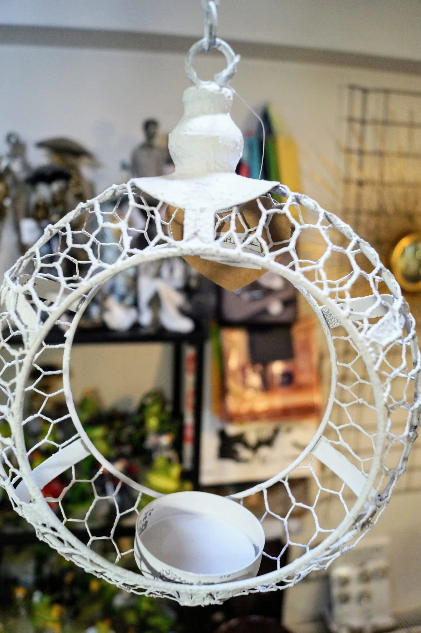 Przedmiotem oferty jest przepiękny świecznik do zawieszenia. W formie wiszącego na łańcuszku białego okręgu z miejscem na świecę.
