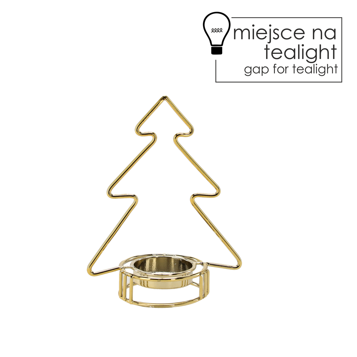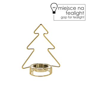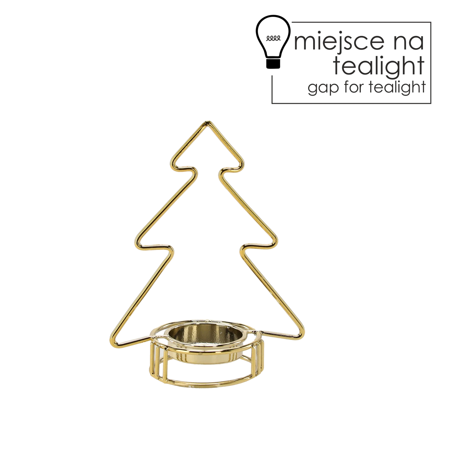 ŚWIECZNIK METALOWY NA TEALIGHT ZŁOTY CHOINKA 14,7CM