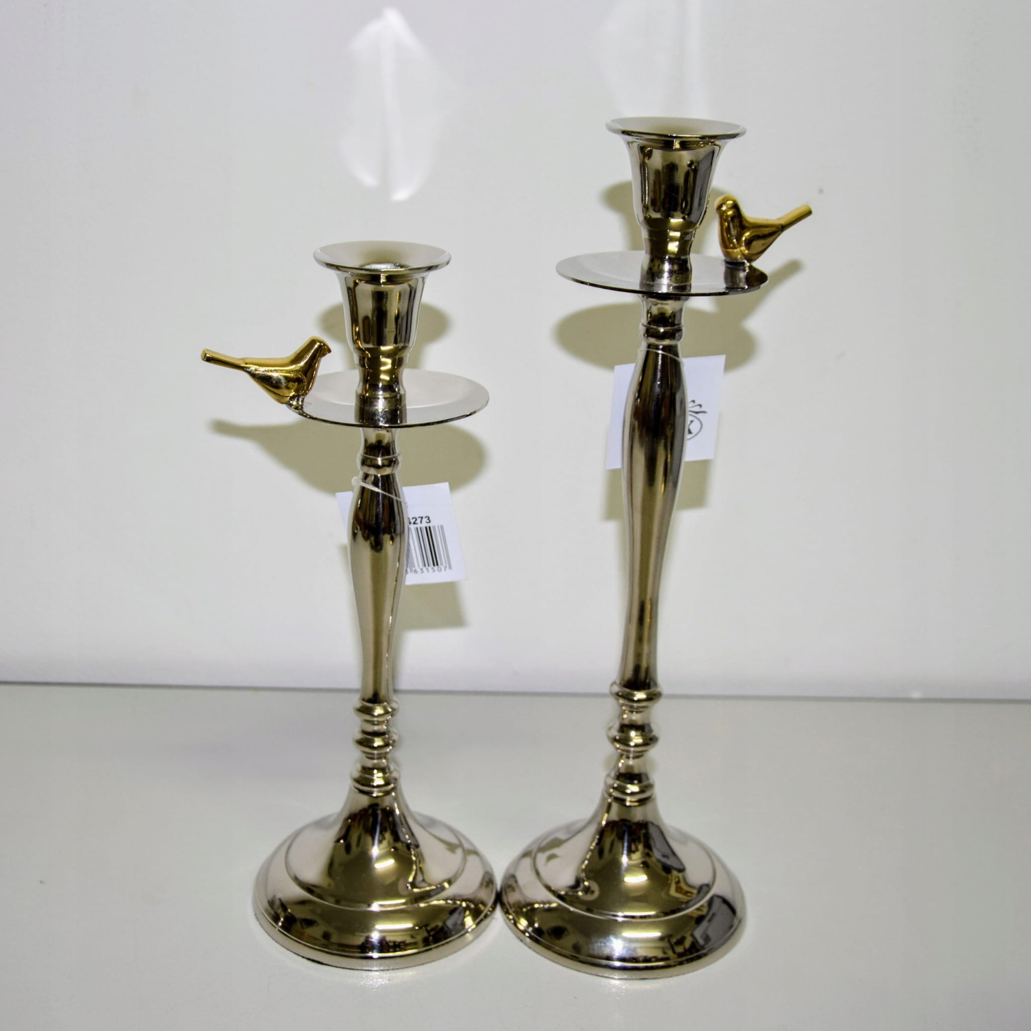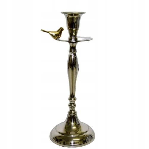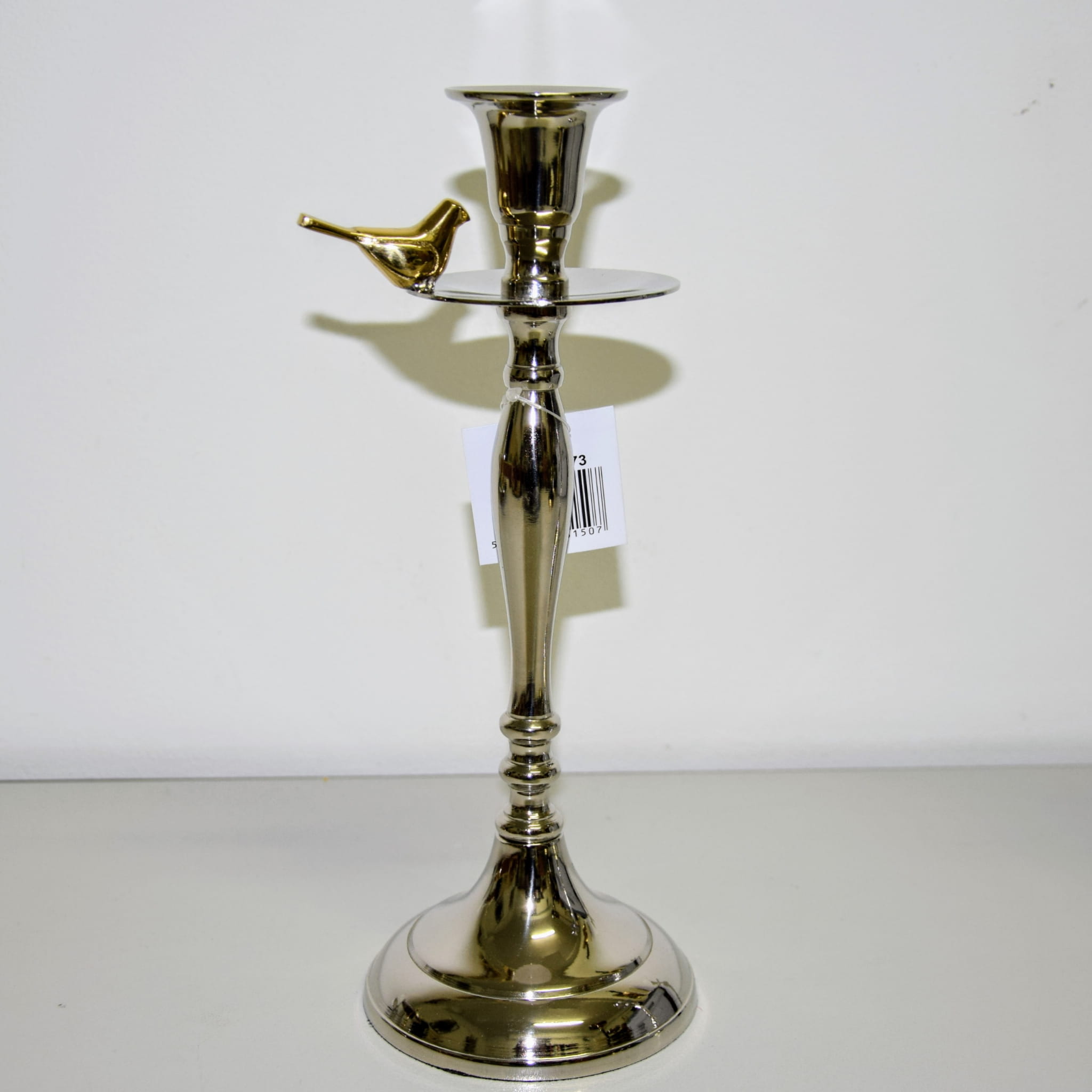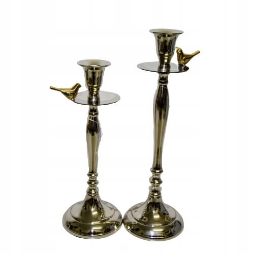 ŚWIECZNIK METALOWY SREBRNY Z PTASZKIEM premium