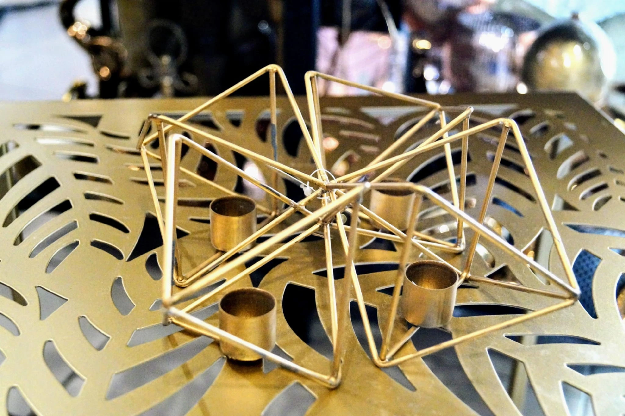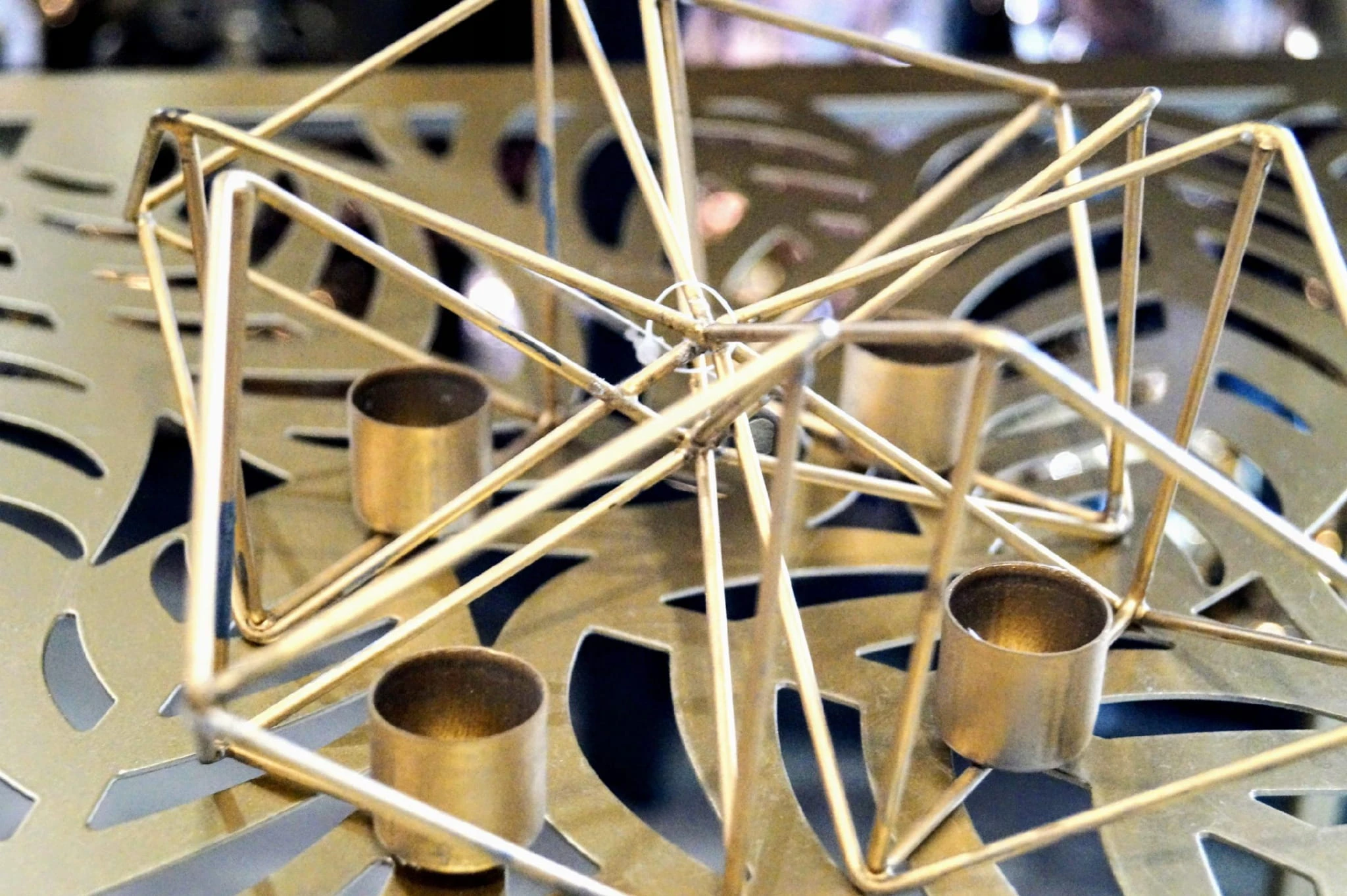 Zachwycający świecznik w eleganckim stylu, dobrze wpasuje się jako dekoracja wnętrz nowoczesnych i mieszanych. Świecznik wykonany jest z metalu. Ma miejsce na 4 wąskie świeczki.