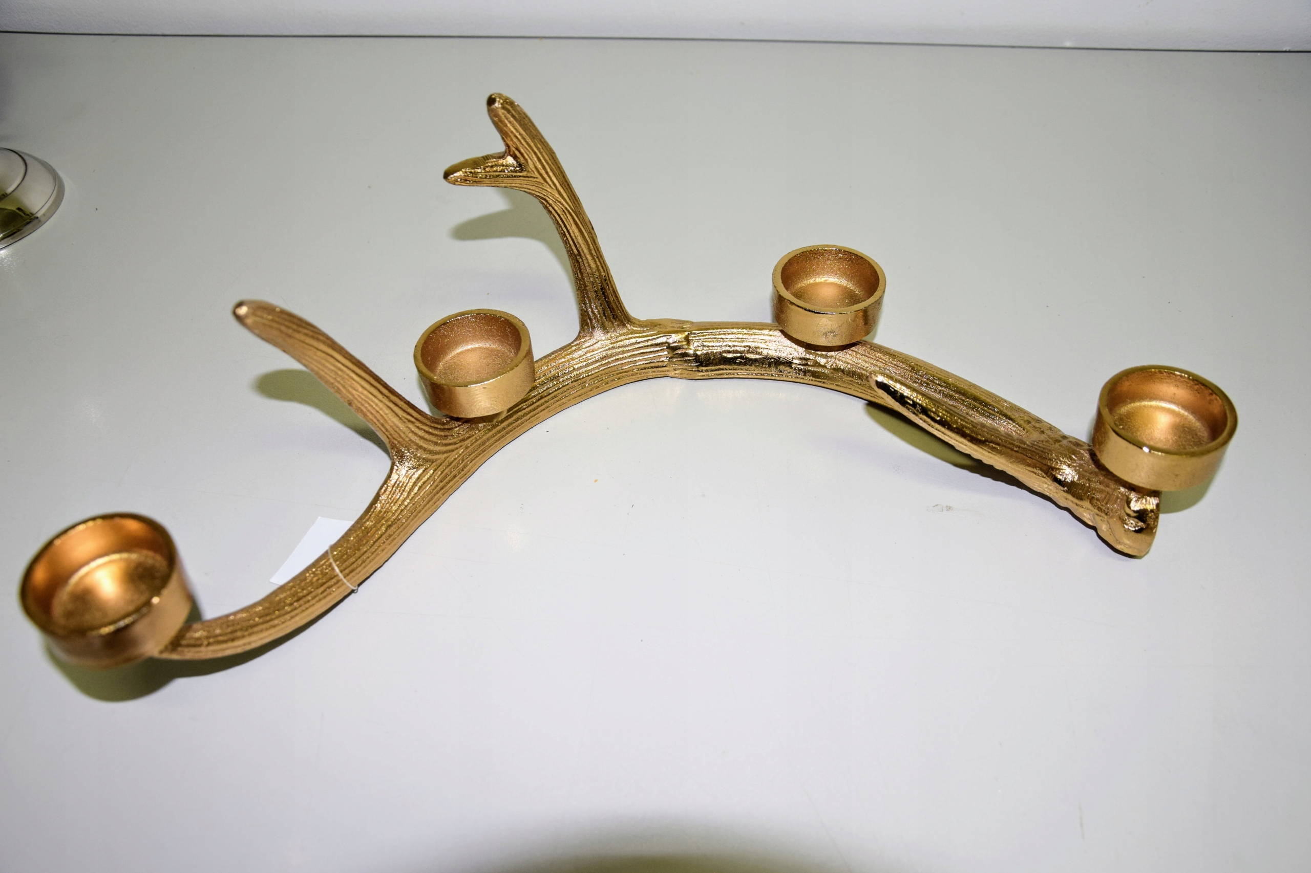 ŚWIECZNIK POROŻE NA 4 TEALIGHTY ZŁOTY 41,5X21X15,5