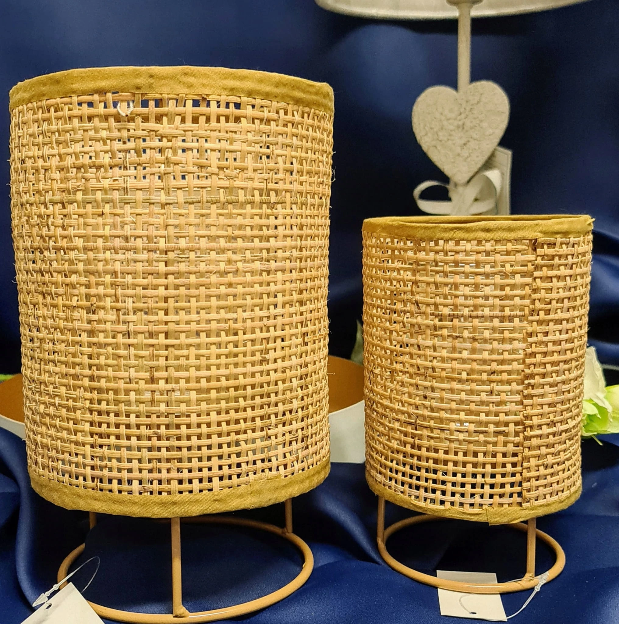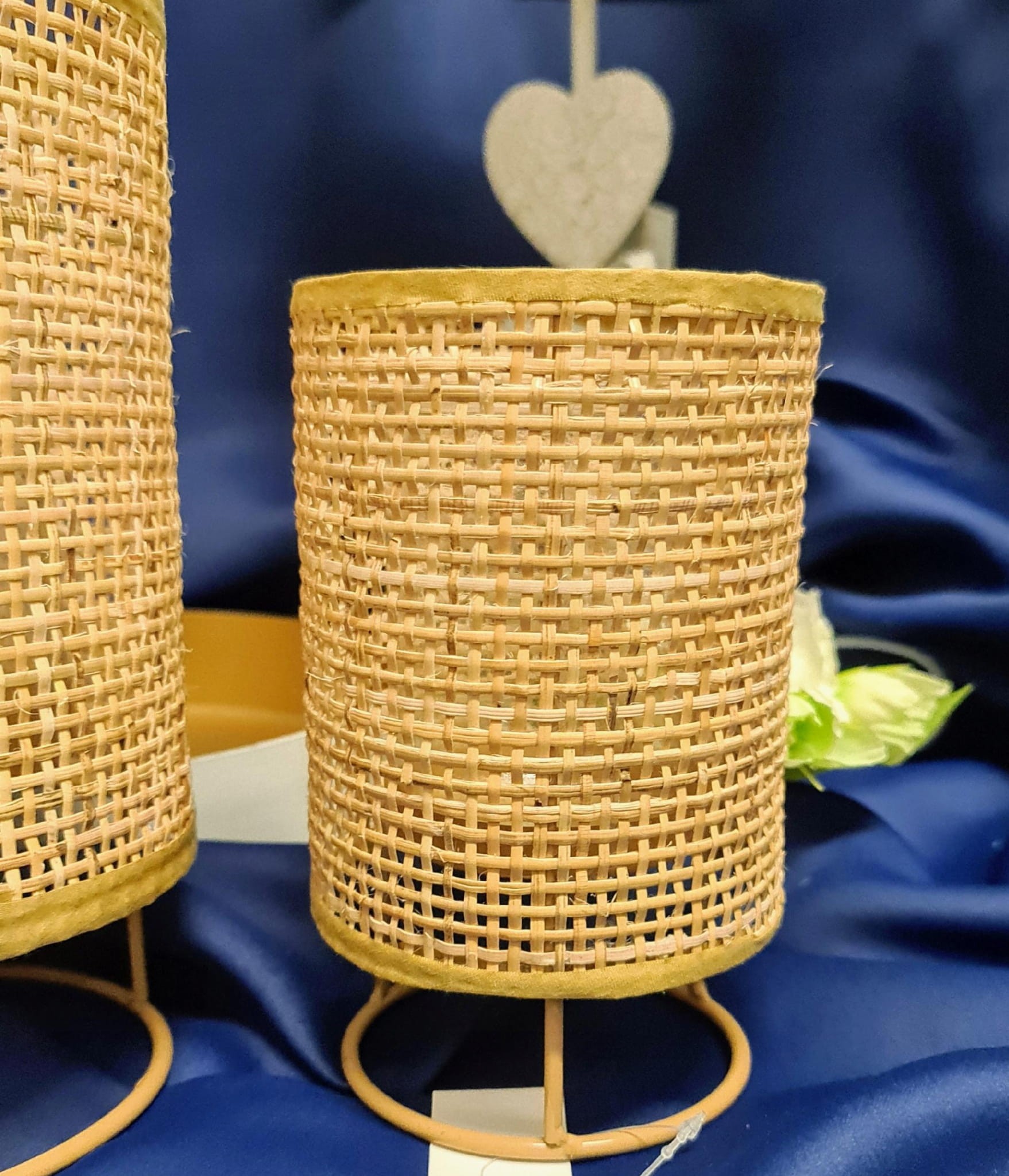 ŚWIECZNIK RATTANOWY ZE SZKLANYM WKŁADEM MAŁY H18CM