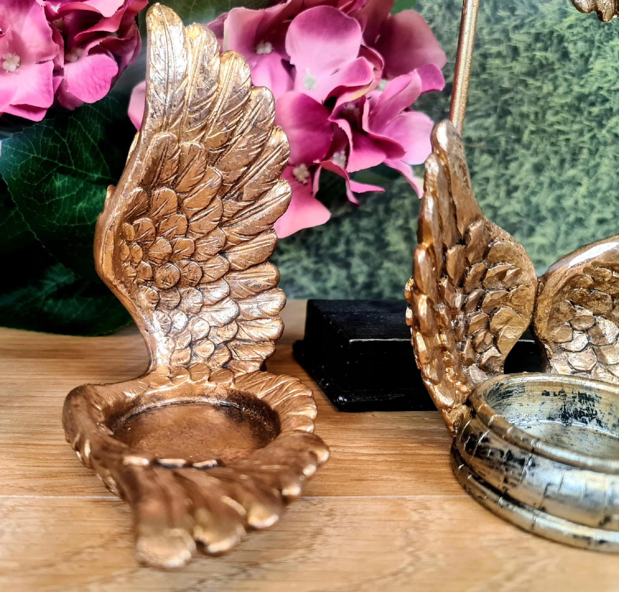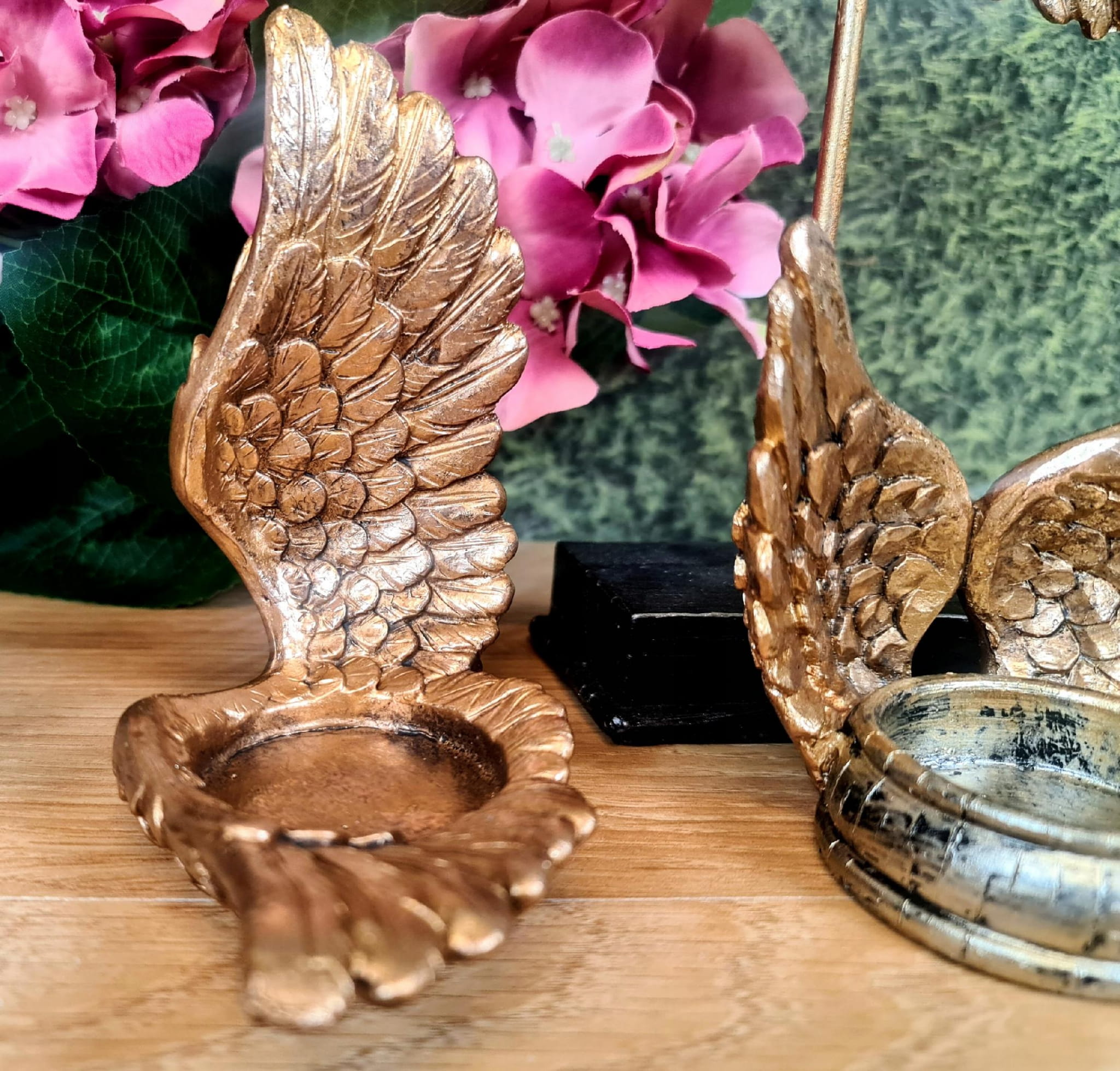ŚWIECZNIK SKRZYDŁA ZŁOTY DEKORACJA ŚWIĄTECZNA