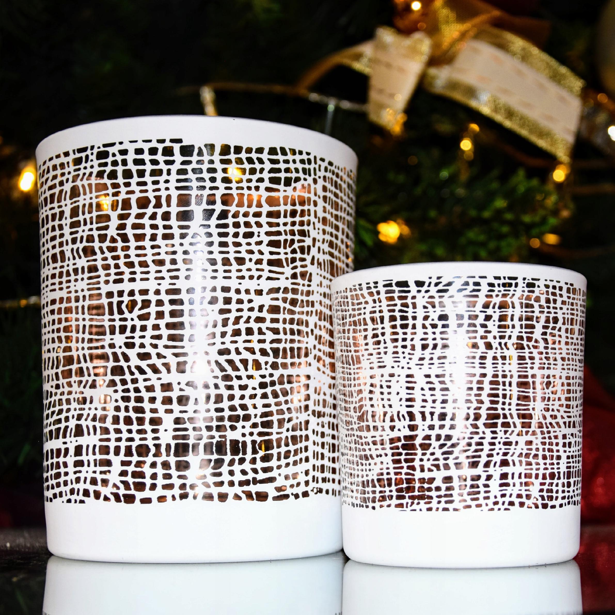 ŚWIECZNIK SZKLANY DIAMENTOWY BIAŁY mały