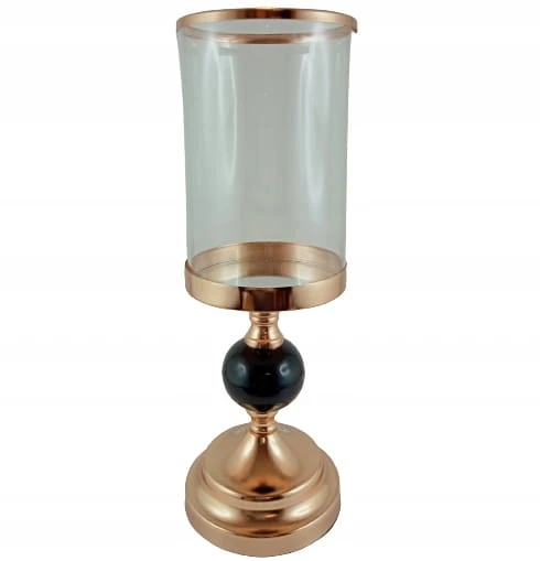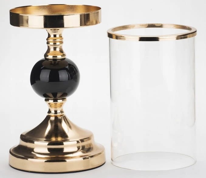 ŚWIECZNIK SZKLANY NA CZARNO-ZŁOTEJ NODZE 31 CM
