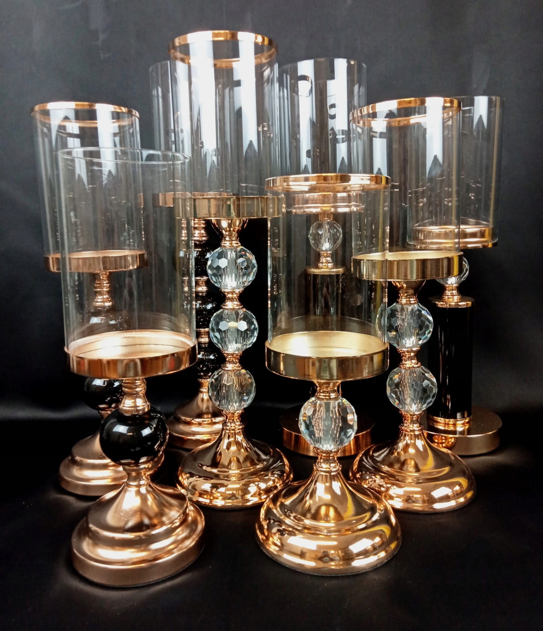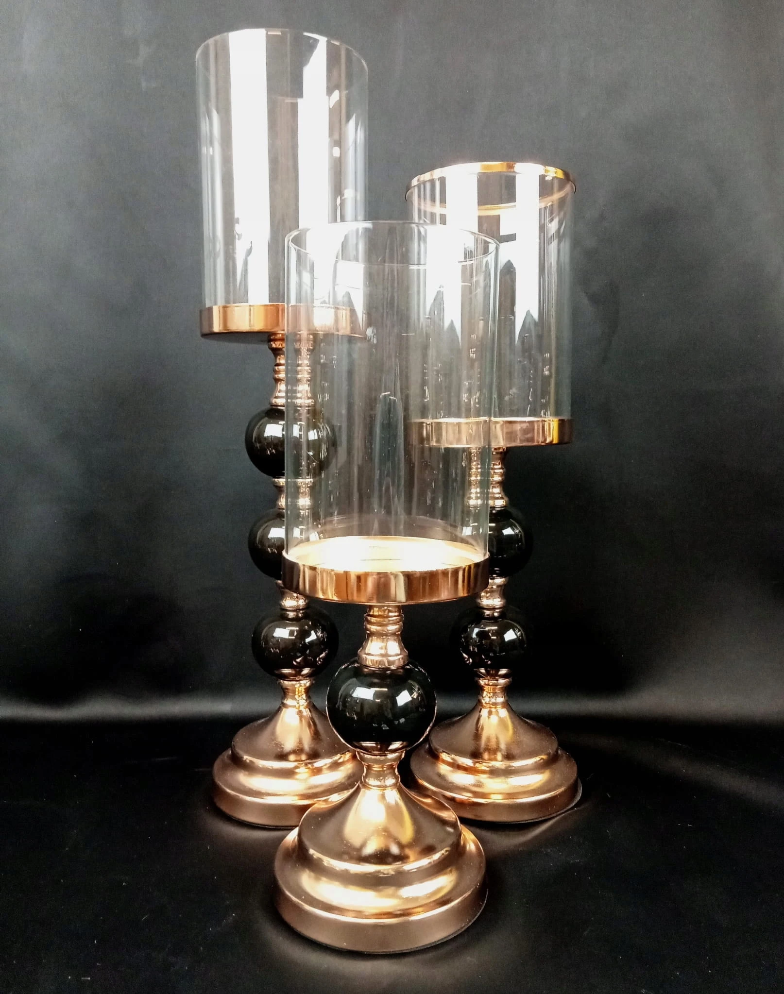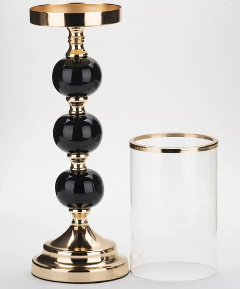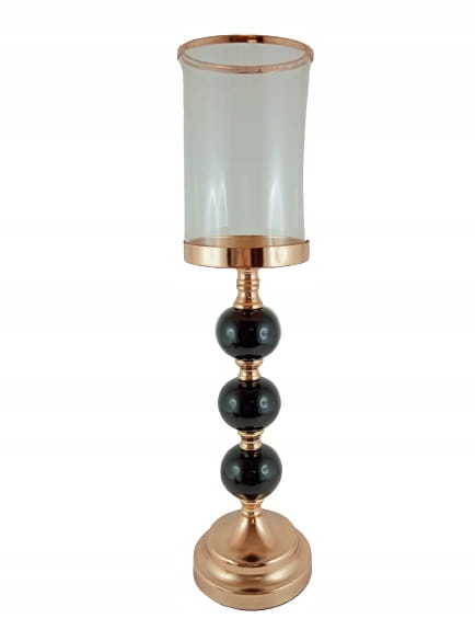ŚWIECZNIK SZKLANY NA CZARNO-ZŁOTEJ NODZE 44 CM