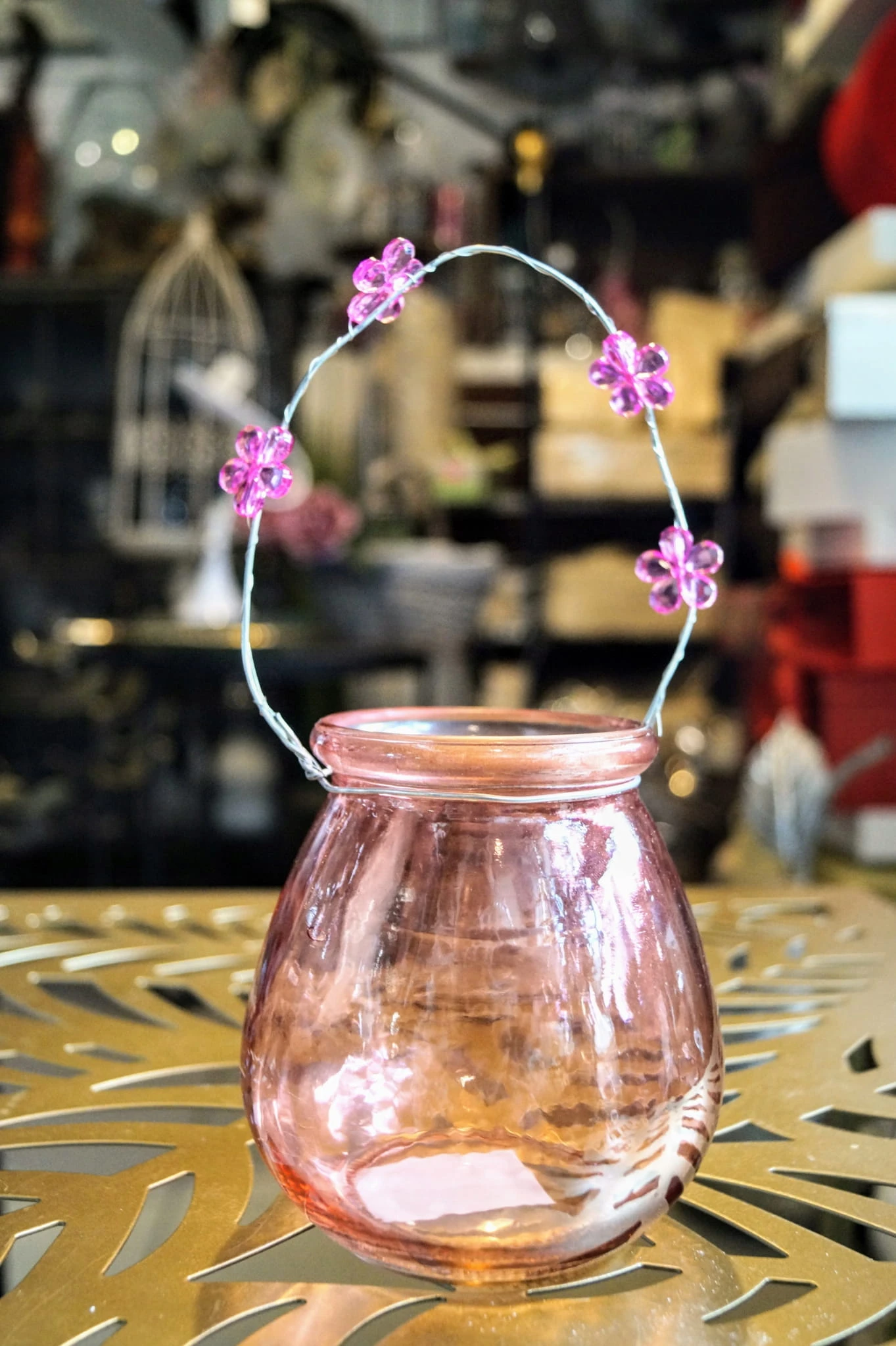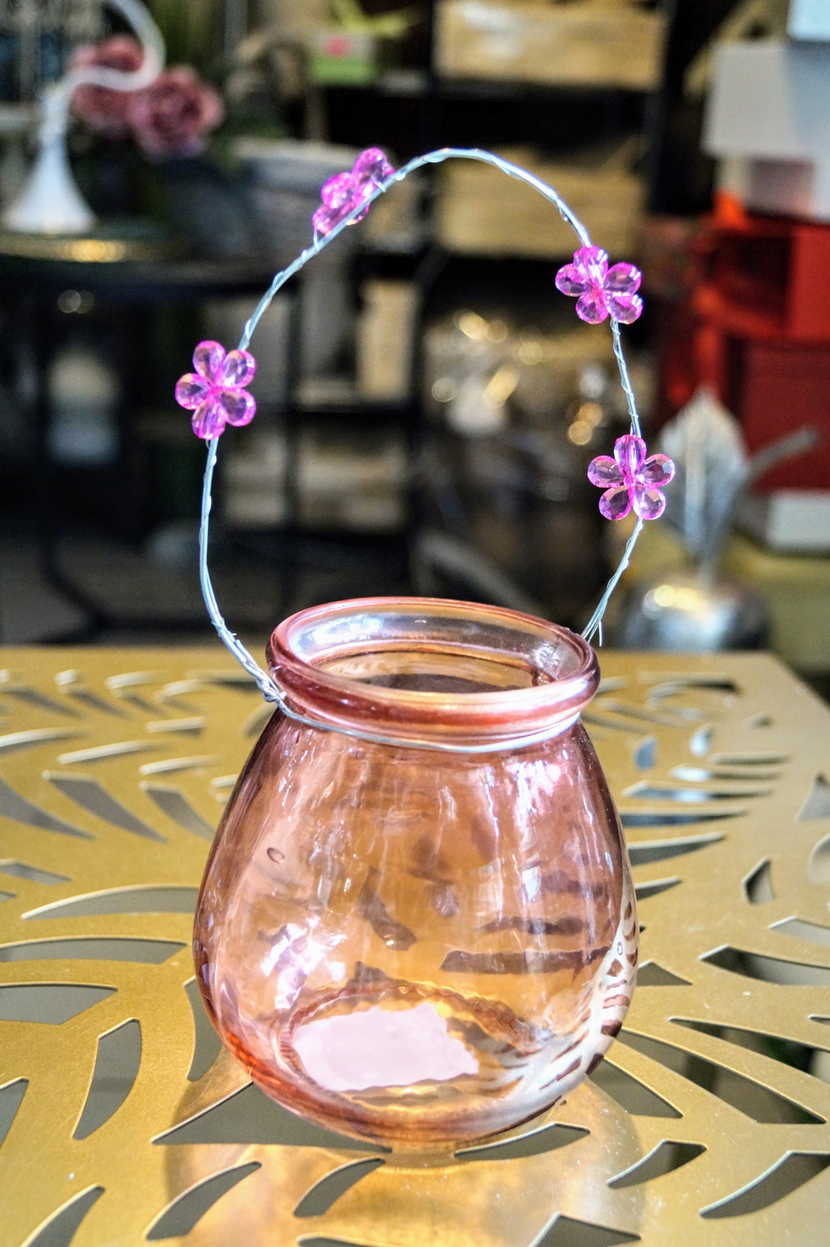ŚWIECZNIK SZKLANY RÓŻOWY