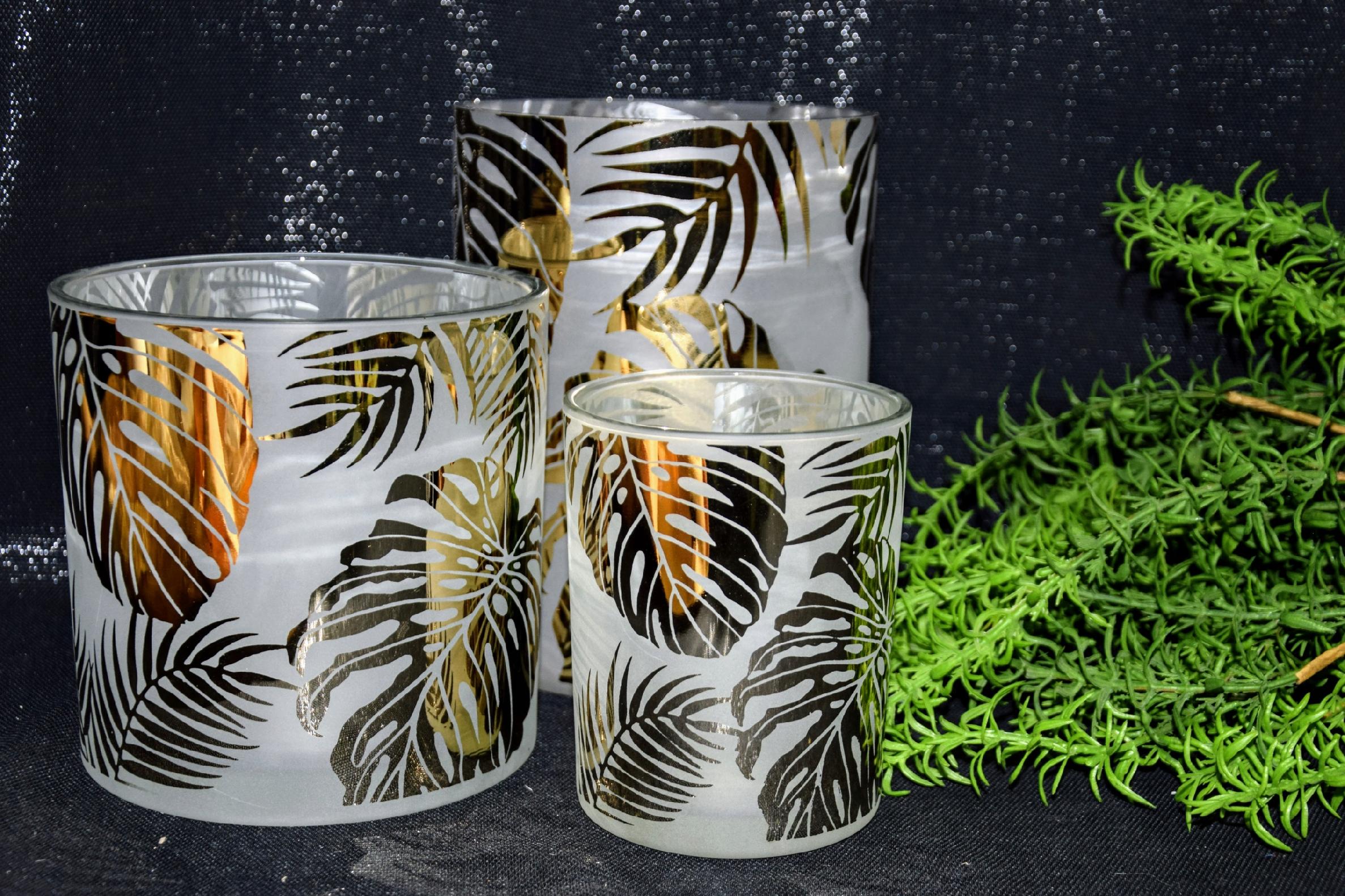 Przepiękny świecznik szklany udekorowany złotymi akcentami roślinnymi to propozycja dedykowana wszystkim tym, którzy w wystroju swoich wnętrz przywiązują sporą wagę do pełnej ciepła i przytulności atmosfery.