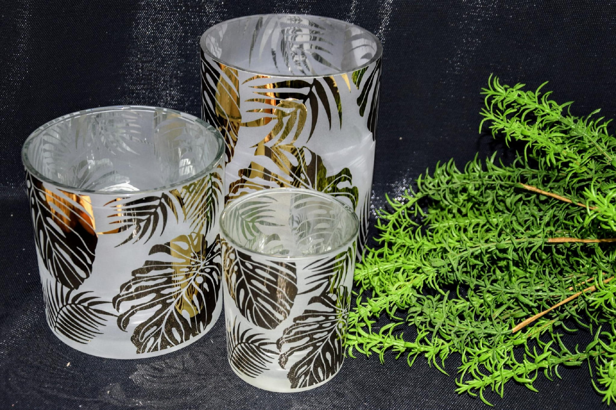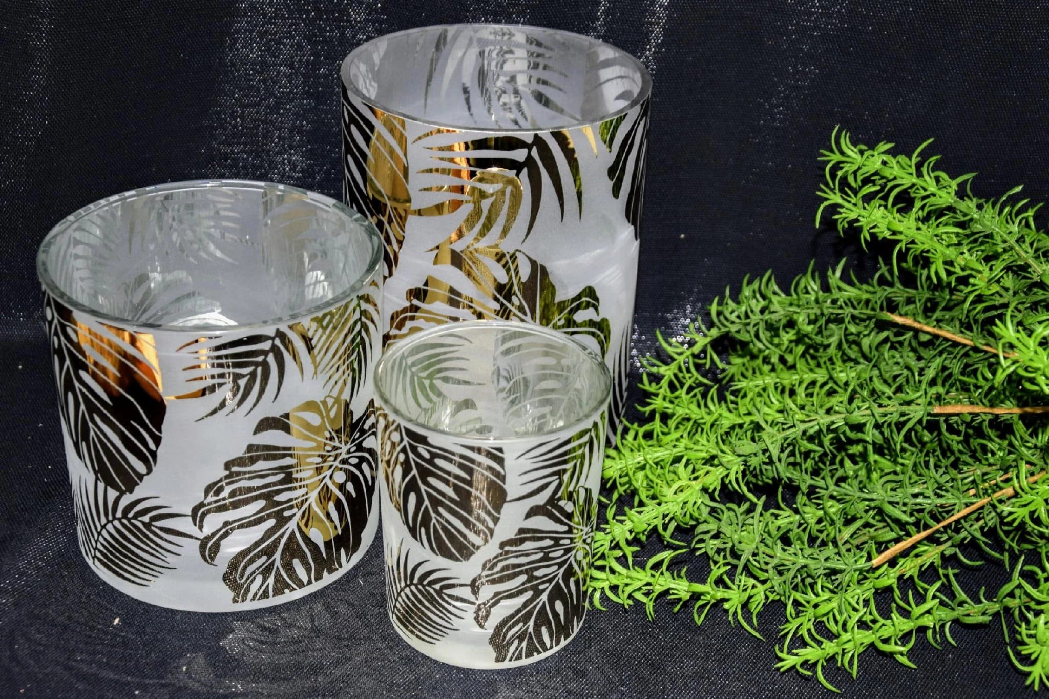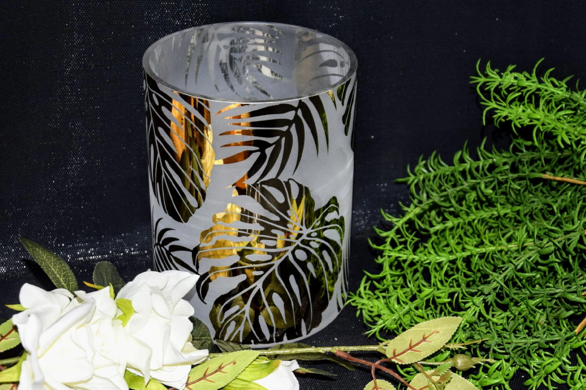 Przepiękny świecznik szklany udekorowany złotymi akcentami roślinnymi to propozycja dedykowana wszystkim tym, którzy w wystroju swoich wnętrz przywiązują sporą wagę do pełnej ciepła i przytulności atmosfery.