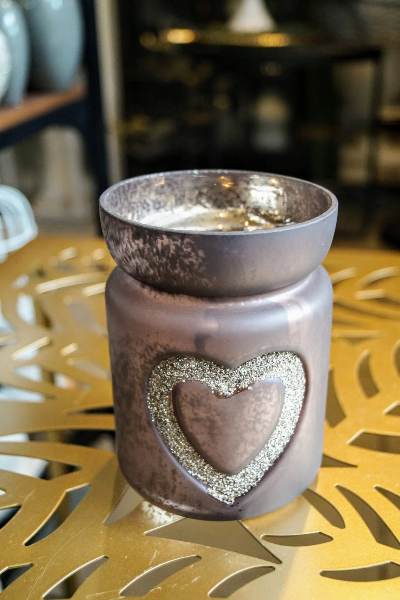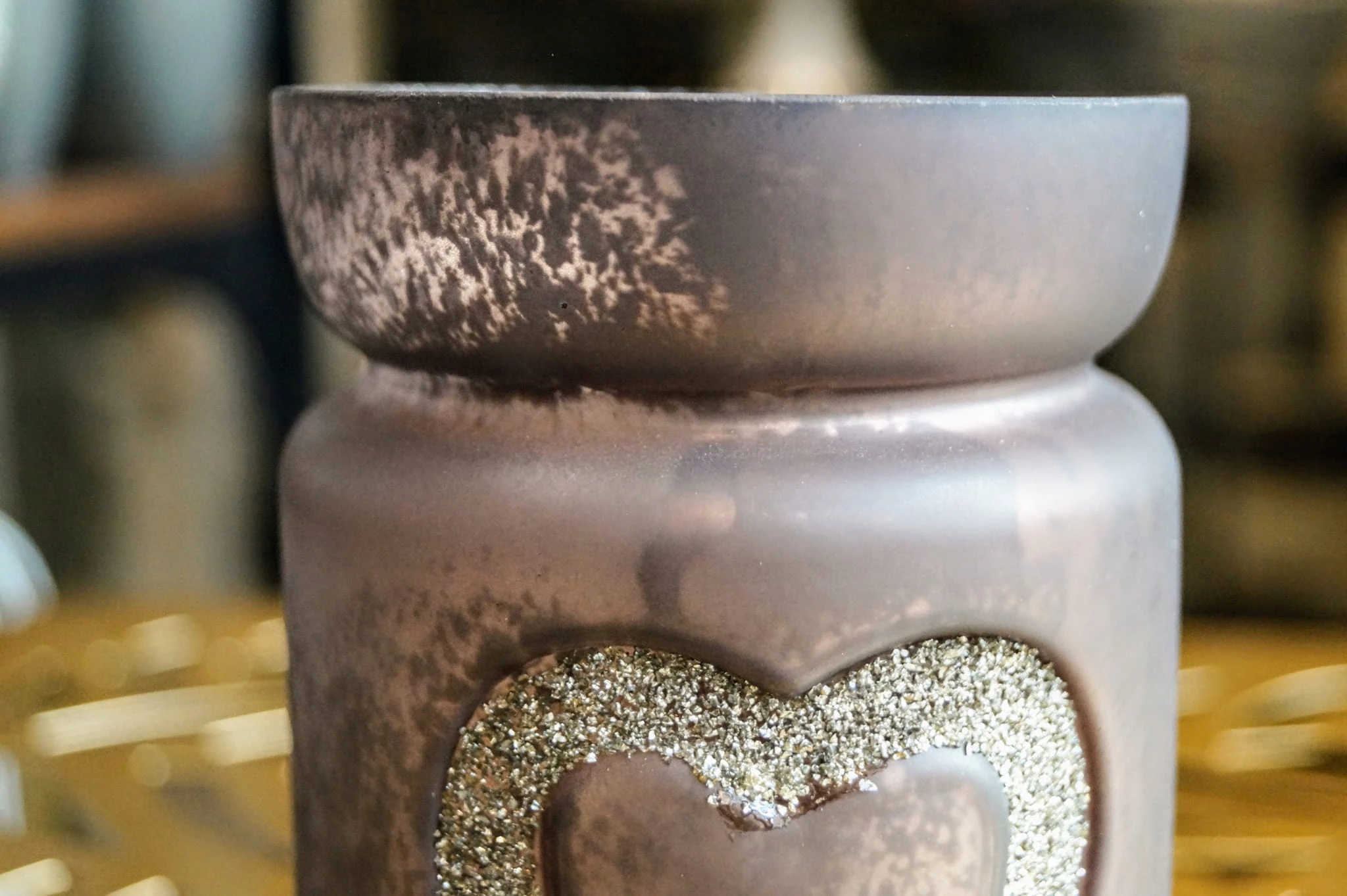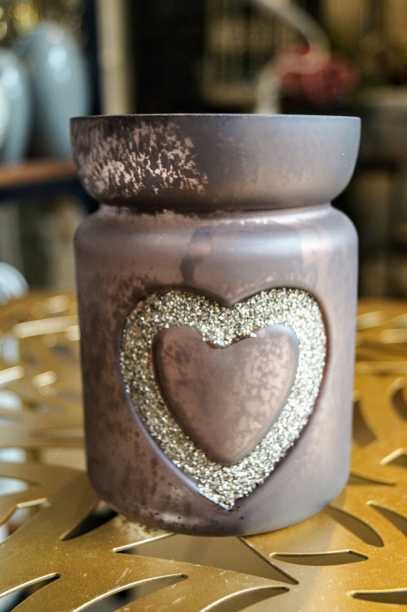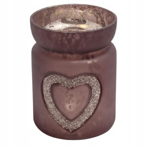 ŚWIECZNIK SZKLANY Z SERCEM BRĄZOWY 11,5cm