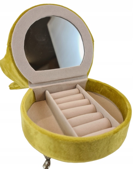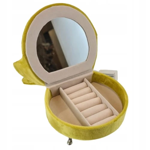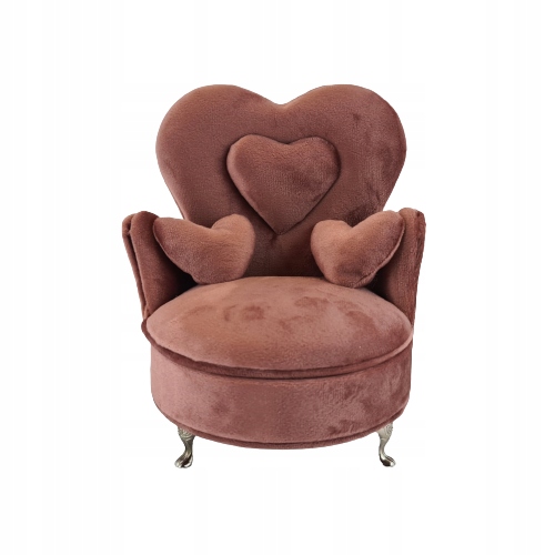 Estetyczna szkatułka na biżuterię i drobiazgi w kształcie małego fotela. Wykonana z bardzo dobrej jakości weluru, z dbałością o szczegóły.