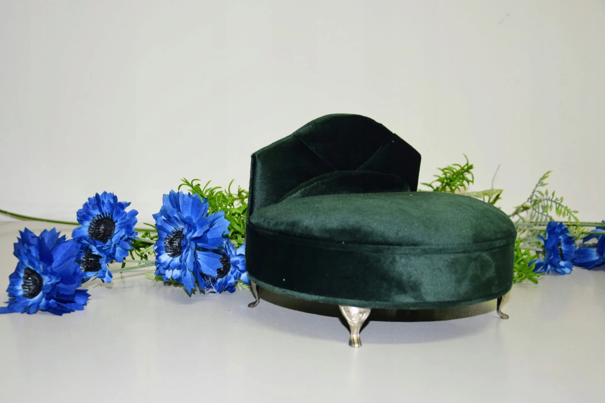 Estetyczna szkatułka na biżuterię i drobiazgi w kształcie małej kanapy. Wykonana z bardzo dobrej jakości weluru, z dbałością o szczegóły.