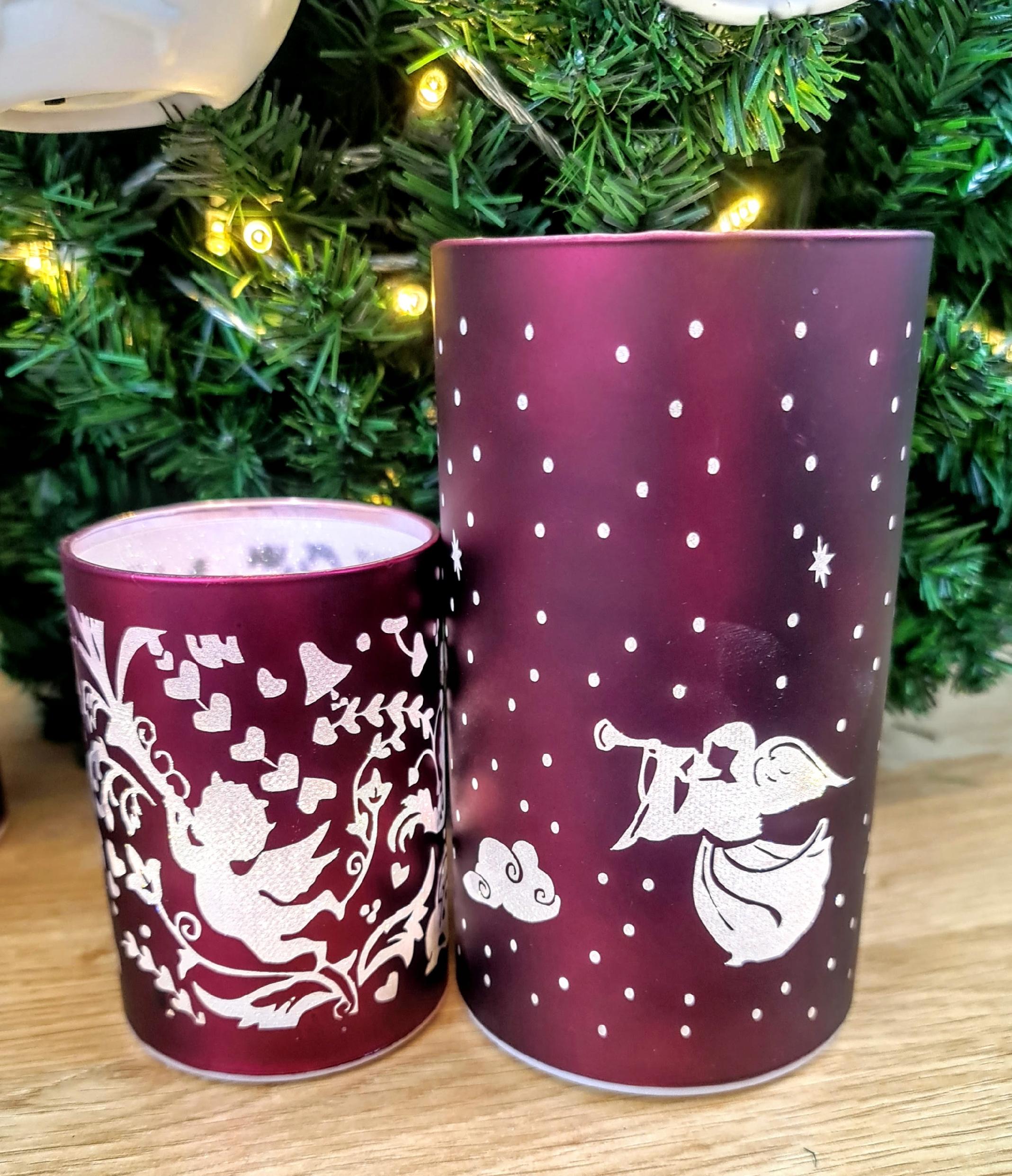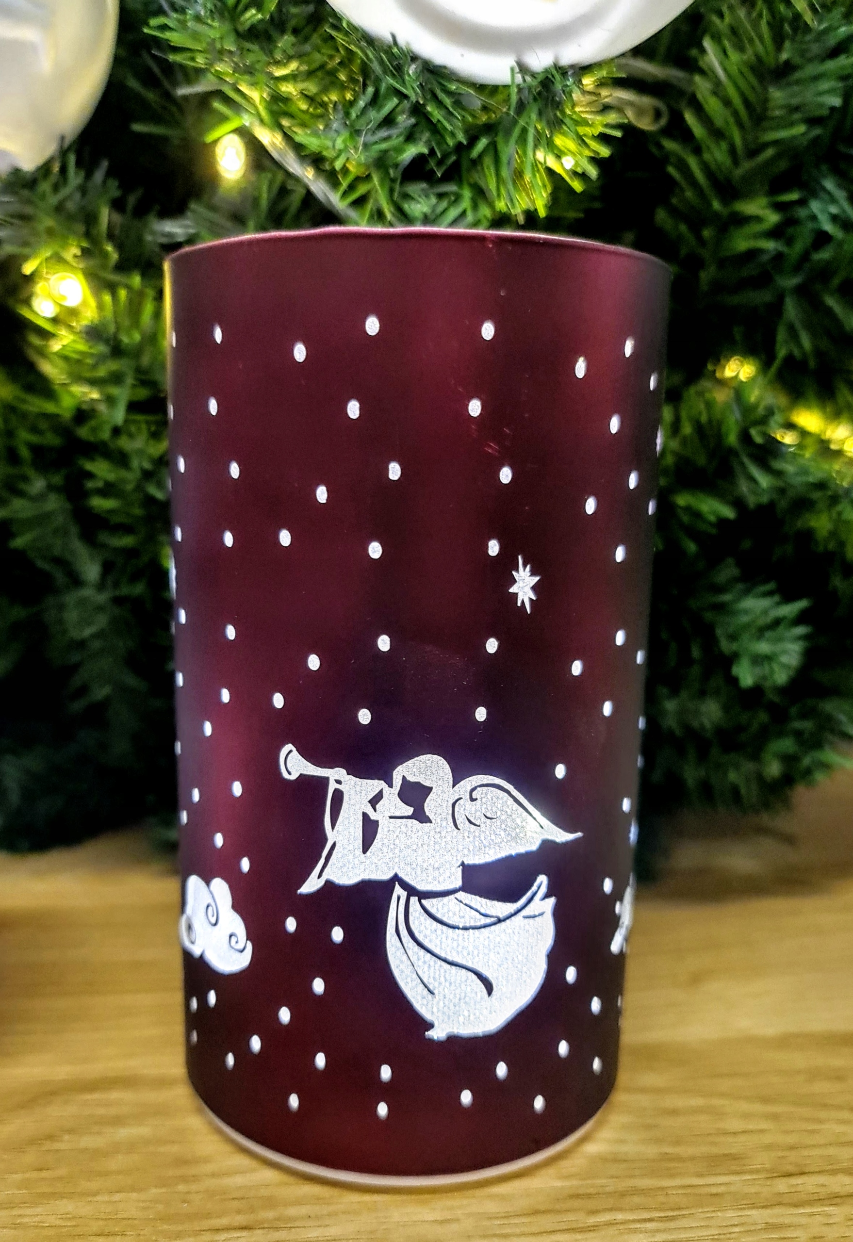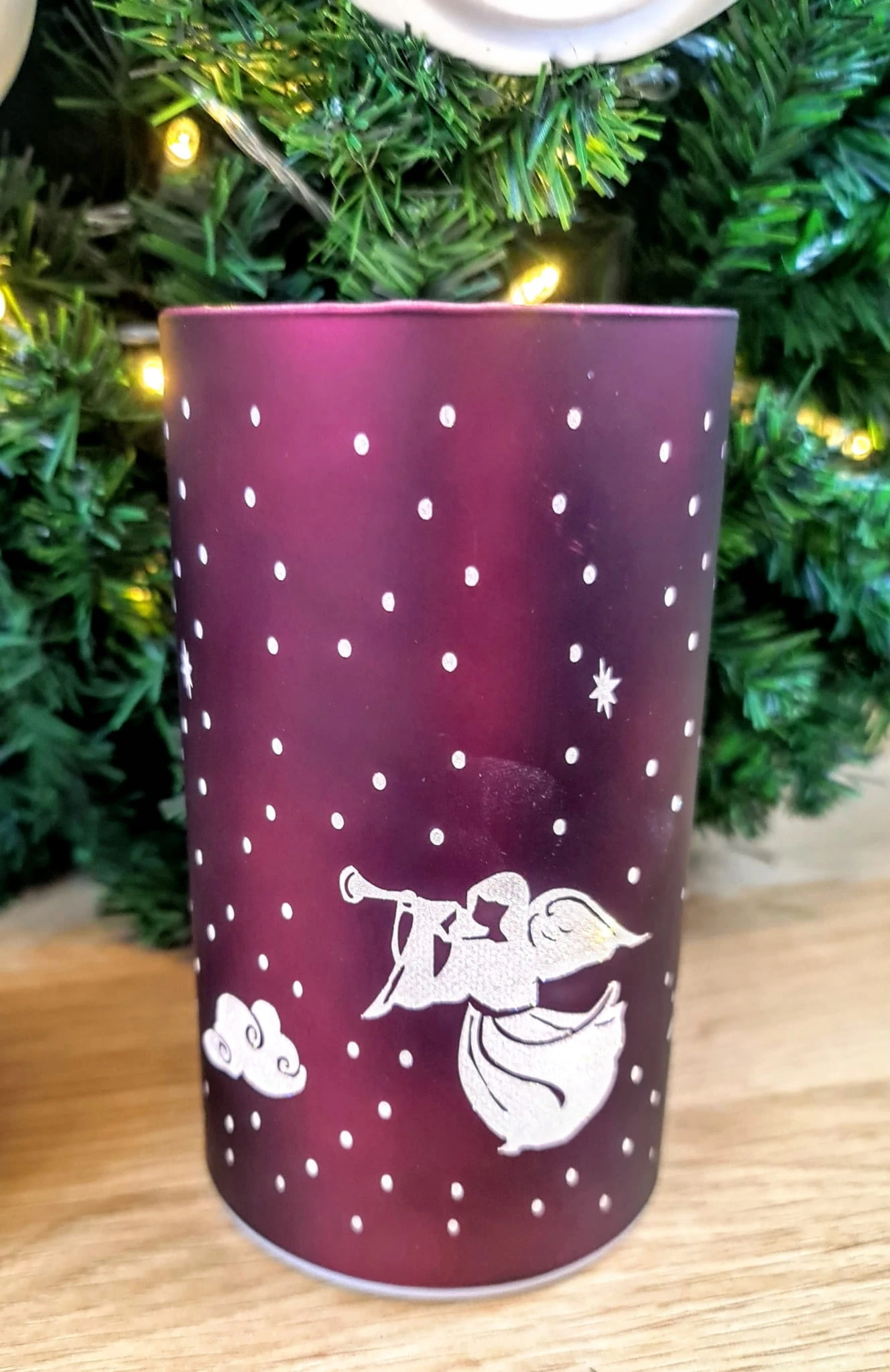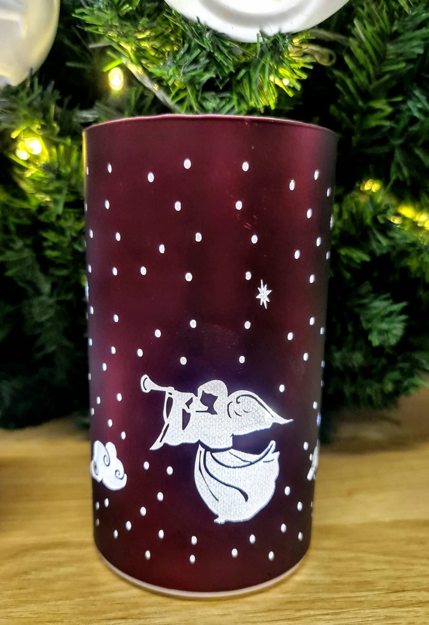 SZKLANY ŚWIECZNIK LED MOTYW ANIOŁÓW DUŻY